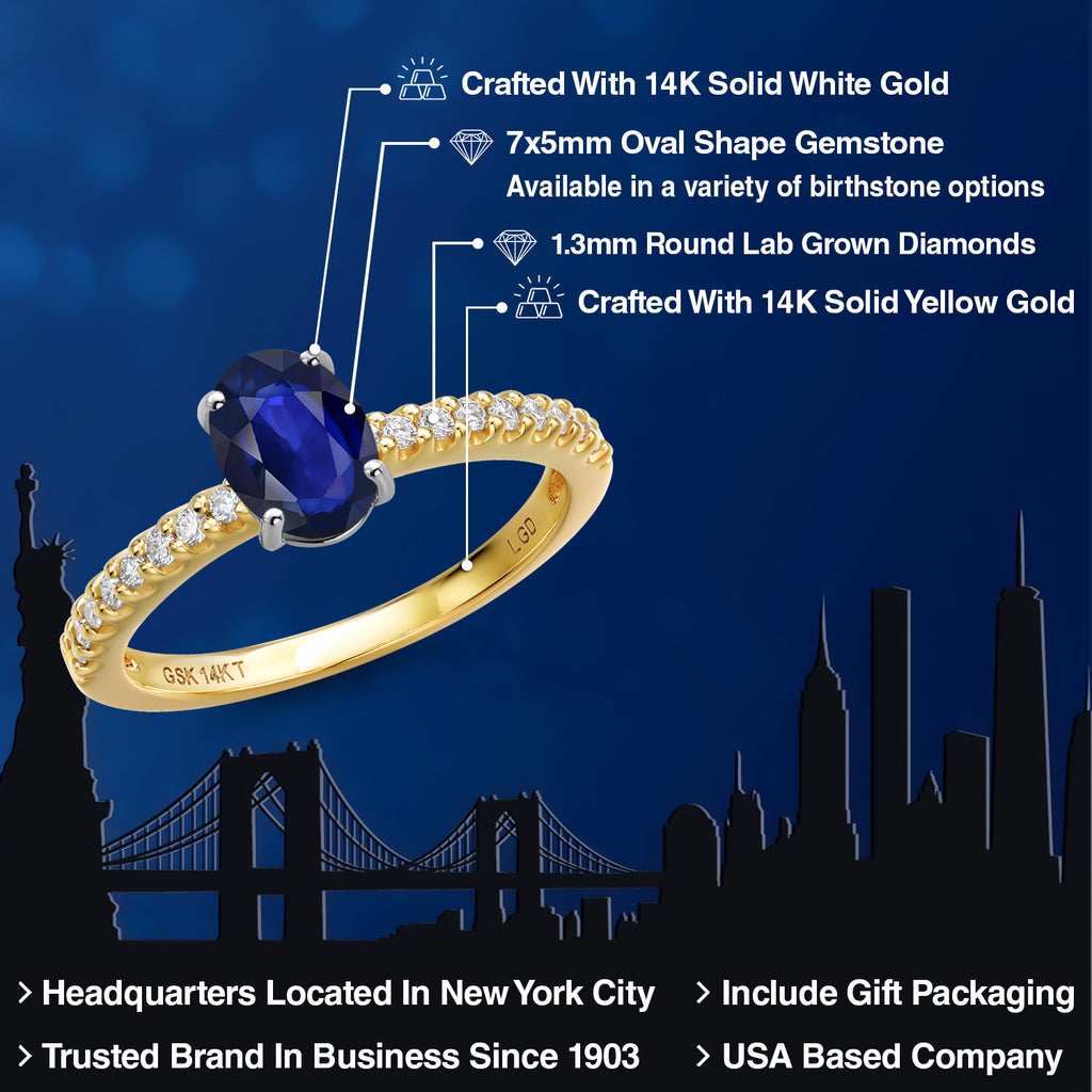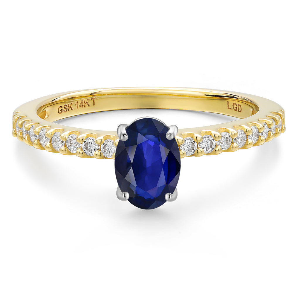 MEASUREMENTS: 7x5mm Oval Diffused Blue Sapphire, 1.3x1.3mm Round E - F Lab Grown Diamond. Total Carat Weight is 0.73 cttw