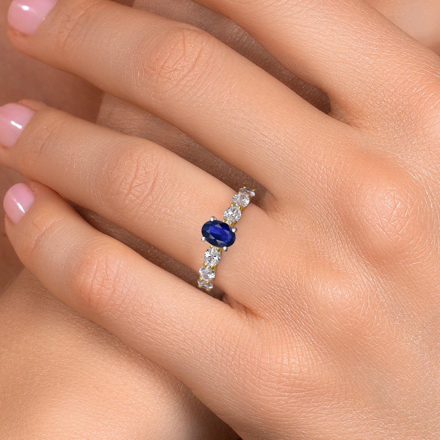 TIMELESS TWO-TONE DESIGN WITH PREMIUM GEMSTONES: This elegant engagement ring features a vibrant 6X4MM Oval Blue Sapphire, symbolizing September’s birthstone, beautifully accented by sparkling Lab Grown Diamonds, totaling 1.45 Cttw, set in luxurious 14K Two-Tone Gold for a sophisticated and timeless look.