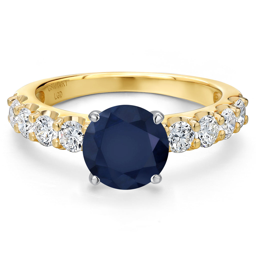 MEASUREMENTS: 8x8mm Round Diffused Blue Sapphire, 3x3mm Round E - F Lab Grown Diamond. Total Carat Weight is 3.34 cttw