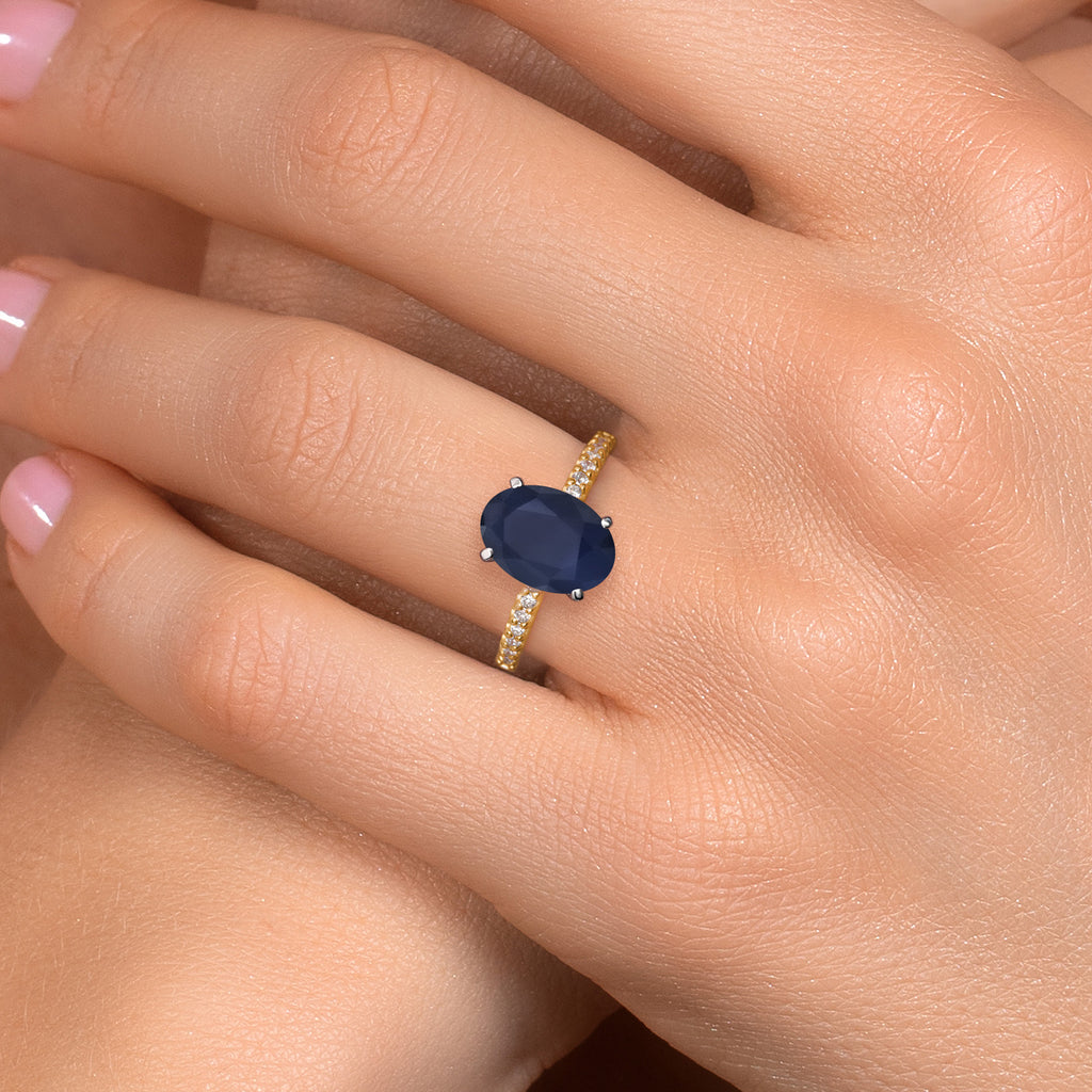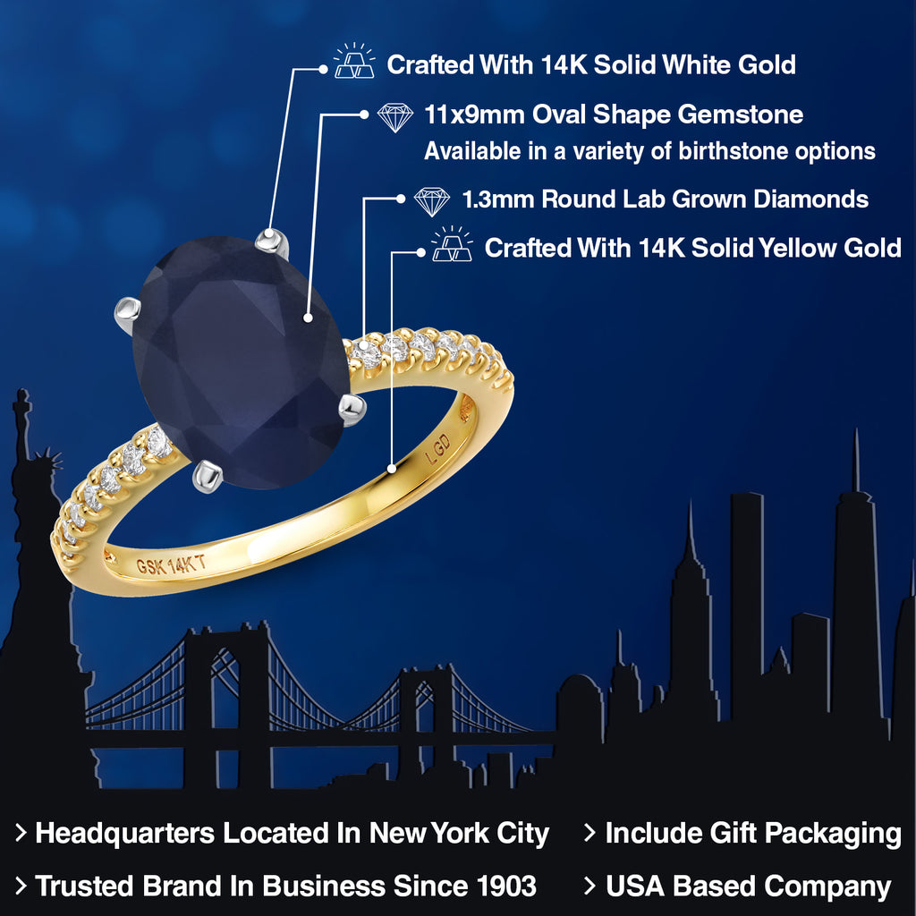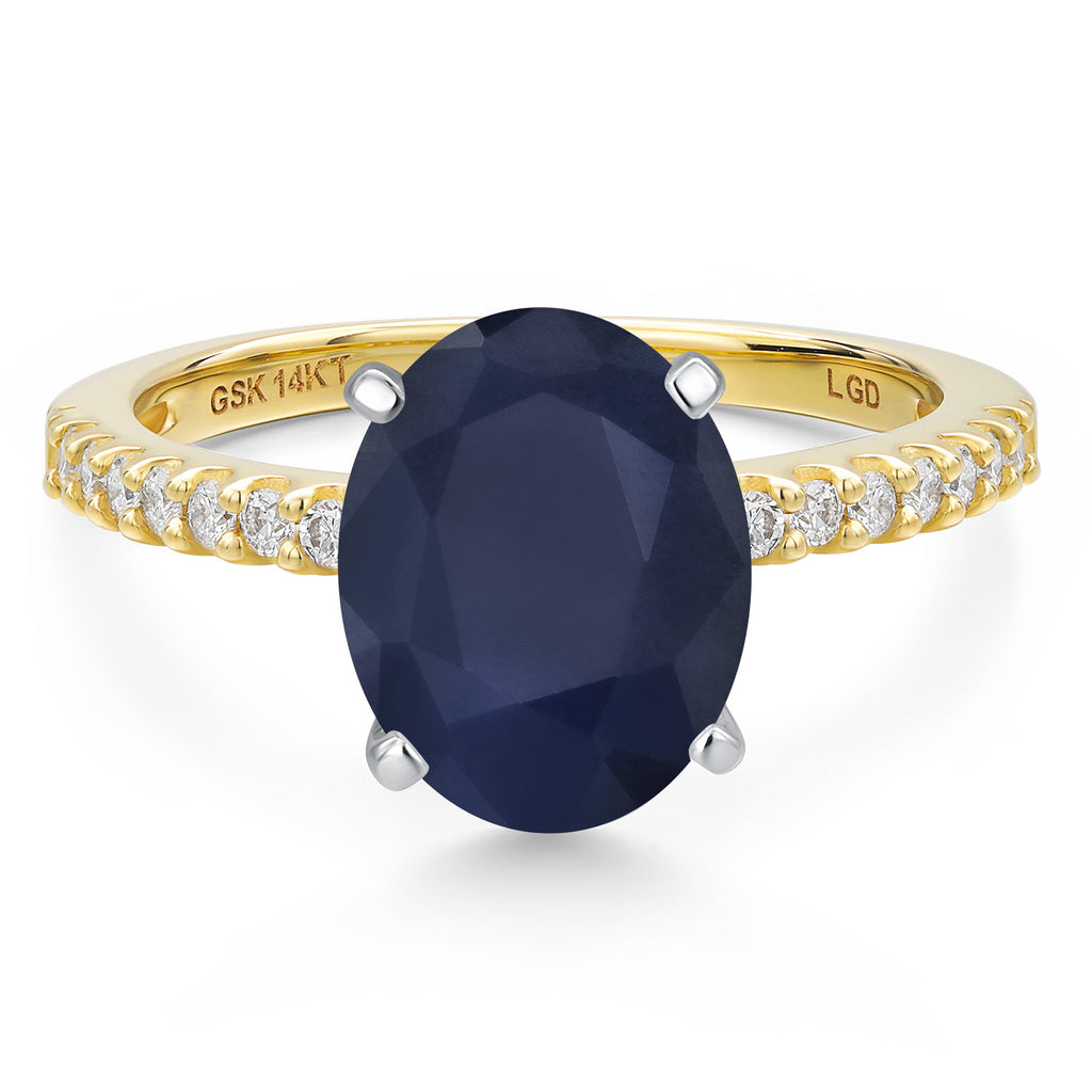 MEASUREMENTS: 11x9mm Oval Diffused Blue Sapphire, 1.3x1.3mm Round E - F Lab Grown Diamond. Total Carat Weight is 4.66 cttw