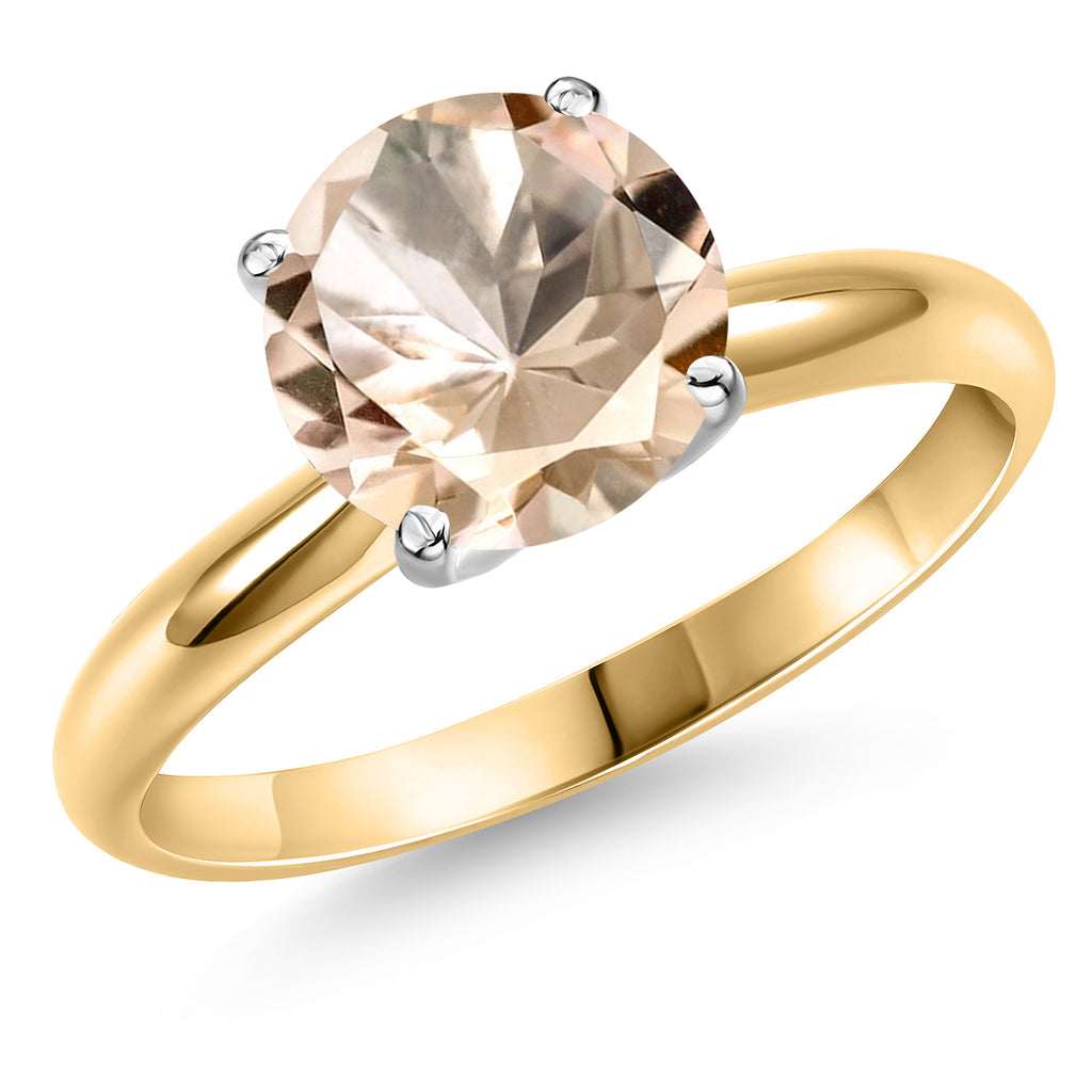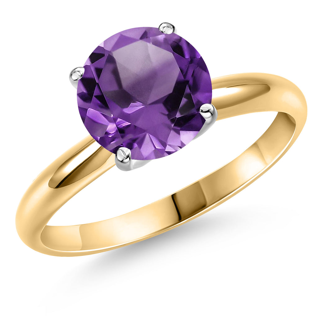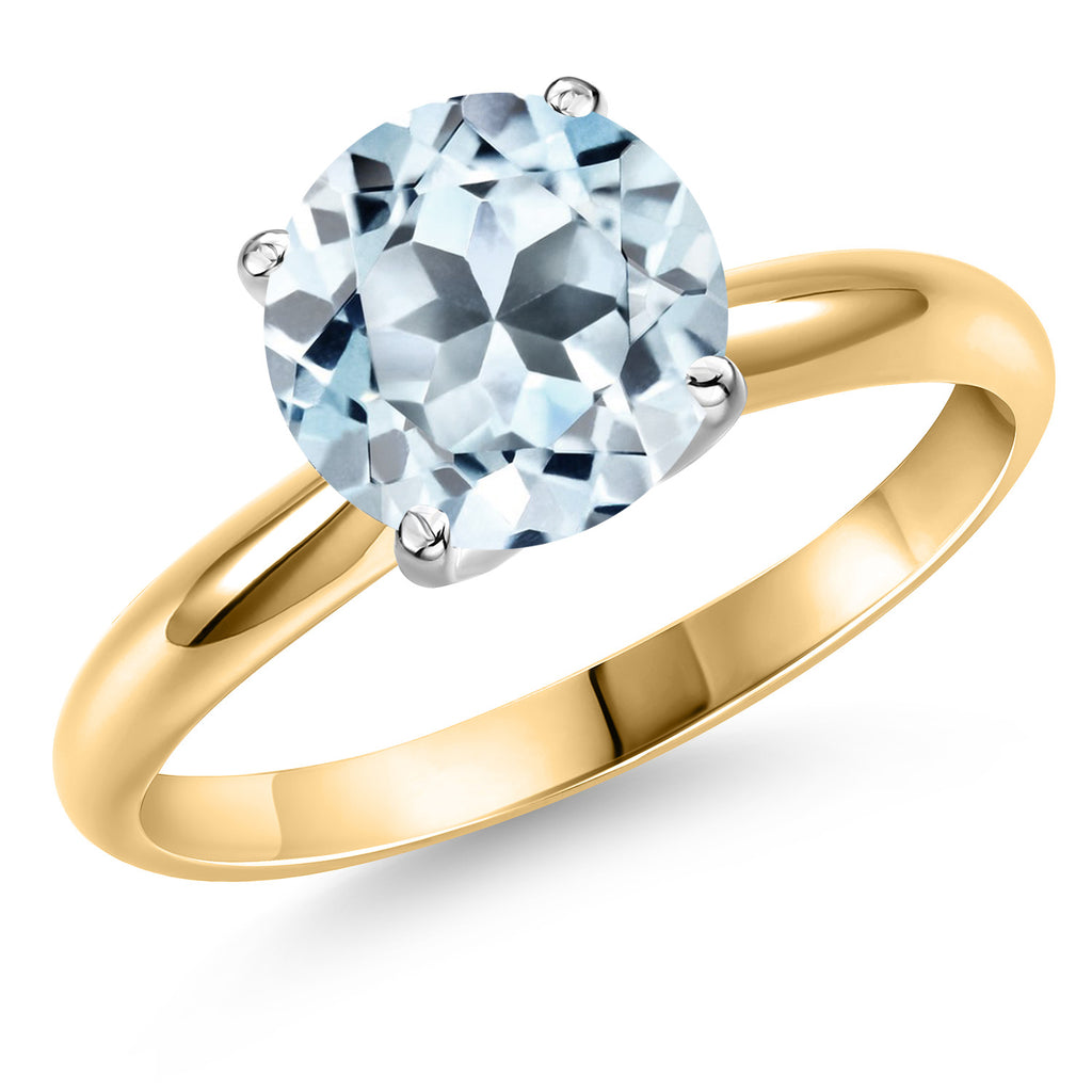 14K Yellow and White Gold Solitaire Engagement Ring for Women | Gemstone Birthstone | Round 8MM| Wedding Anniversary Promise Gold Ring For Women | Size 5 to 9