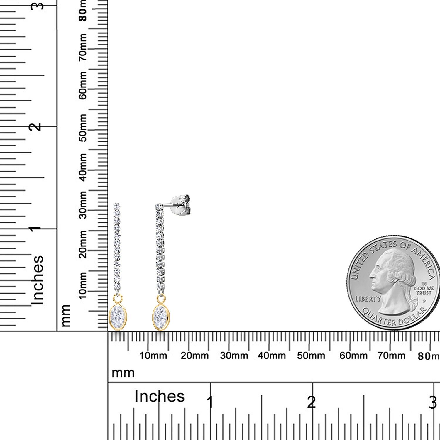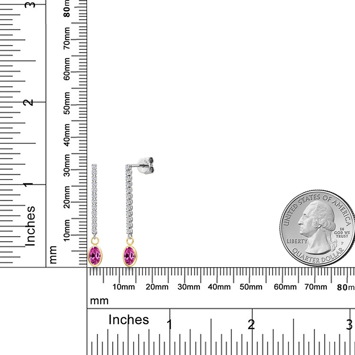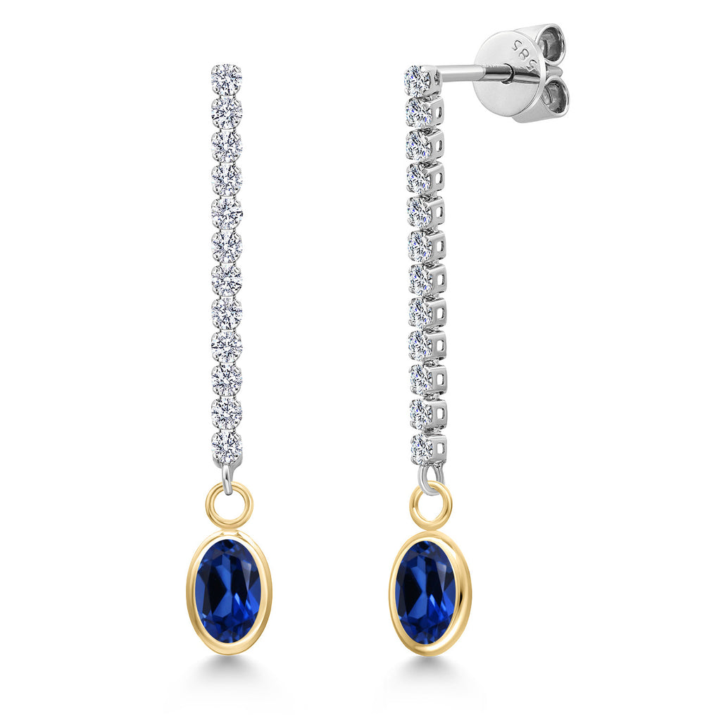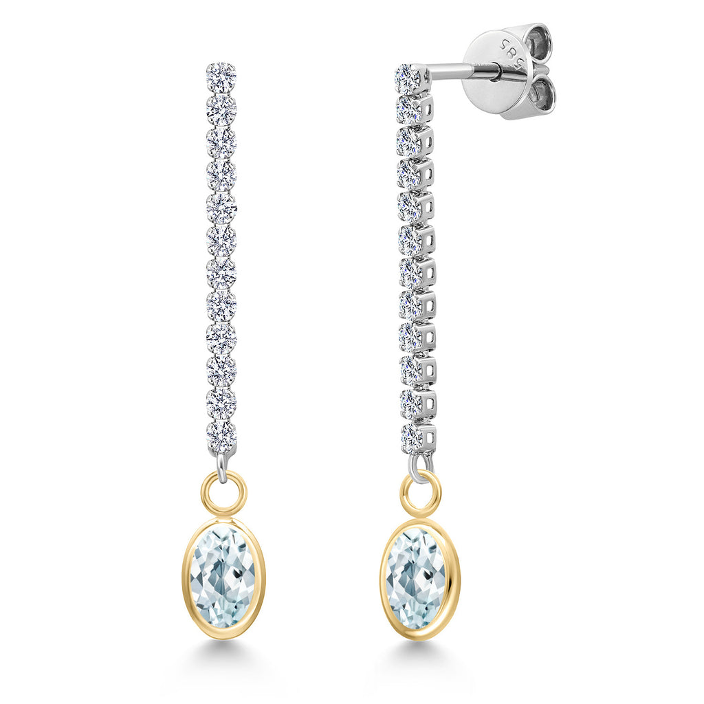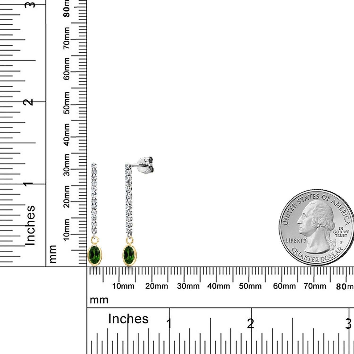 14K Two Tone Gold Gemstone Birthstone and Lab Grown Diamond Long Liner Chain Dangle Earrings for Women | Oval 6X4MM and Round 1.5MM Accents | Gold Chain Drop Earrings