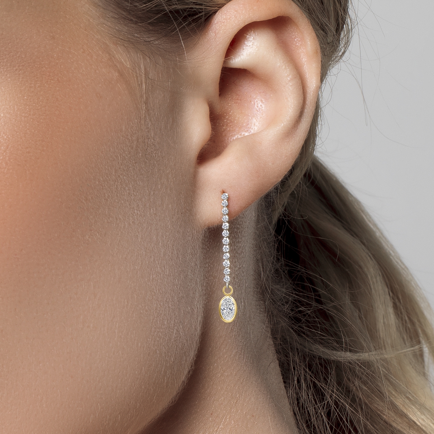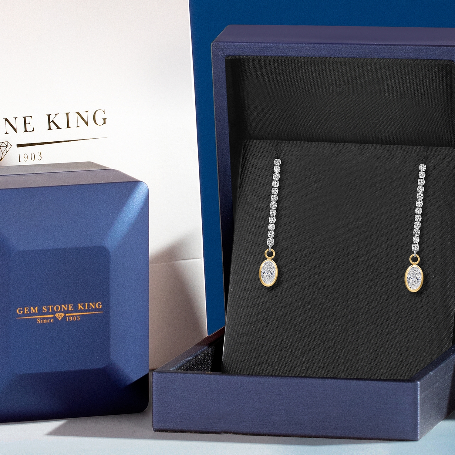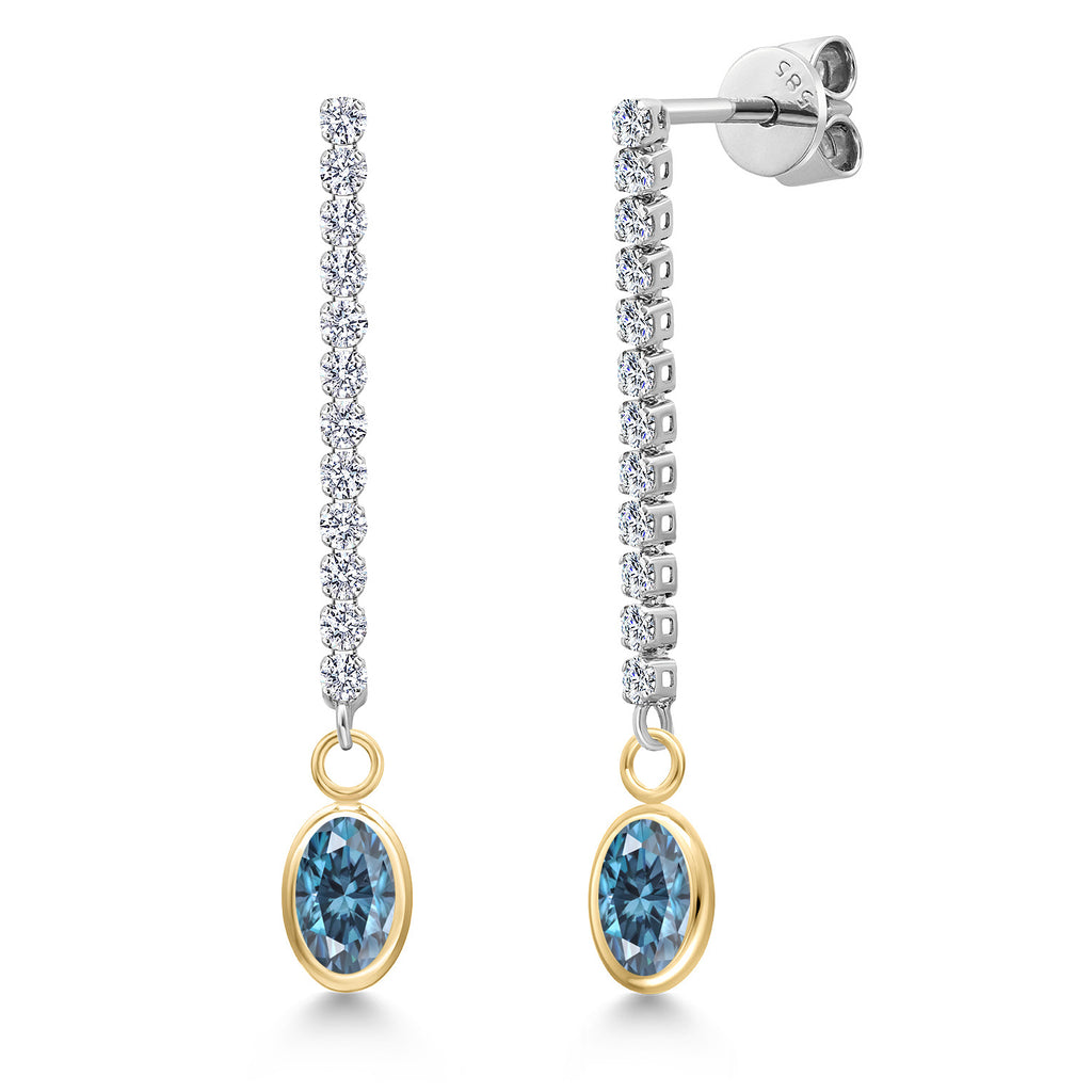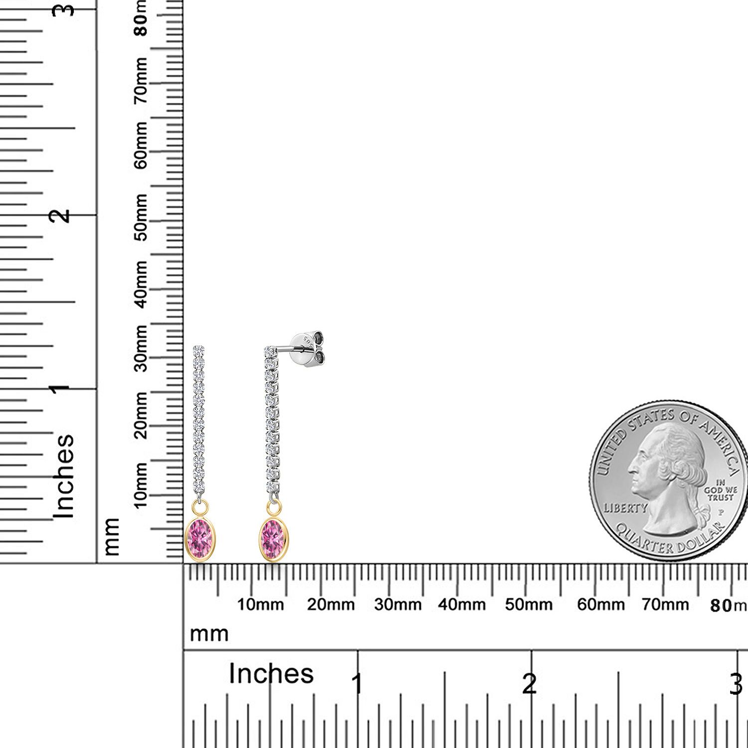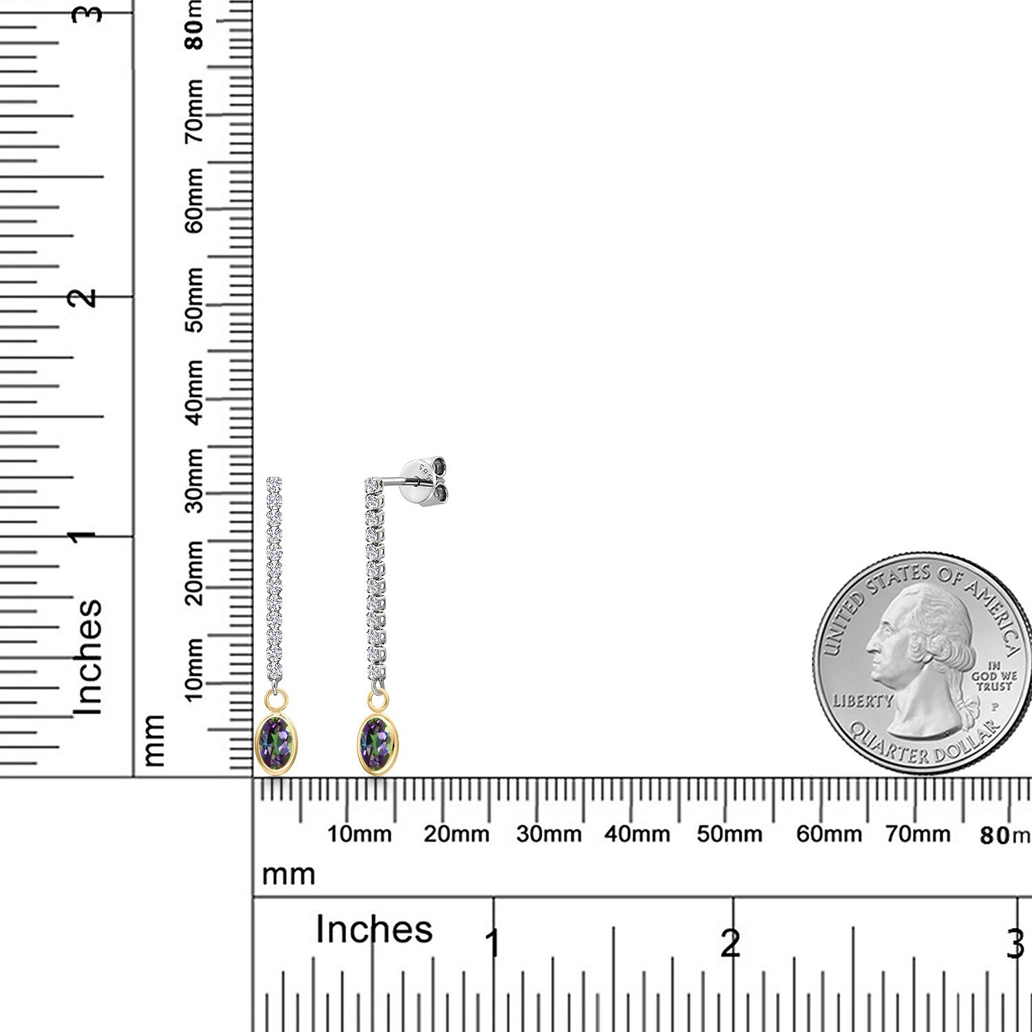 14K Two Tone Gold Gemstone Birthstone and Lab Grown Diamond Long Liner Chain Dangle Earrings for Women | Oval 6X4MM and Round 1.5MM Accents | Gold Chain Drop Earrings