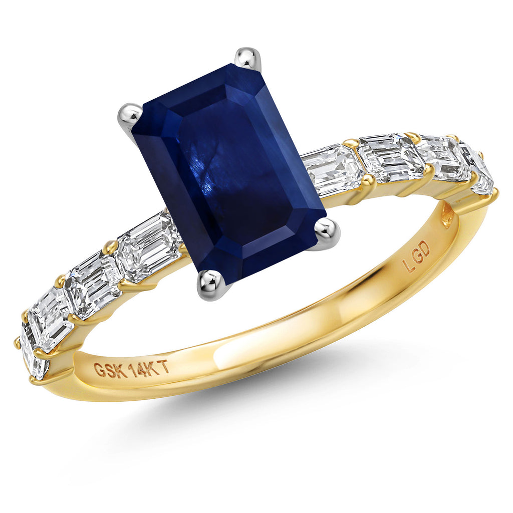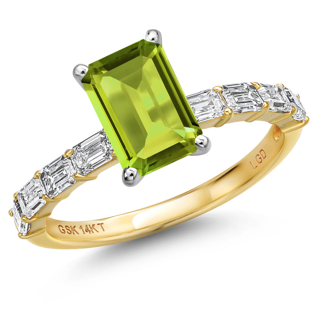 14K Two Tone Gold Gemstone Birthstone and Lab Grown Diamond Engagement Ring For Women | Emerald Cut 8X6MM and 3X2MM | Wedding Anniversary Ring | Available in Size 5,6,7,8,9