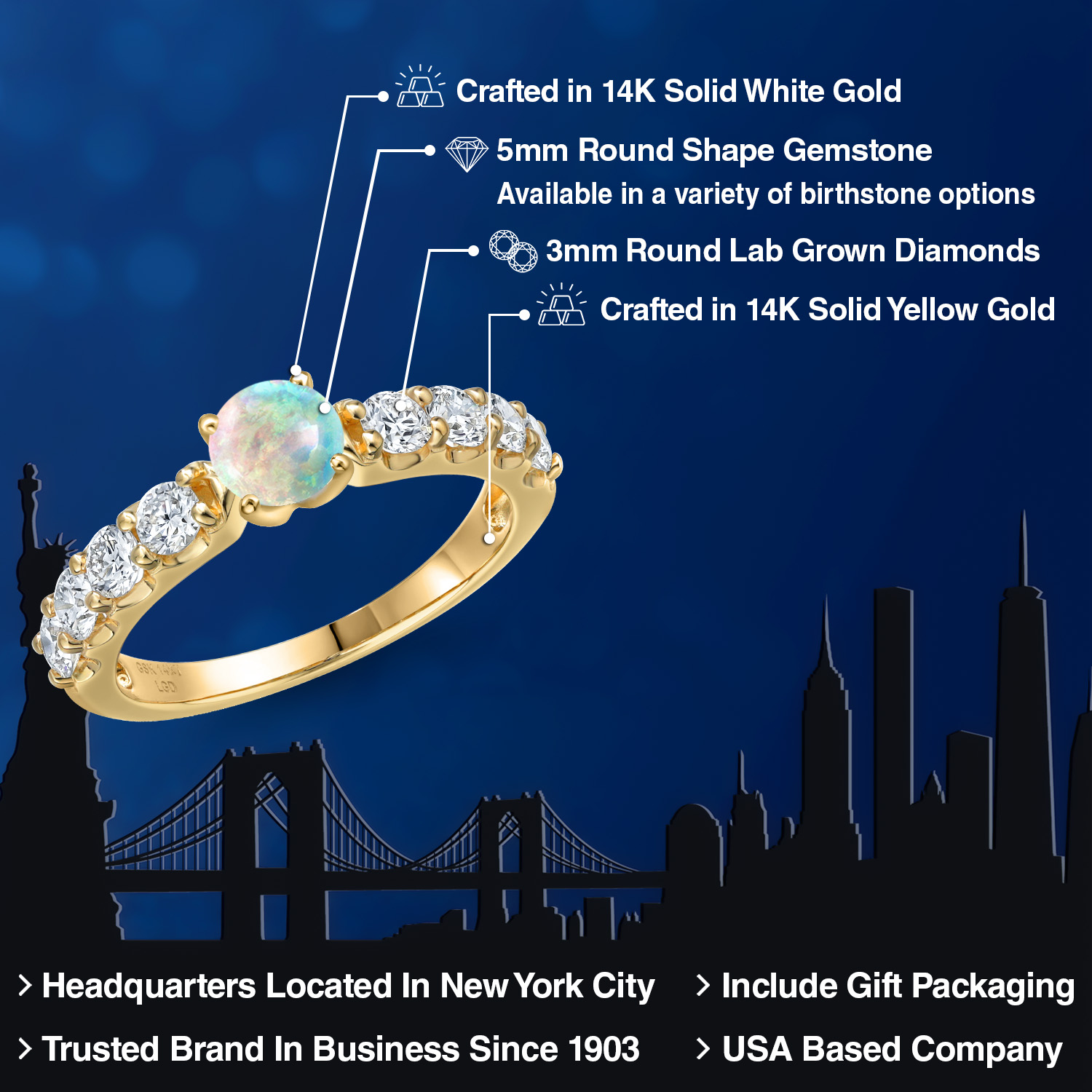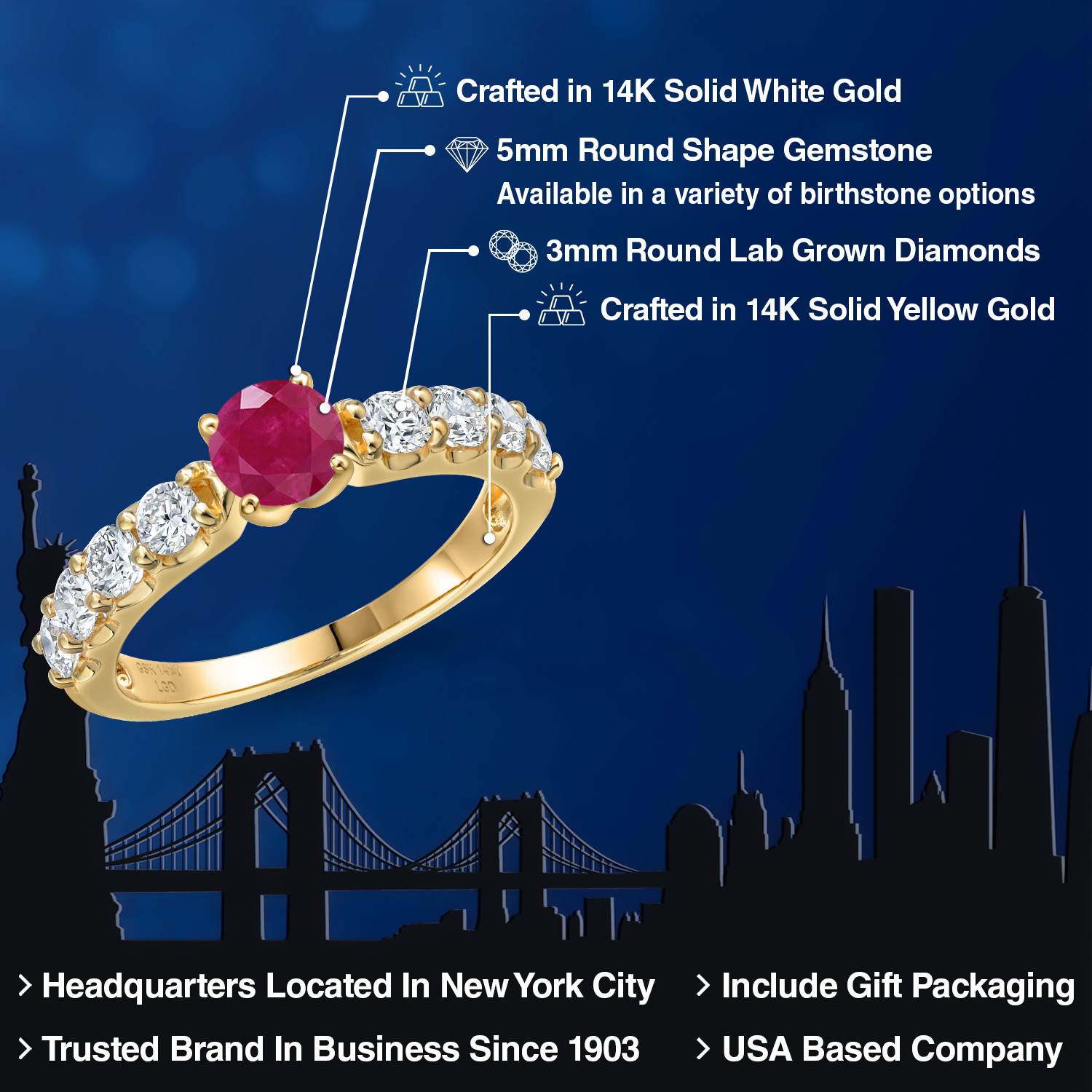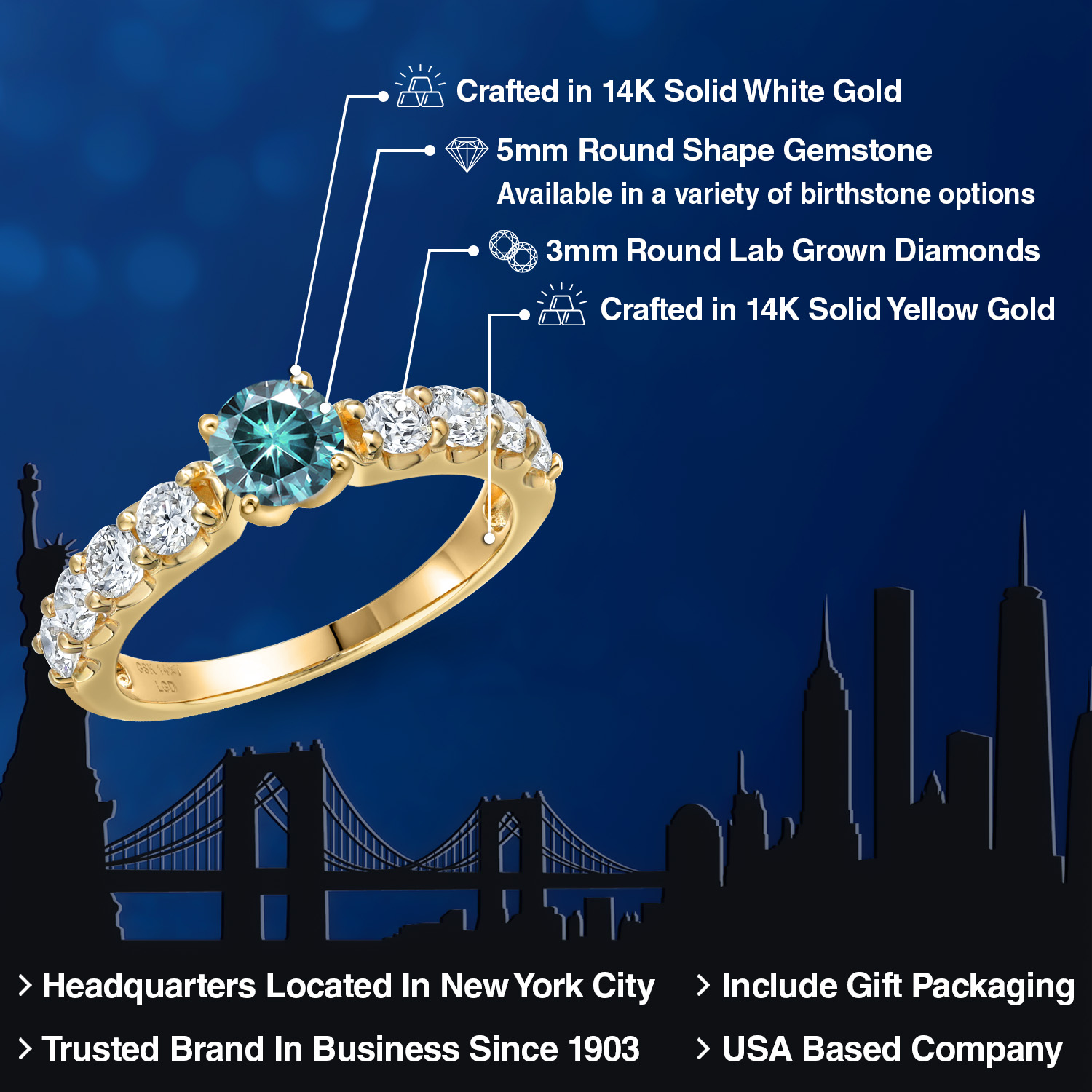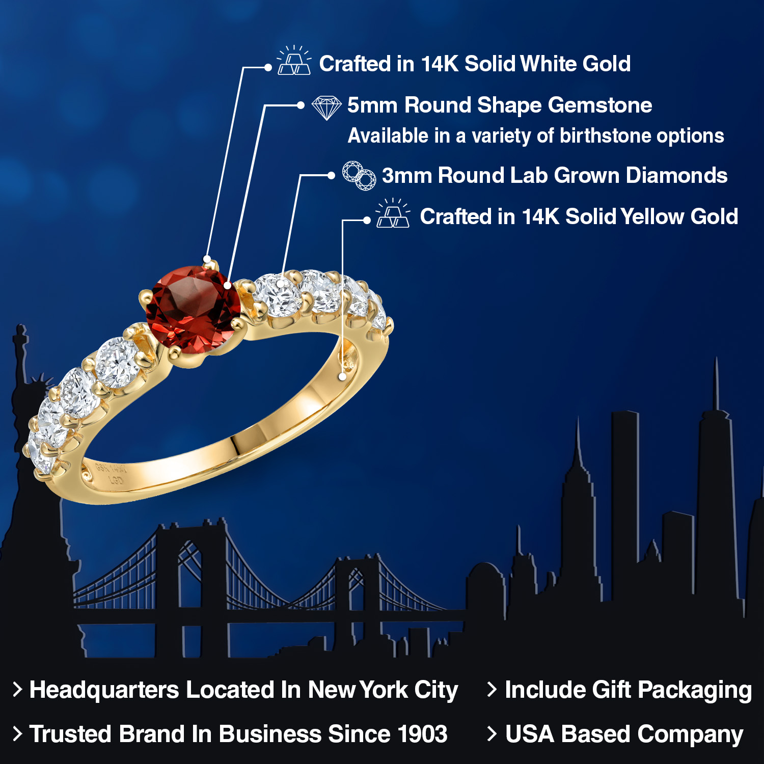 VERSATILE BIRTHSTONE CHOICE: Choose from a variety of birthstone options with the 5mm round-cut gemstone centerpiece. Each stone offers personalized elegance, allowing you to celebrate special moments with vibrant color and timeless brilliance.