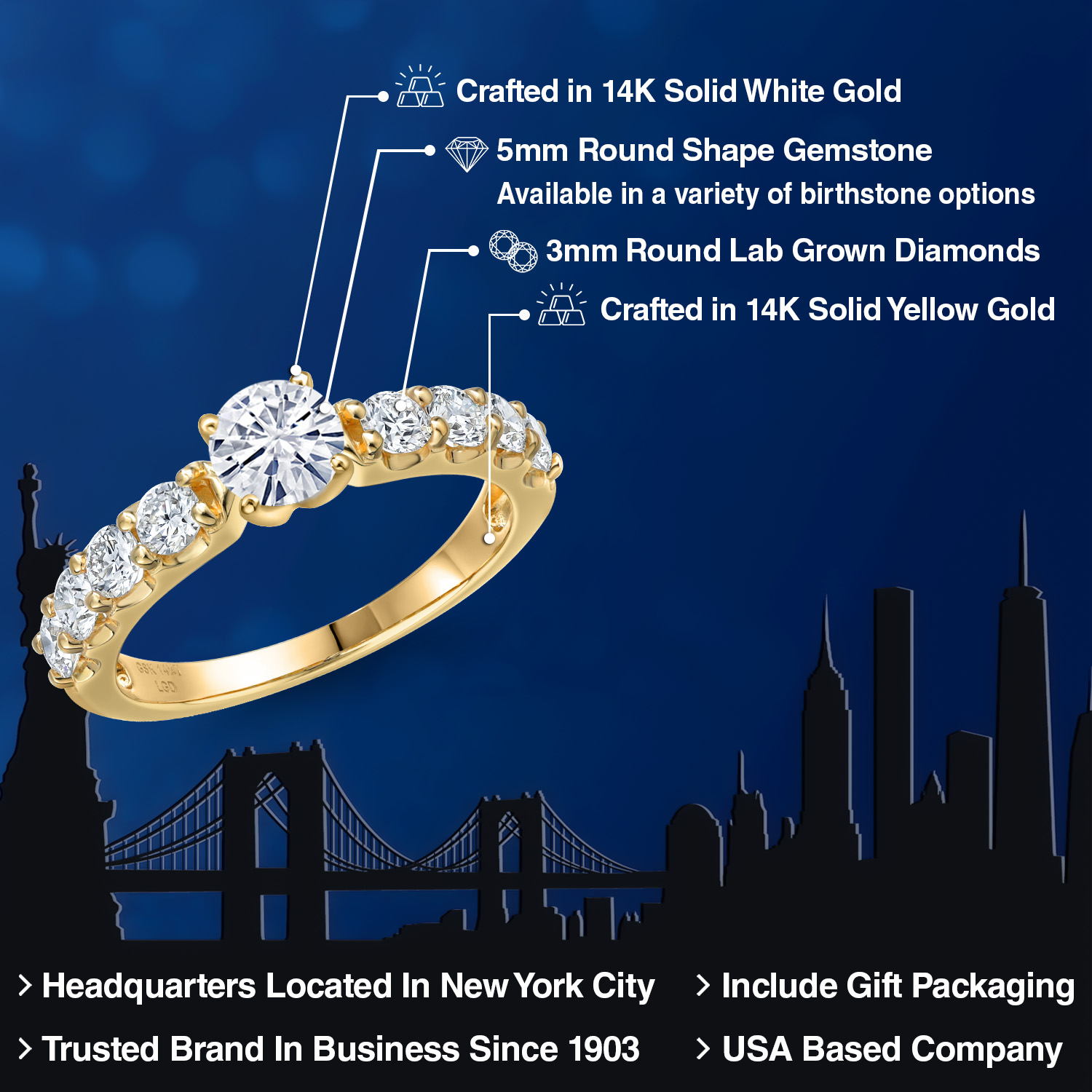 14K TWO-TONE GOLD DURABILITY: Crafted with a white gold head and yellow gold band, this ring provides superior strength and hypoallergenic comfort. Its tarnish-resistant finish ensures lasting beauty, making it ideal for everyday elegance with minimal maintenance.