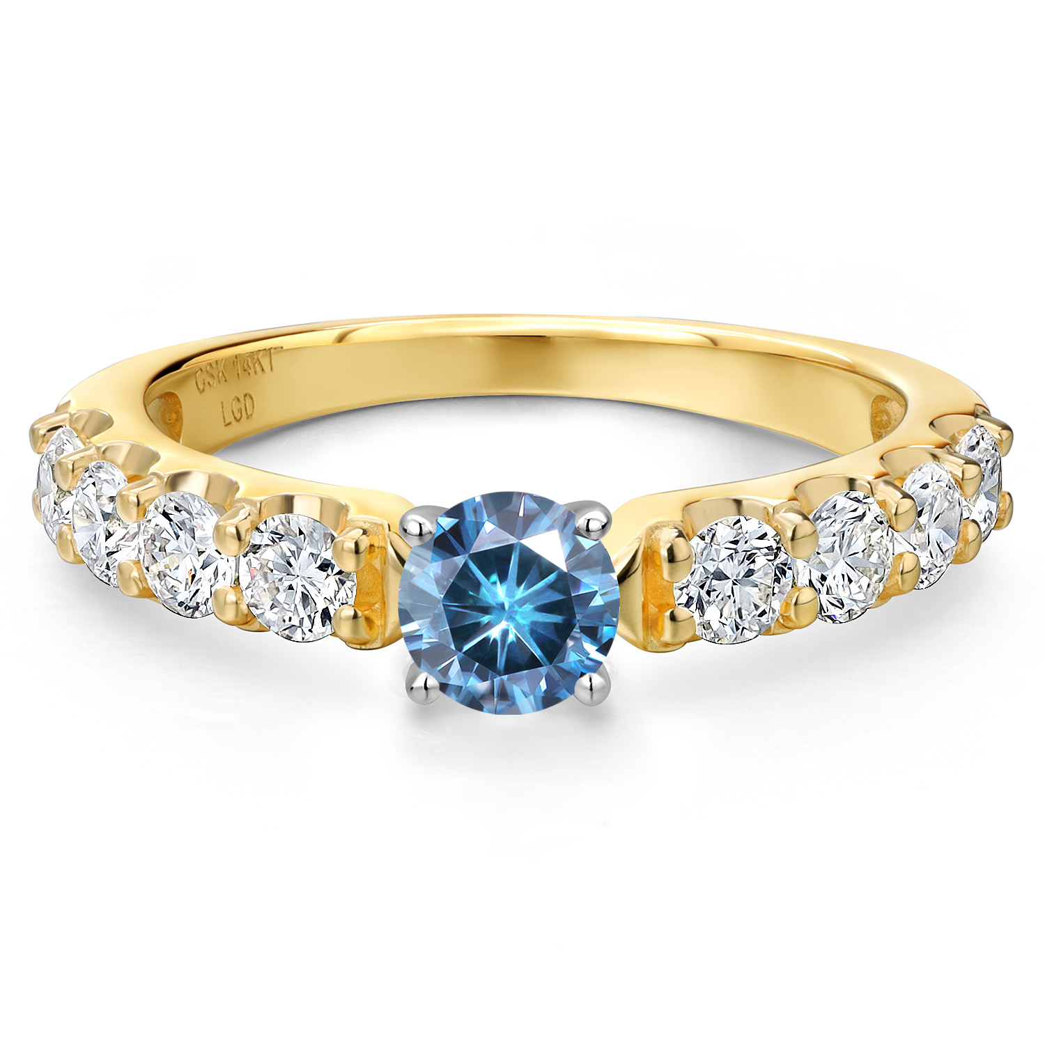 ELEGANT DESIGN AND ACCENTS: The white gold head seamlessly transitions to a polished yellow gold band, adorned with 3mm round lab-grown diamonds. These accent stones enhance the ring’s sparkle, creating a harmonious blend of light and sophistication.