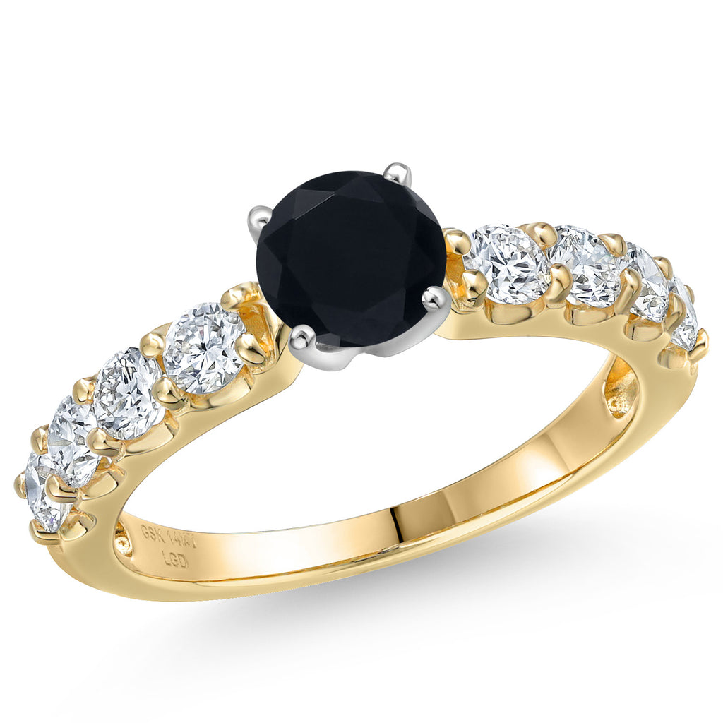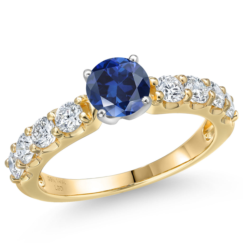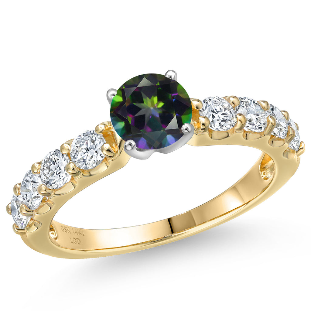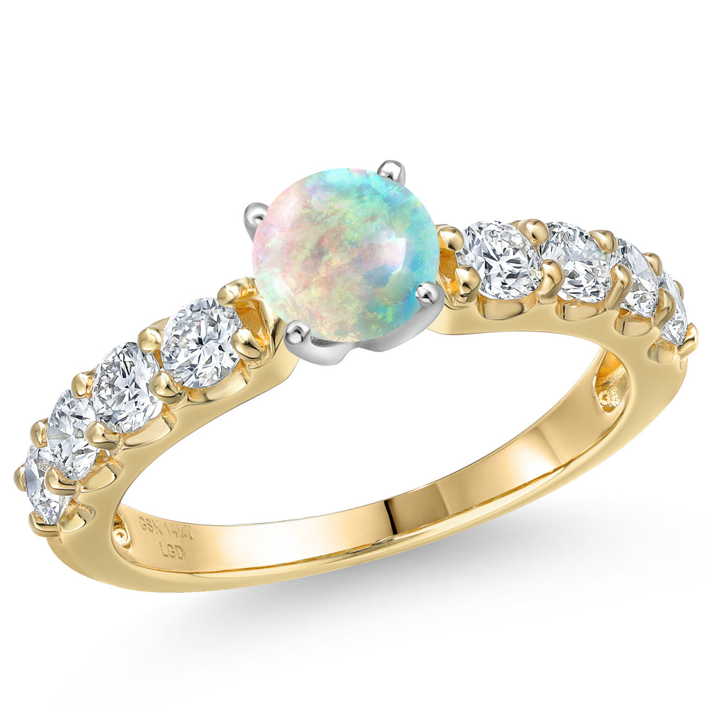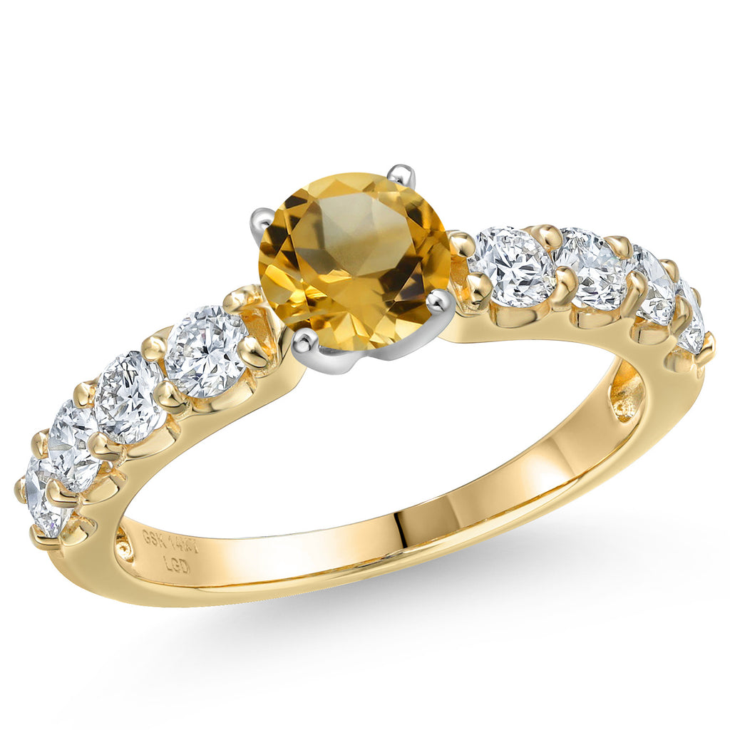 14K Two-Tone Gold Gemstone Birthstone and Lab Grown Diamond Engagement Ring For Women | Round 6MM and 2.5MM | Wedding Anniversary Gold Ring | Available in Size 5,6,7,8,9