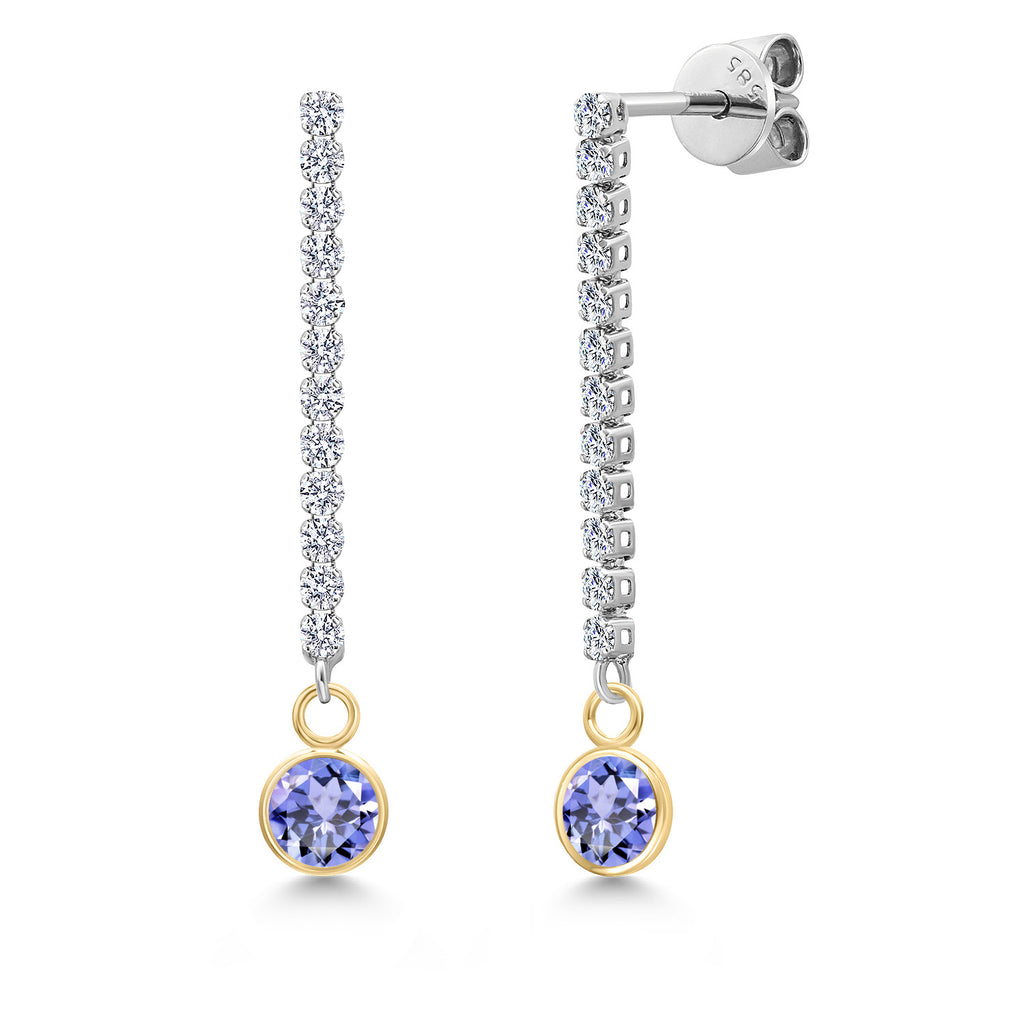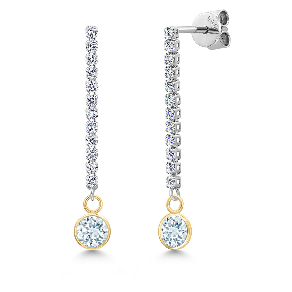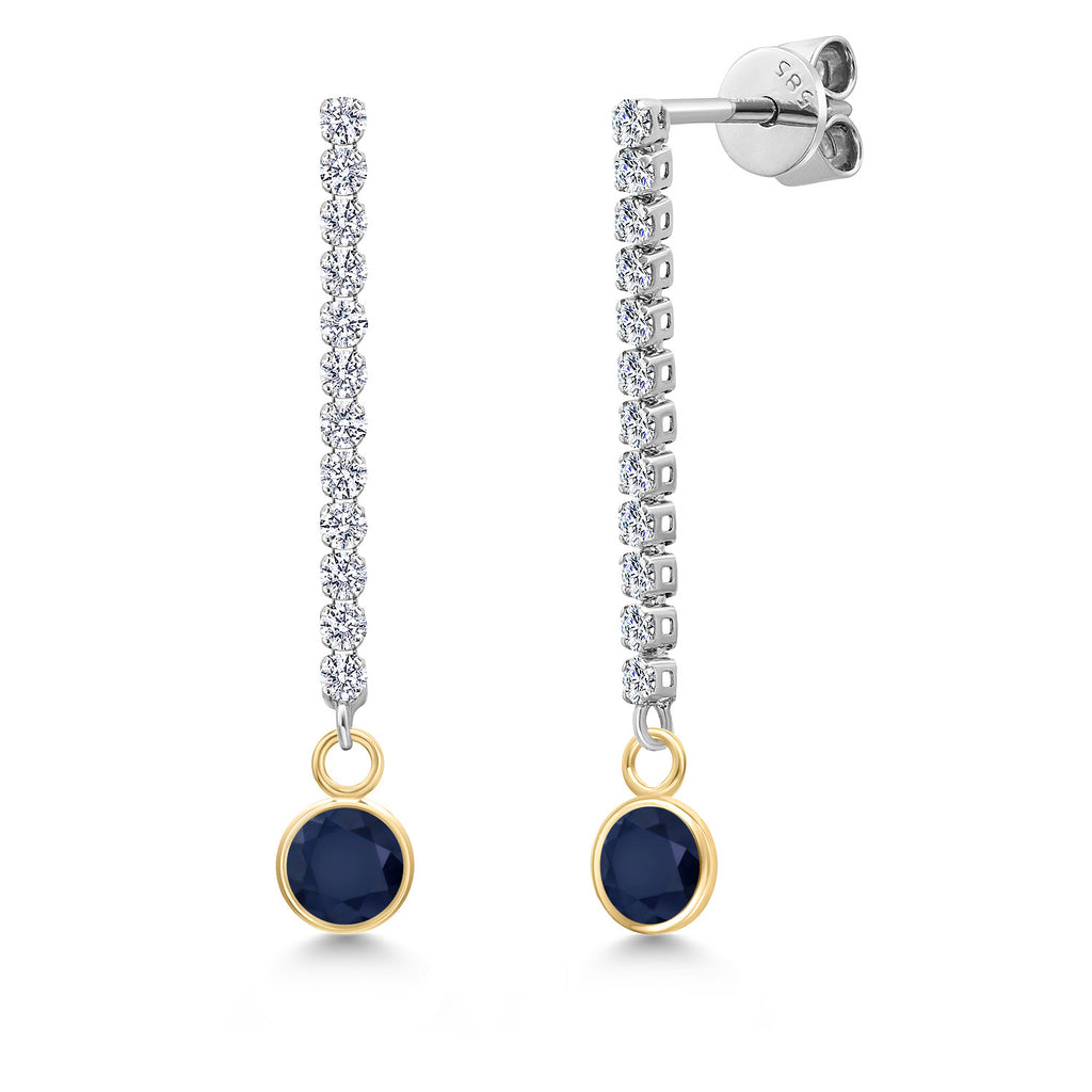 14K Two Tone Gold Gemstone Birthstone and Lab Grown Diamond Long Liner Dangle Earrings for Women | Round 5MM and 1.5MM | White Gold Chain Drop Earrings