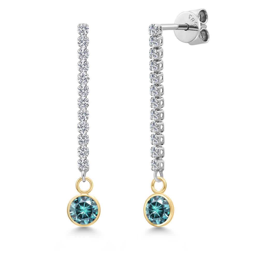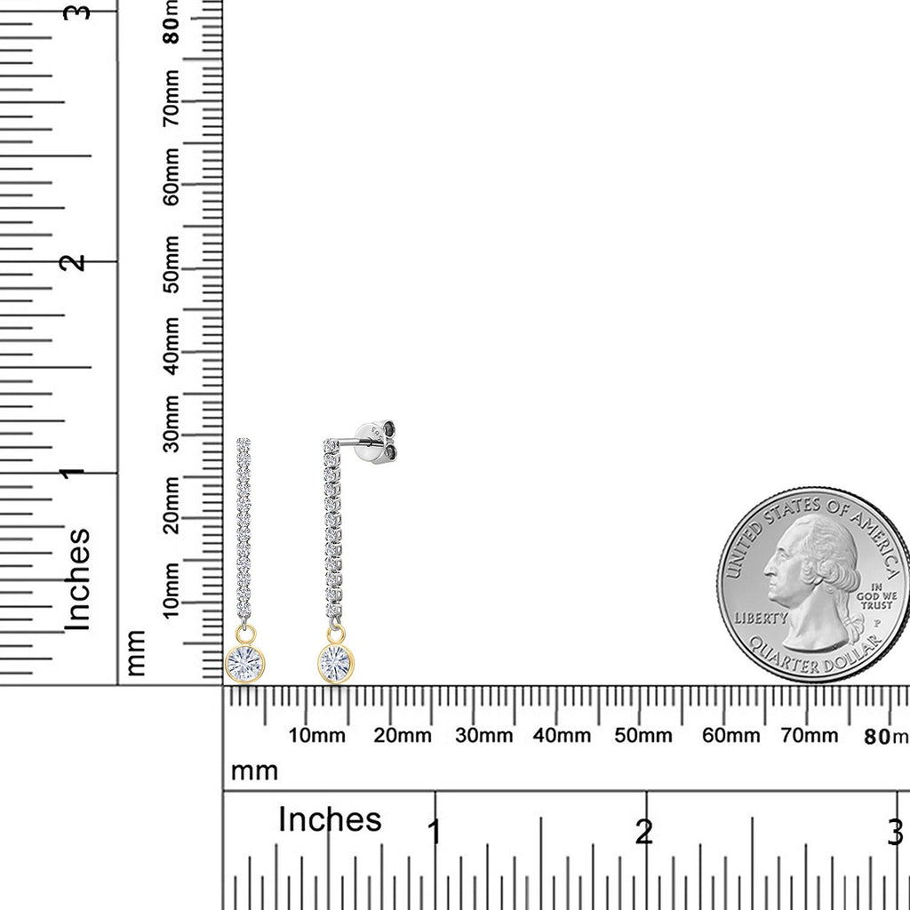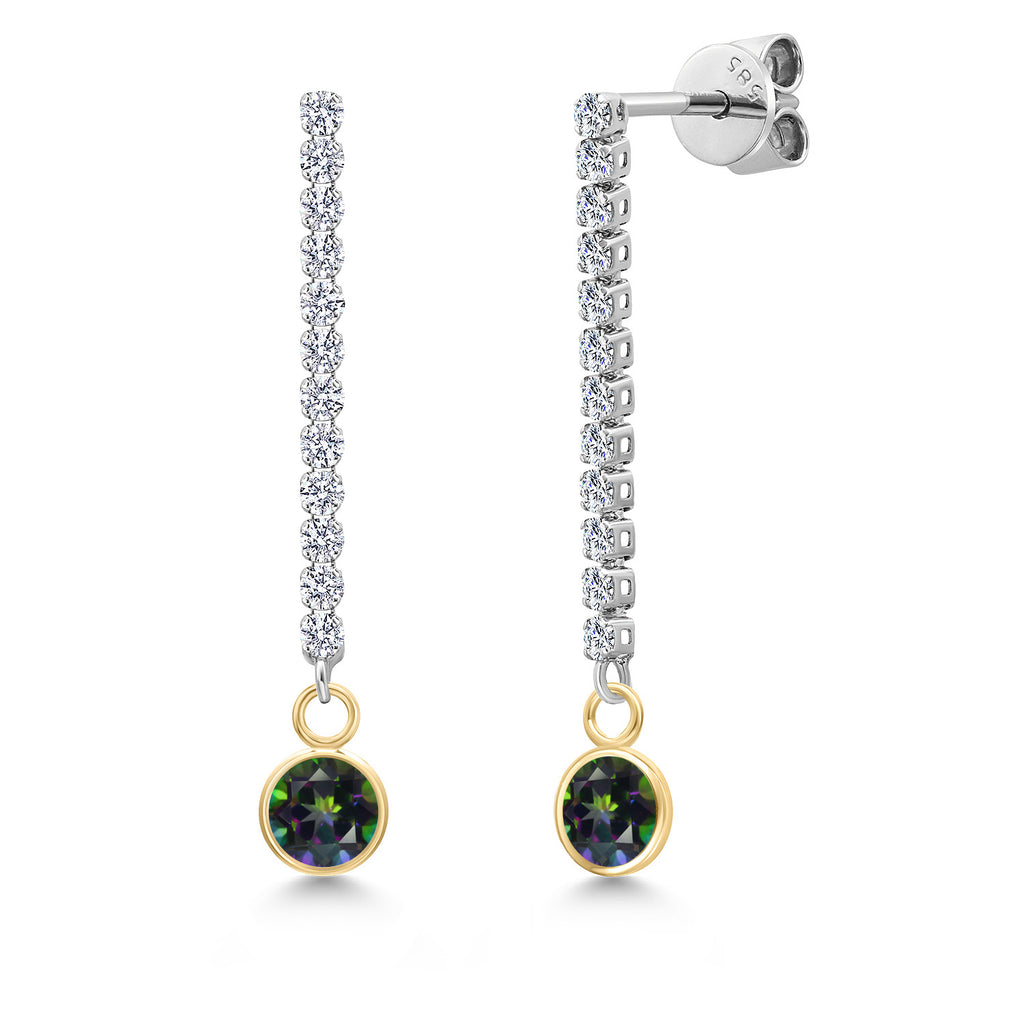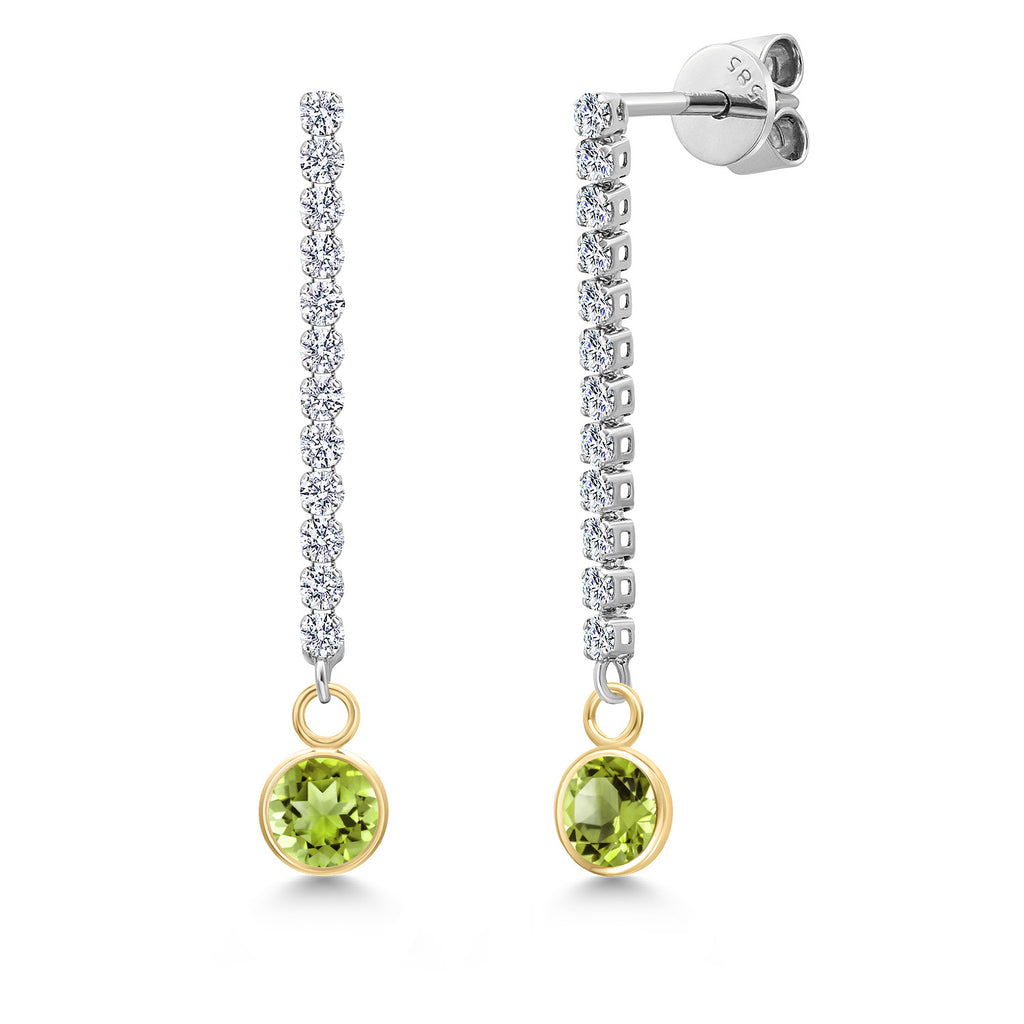 14K Two Tone Gold Gemstone Birthstone and Lab Grown Diamond Long Liner Dangle Earrings for Women | Round 5MM and 1.5MM | White Gold Chain Drop Earrings