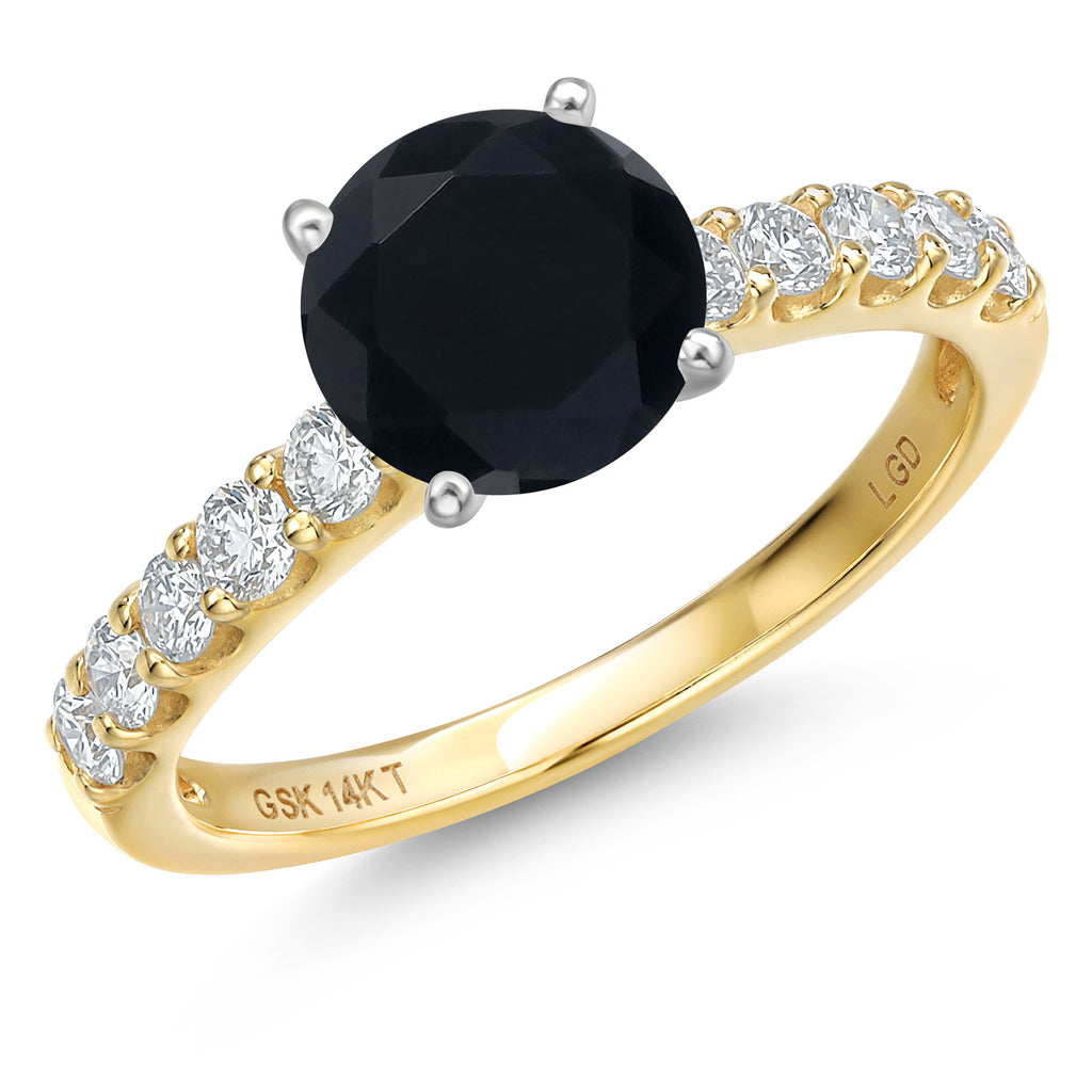 14K Two Tone Gold Gemstone Birthstone and White Lab Grown Diamond Engagement Ring For Women | Round 6MM and 2MM | Wedding Anniversary Promise Ring | Available in Size 5,6,7,8,9