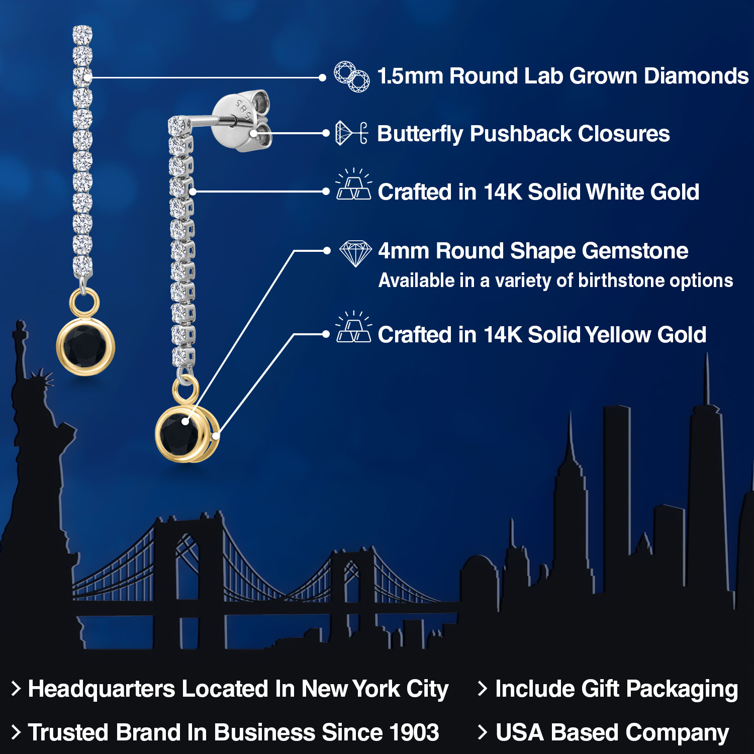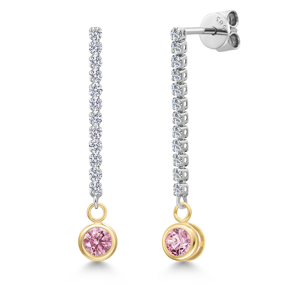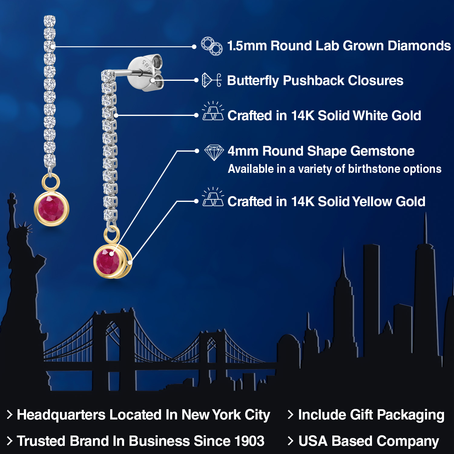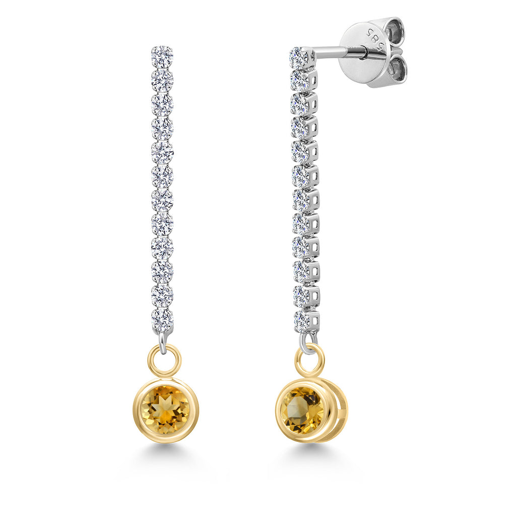 ROUND GEMSTONE BRILLIANCE: Each earring showcases a brilliant 4MM round-cut gemstone birthstone encased in a bezel setting, creating a radiant drop that adds vibrant contrast to the shimmering diamond-lined dangle. Offered in a dazzling array of birthstone options, the classic round shape enhances the gemstone's inherent brilliance, making them the perfect addition to any jewelry collection for those who appreciate refined elegance and personalized style.