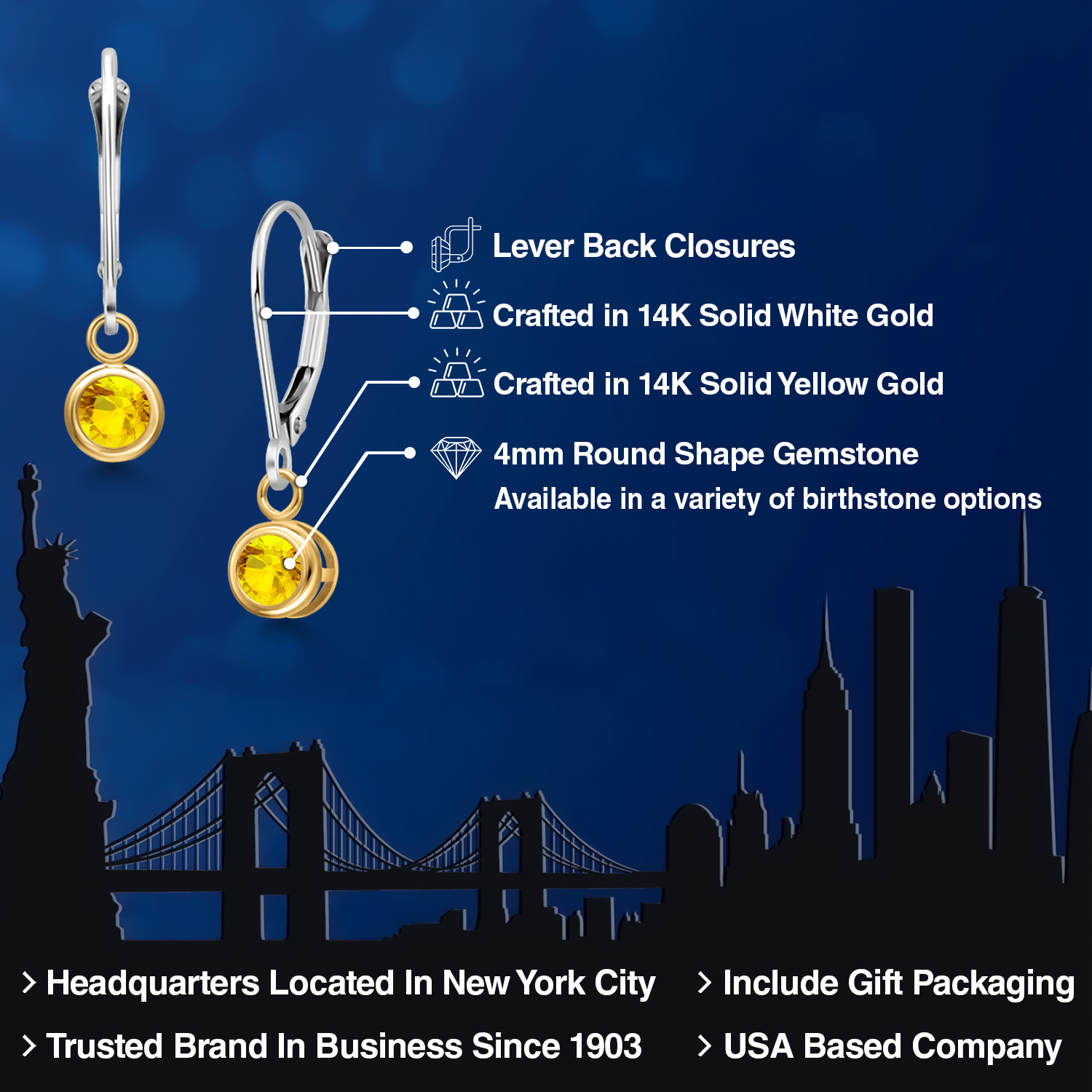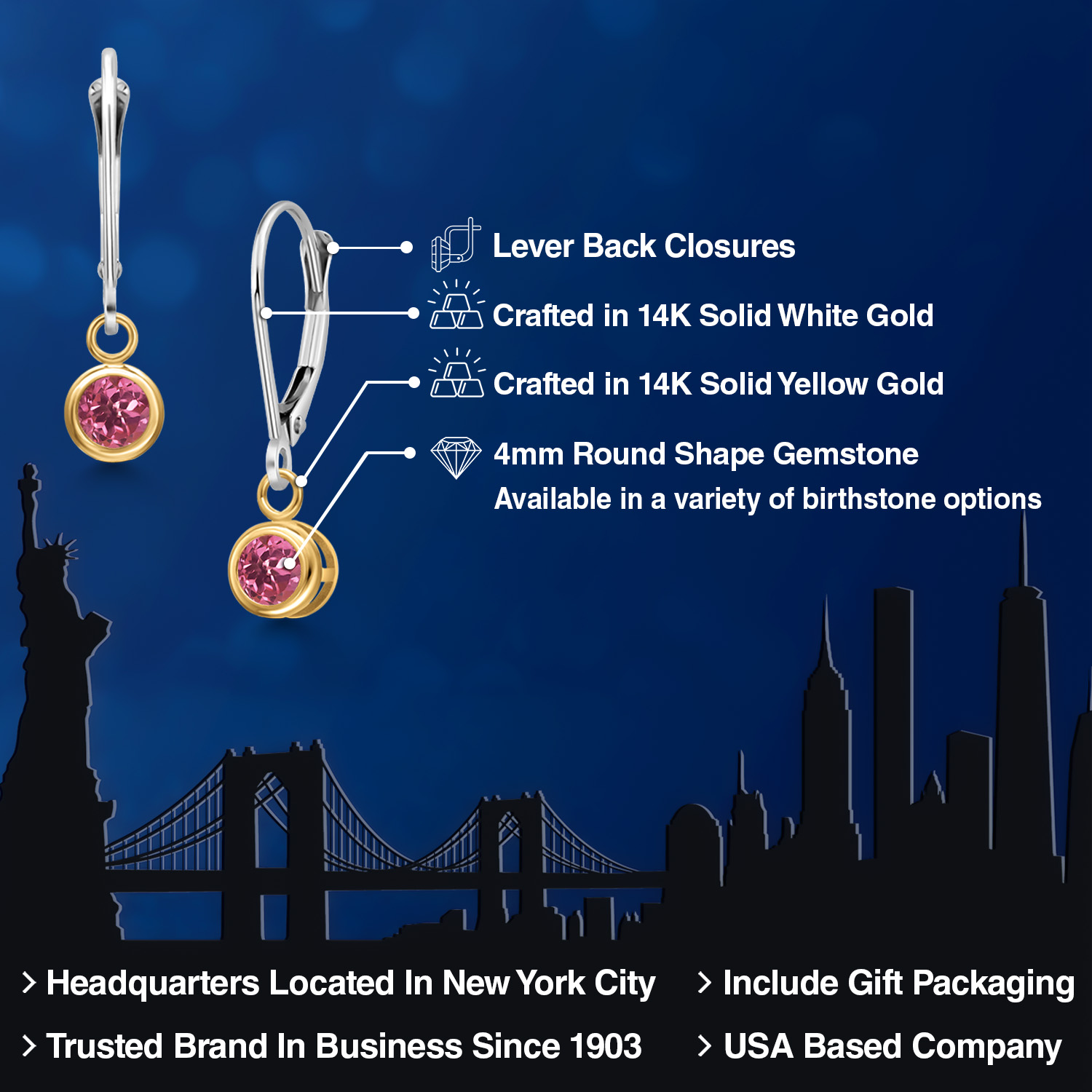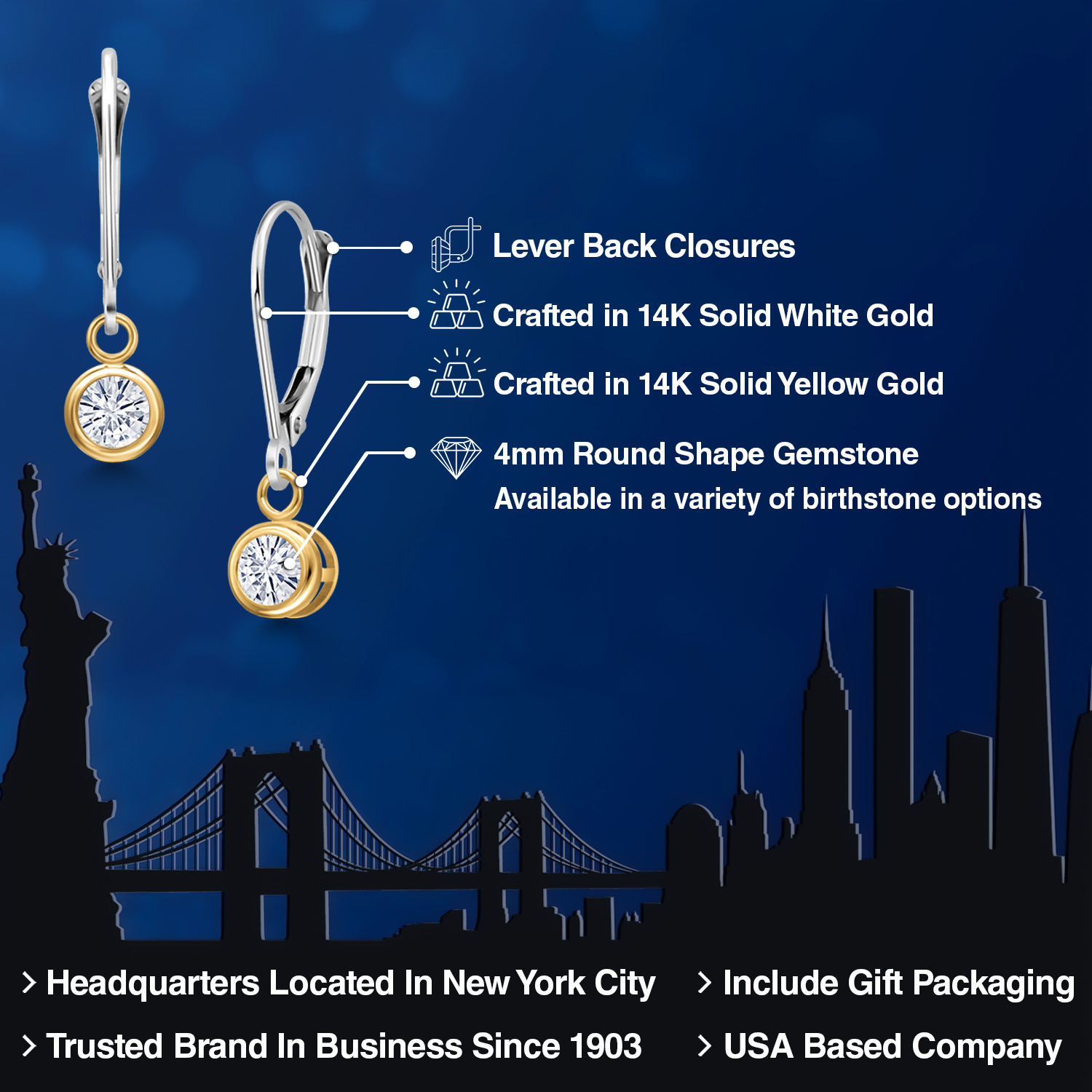 LUXURIOUS TWO-TONE GOLD: Crafted with the utmost precision, these earrings feature 14K two-tone gold that combines the rich warmth of yellow gold with the sleek elegance of white gold. This harmonious blend not only enhances the gemstone's brilliance but also provides a versatile look that complements any outfit. The high-quality gold ensures durability and longevity, making these earrings a lasting addition to any fine jewelry collection.