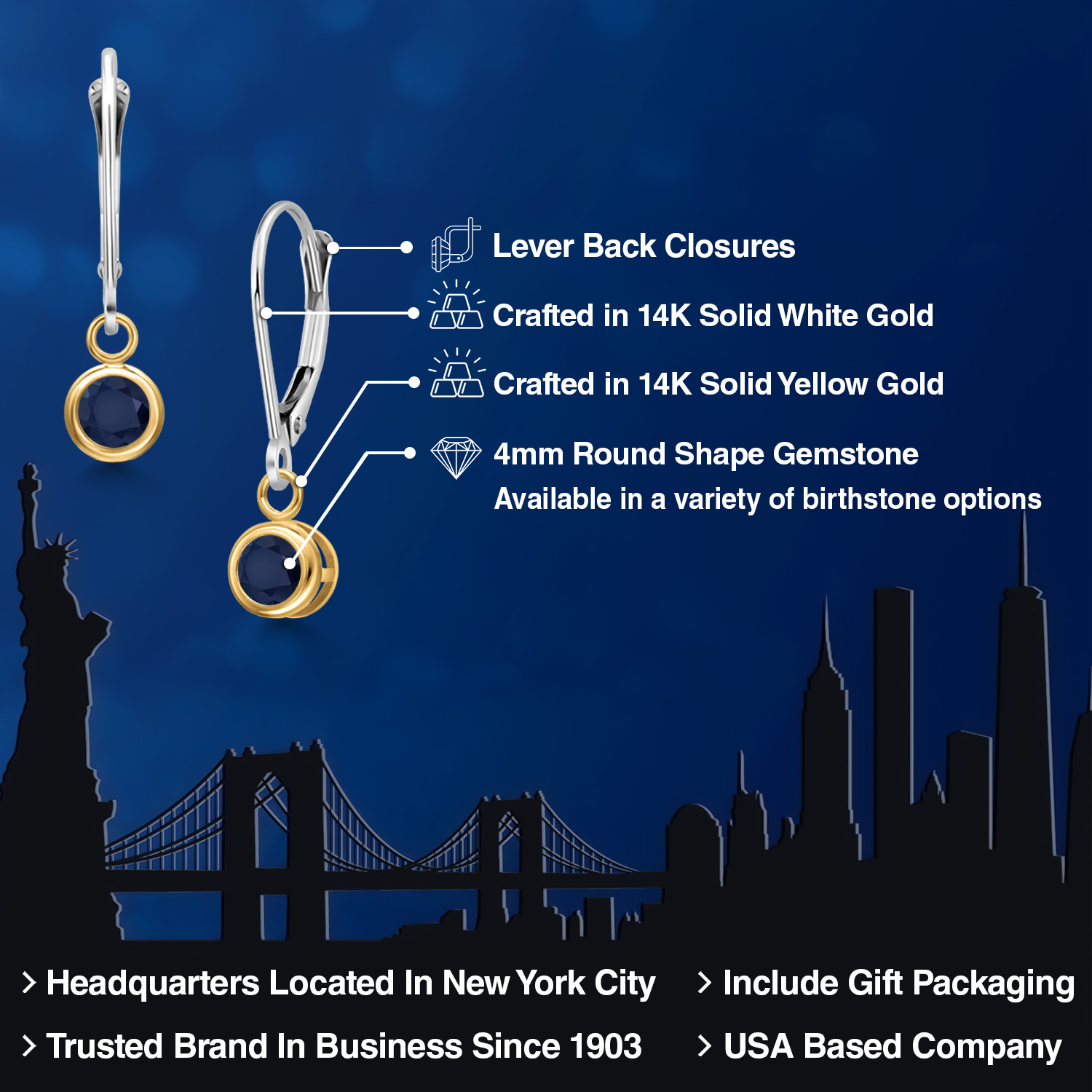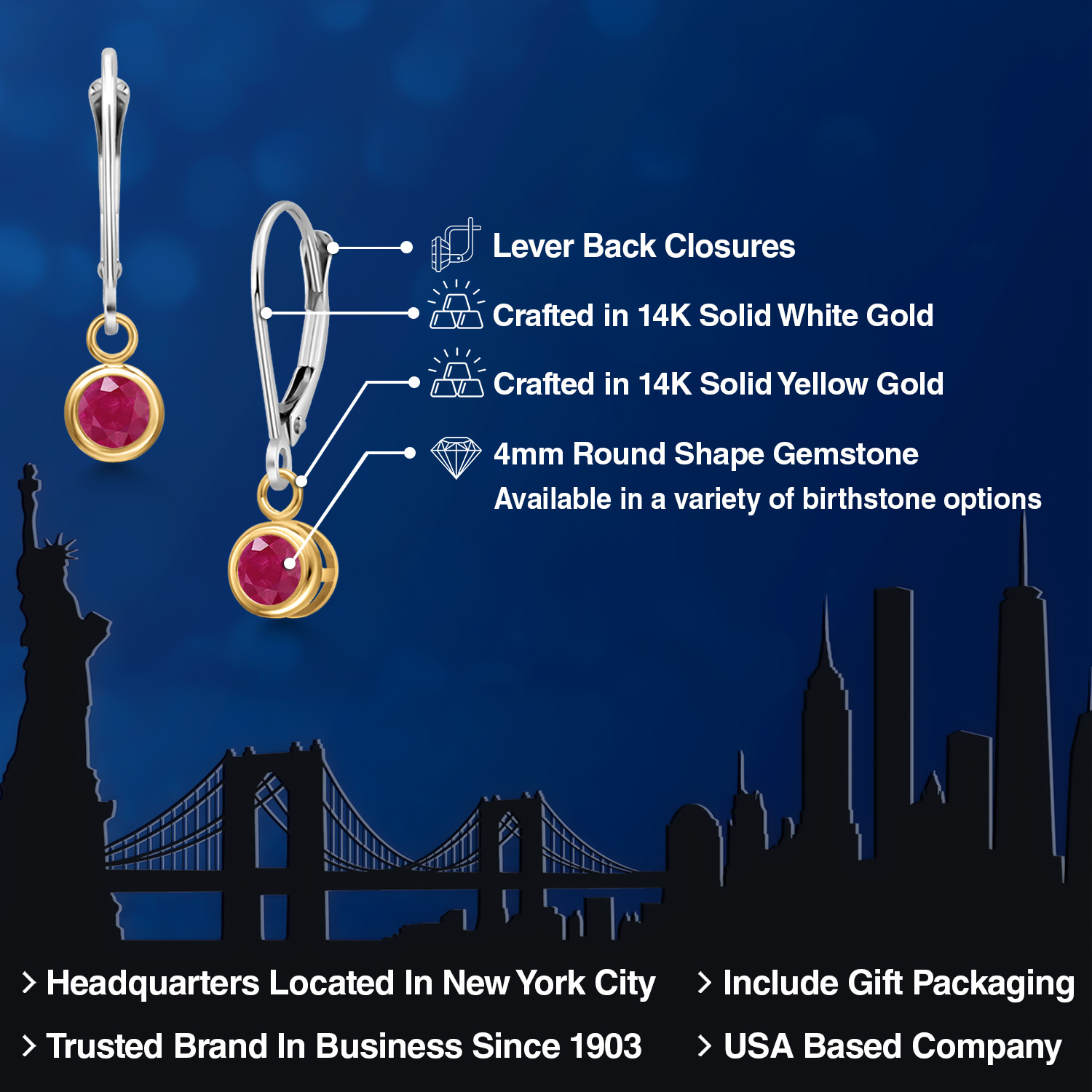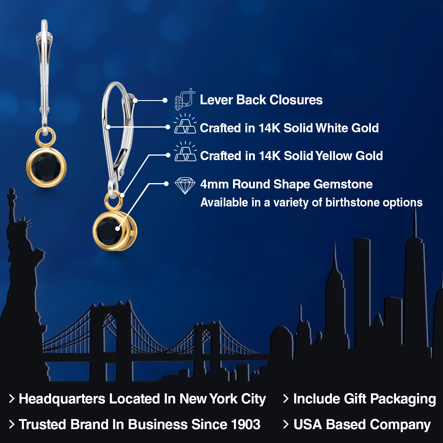 LUXURIOUS TWO-TONE GOLD: Crafted with the utmost precision, these earrings feature 14K two-tone gold that combines the rich warmth of yellow gold with the sleek elegance of white gold. This harmonious blend not only enhances the gemstone's brilliance but also provides a versatile look that complements any outfit. The high-quality gold ensures durability and longevity, making these earrings a lasting addition to any fine jewelry collection.