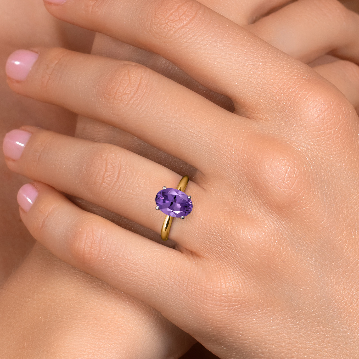 STUNNING OVAL GEMSTONE: The centerpiece of this elegant ring is a beautifully cut 10x8mm oval gemstone, offering a bold yet refined look. Each gemstone is expertly selected to showcase its natural beauty and brilliance. With a wide selection of birthstones available, this ring is perfect for adding a personalized touch to your jewelry collection.