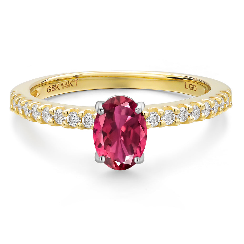 MEASUREMENTS: 7x5mm Oval Heat-Treated Pink Tourmaline, 1.3x1.3mm Round E - F Lab Grown Diamond. Total Carat Weight is 1.01 cttw