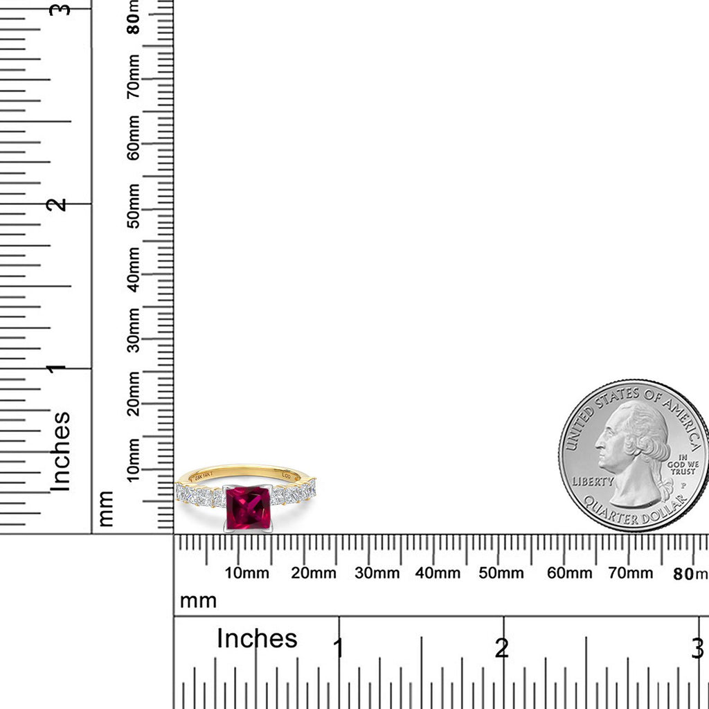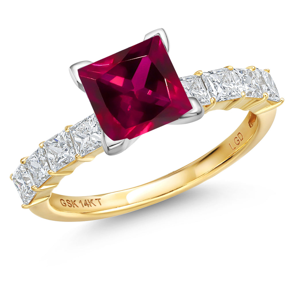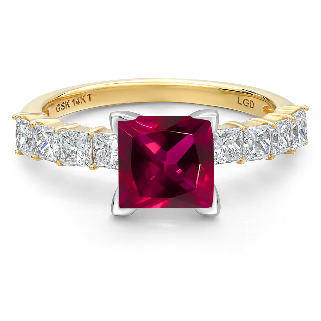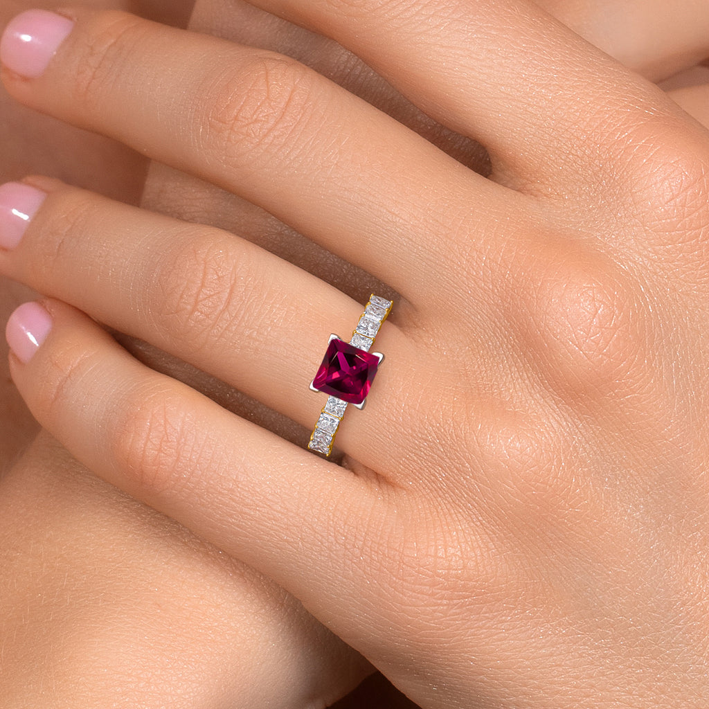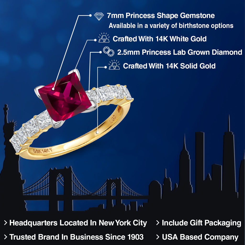14K Two Tone Gold Princess Cut Gemstone Birthstone and White Lab Grown Diamond Engagement Ring For Women | Princess 7MM and 2.5MM | Wedding Anniversary Promise Ring | Available in Size 5,6,7,8,9