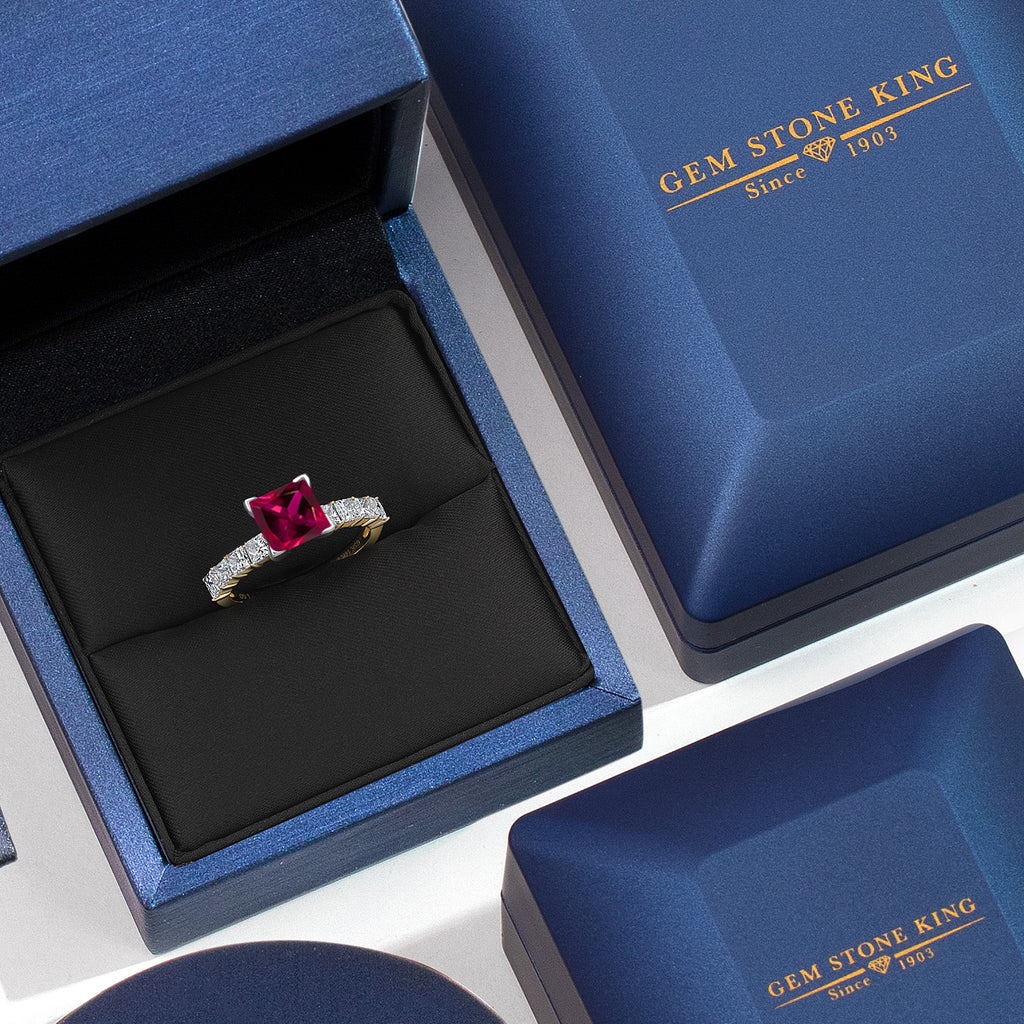 2-Tone Engagement Ring For Women | 925 Silver and 10K Yellow Gold | Gemstone Birthstone | 6MM Cushion Cut | Wedding Anniversary Promise Ring | Available In Size 5, 6, 7, 8, 9