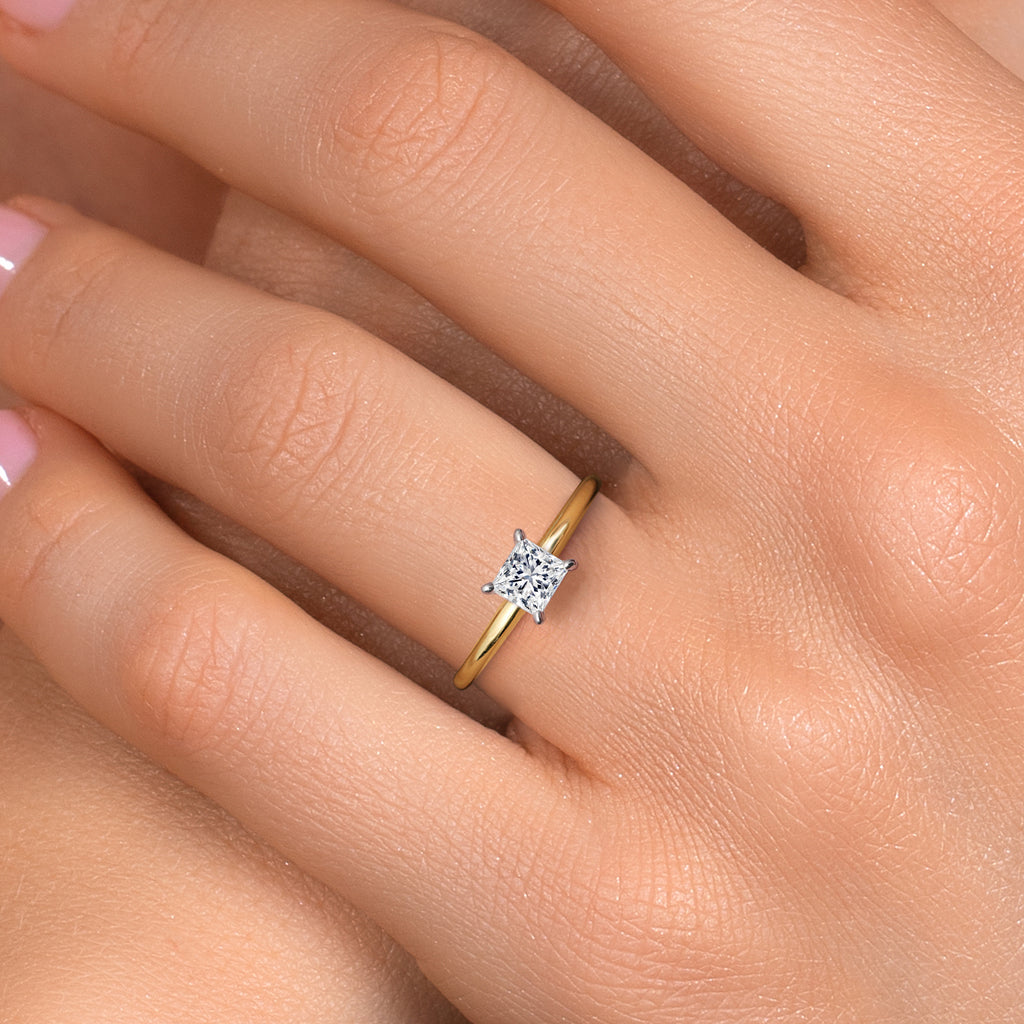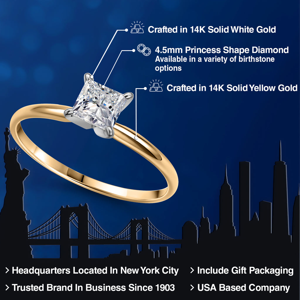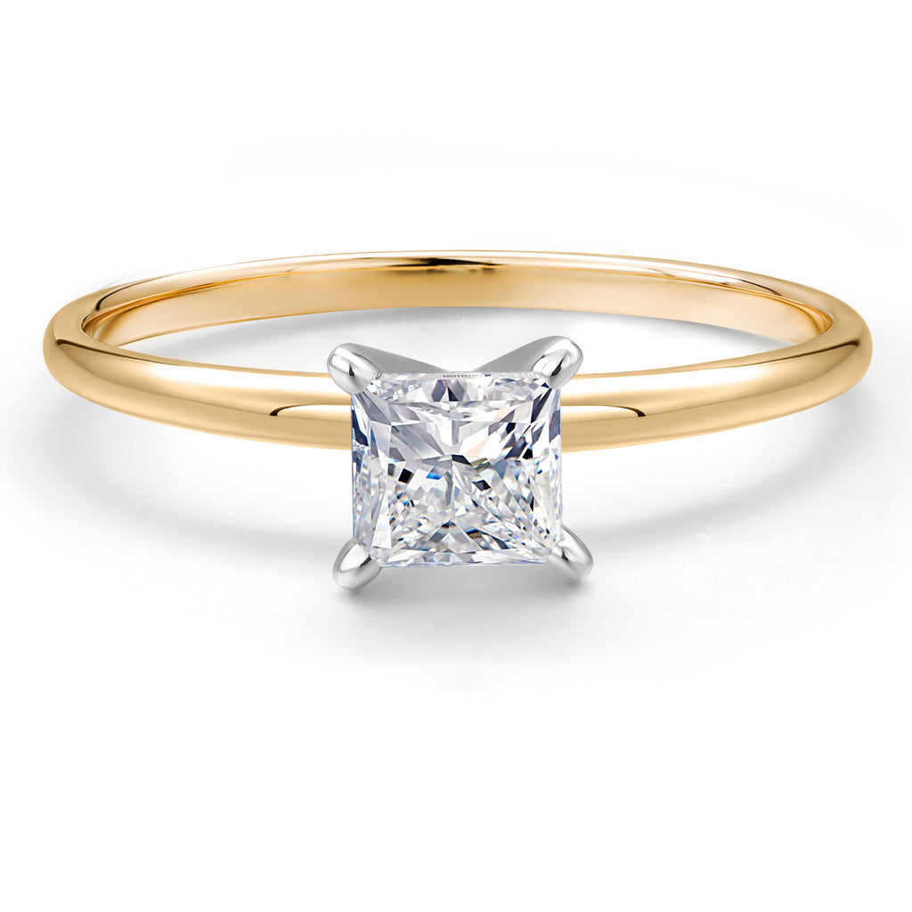 ELEGANT TWO TONE DESIGN: Crafted from high-quality 14K two tone gold, this ring combines the best of both worlds with its blend of yellow and white gold. The unique two tone design enhances the beauty of the princess cut diamond, providing a striking contrast that adds to the ring's elegance and charm.