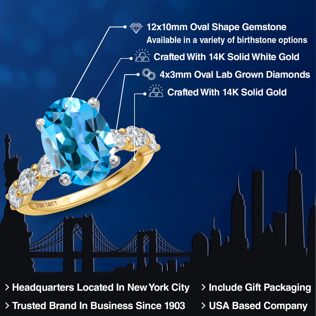 ELEGANT BLUE TOPAZ AND DIAMOND DESIGN: This luxurious engagement ring features a 12x10MM oval Swiss Blue Topaz accented by sparkling Lab Grown Diamonds, totaling 7.20 carats. The November birthstone’s serene blue hue symbolizes calm, strength, and love.