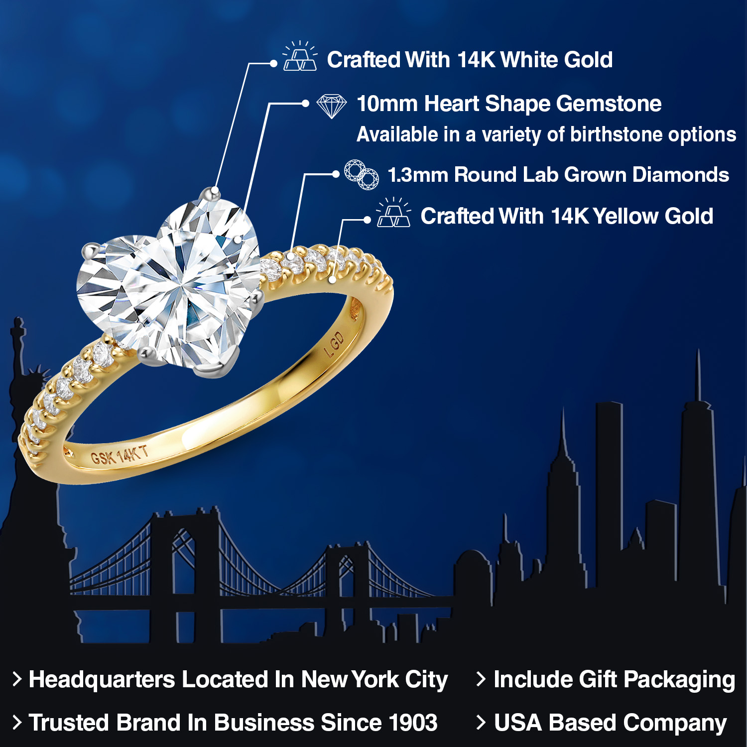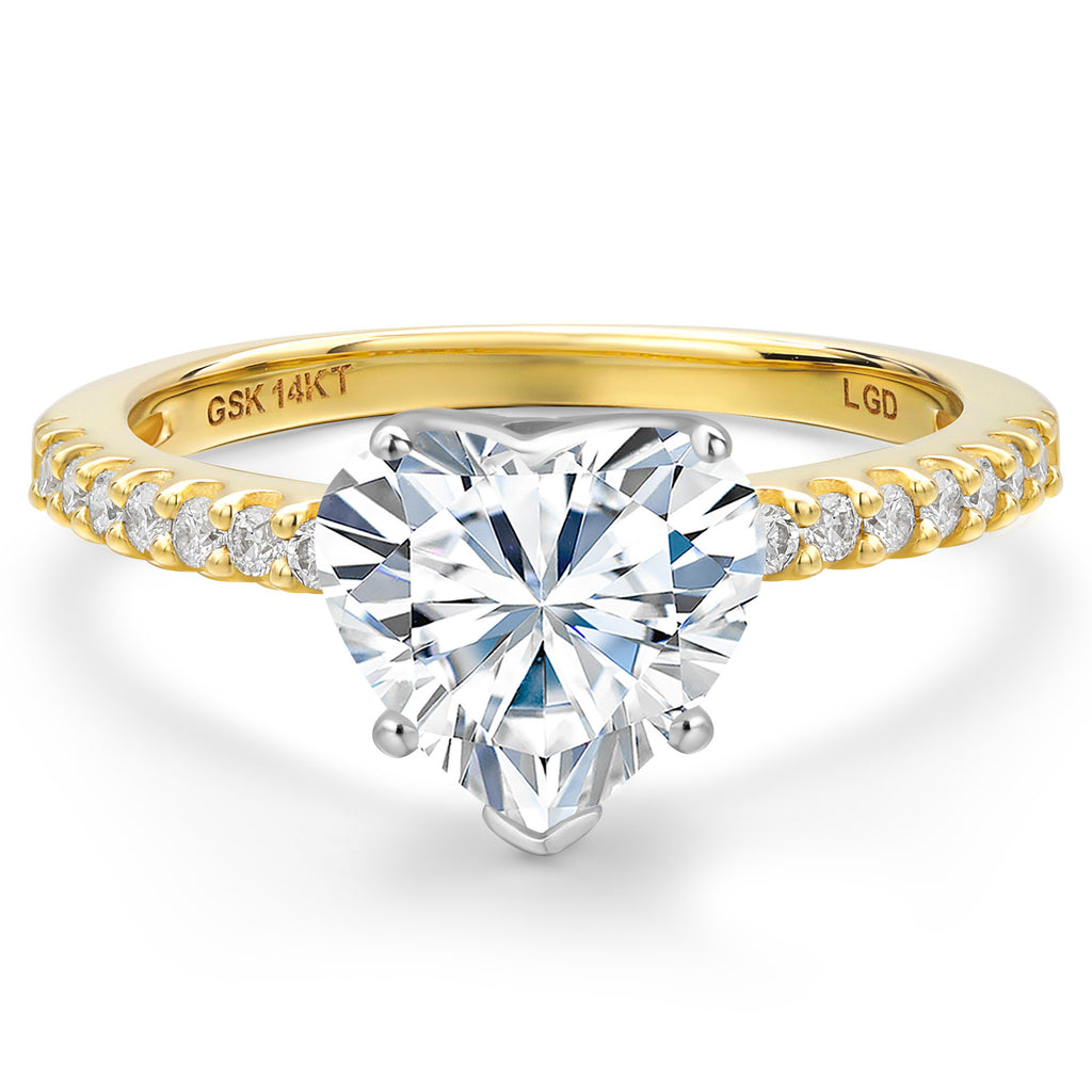 MEASUREMENTS: 10x10mm Heart Shape Near Colorless (GH) Moissanite, 1.3x1.3mm Round E - F Lab Grown Diamond. Total Carat Weight is 3.86 cttw