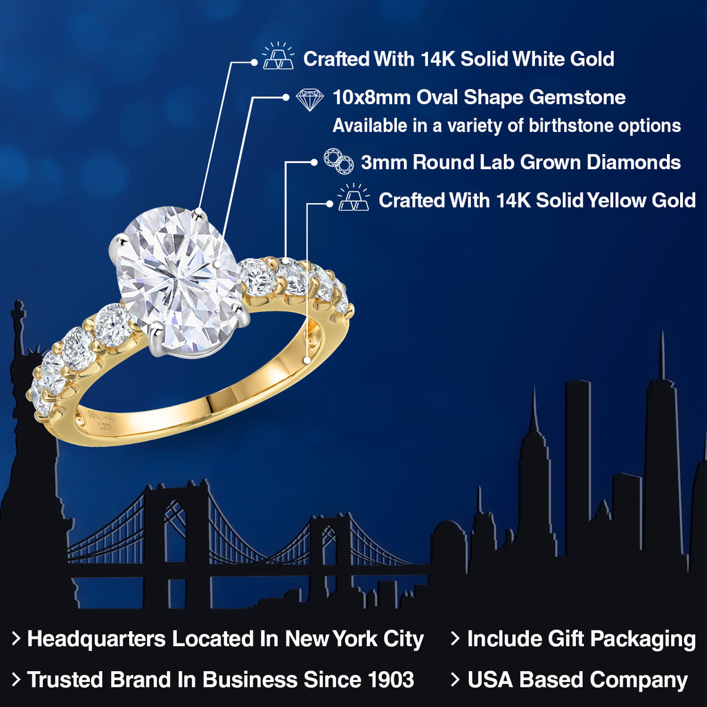 2-Tone Engagement Ring For Women | 925 Silver and 10K Yellow Gold | Gemstone Birthstone | 6MM Cushion Cut | Wedding Anniversary Promise Ring | Available In Size 5, 6, 7, 8, 9