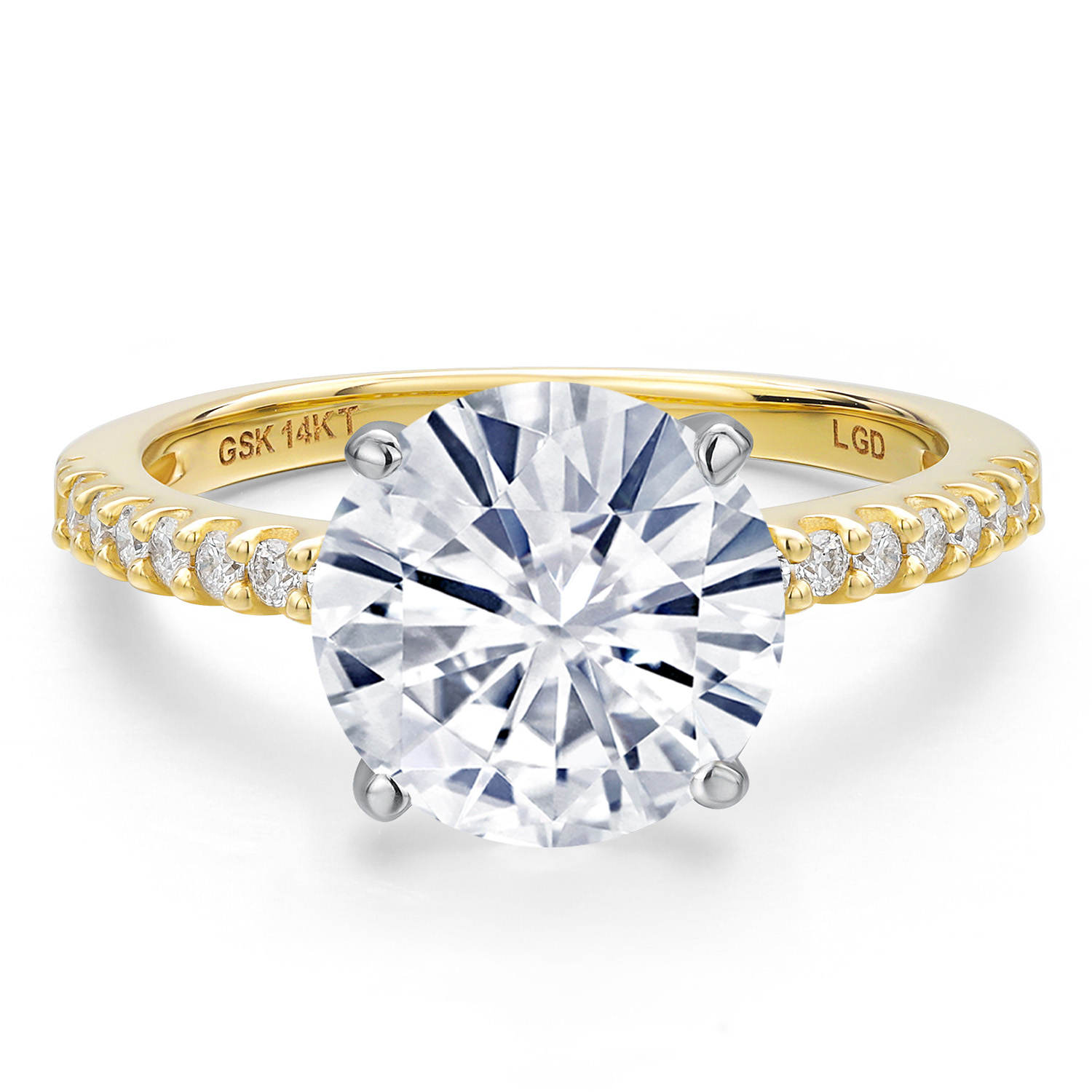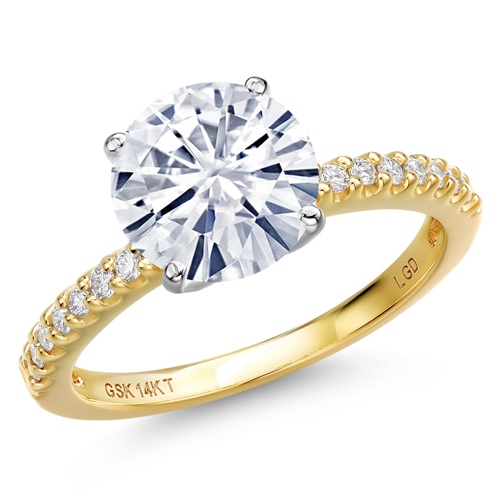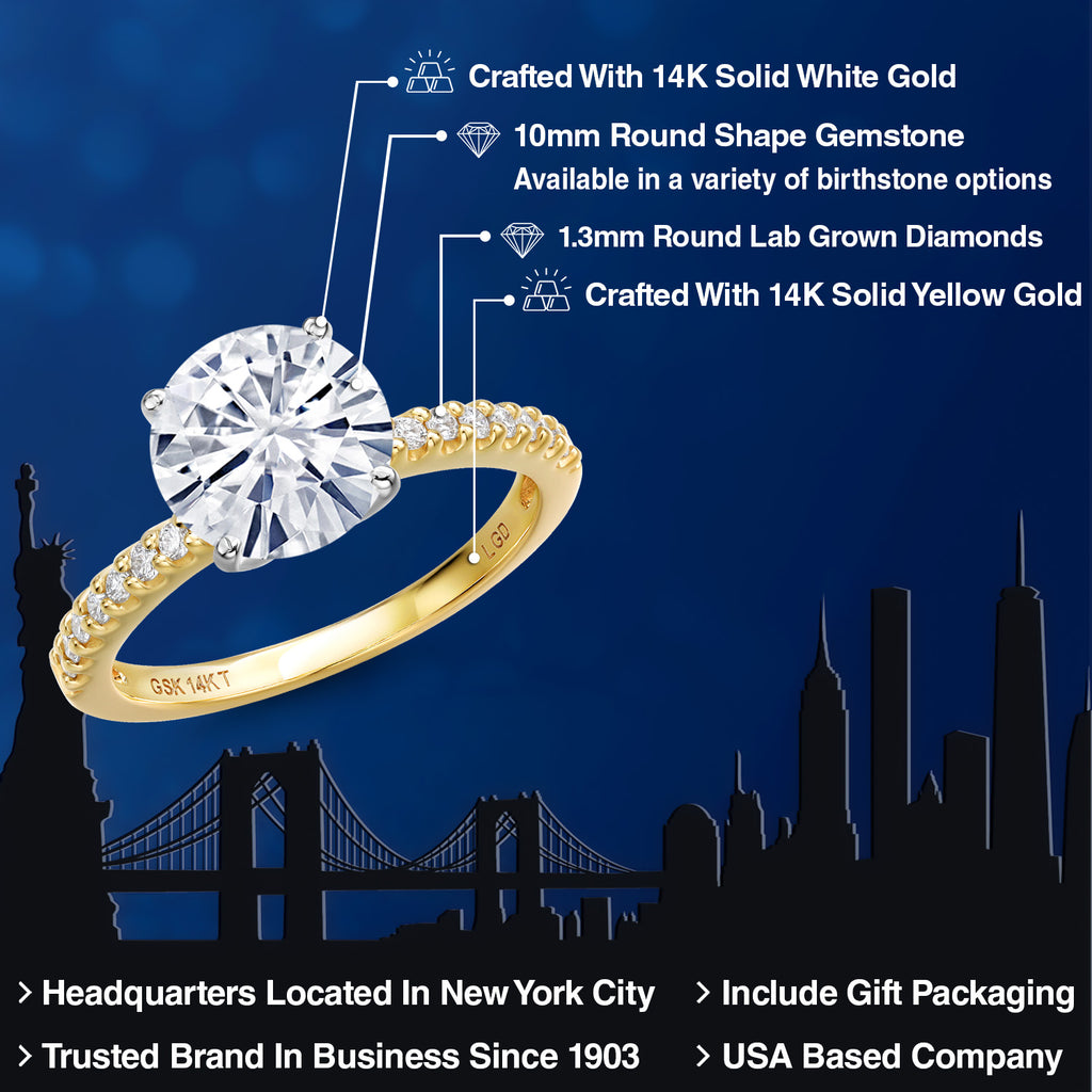 14K Two Tone Gold White Moissanite and Lab Grown Diamond Engagement Ring For Women | 4.16 Cttw | Round 10MM | Wedding Engagement Anniversary Promise Ring For Women