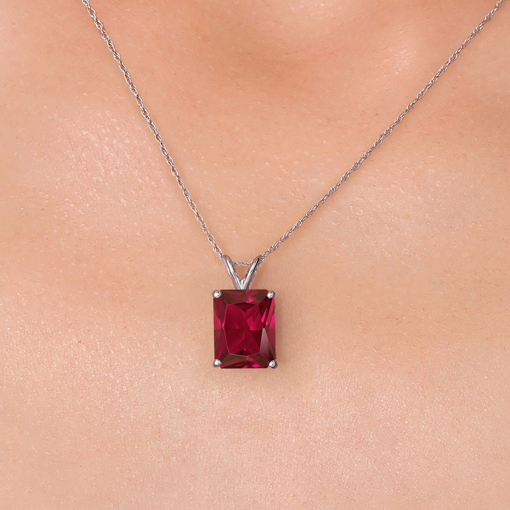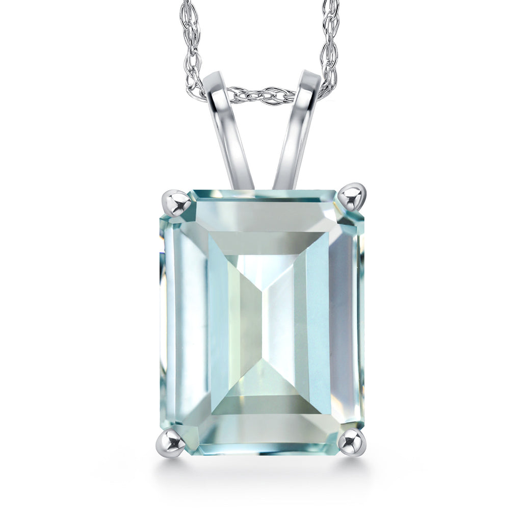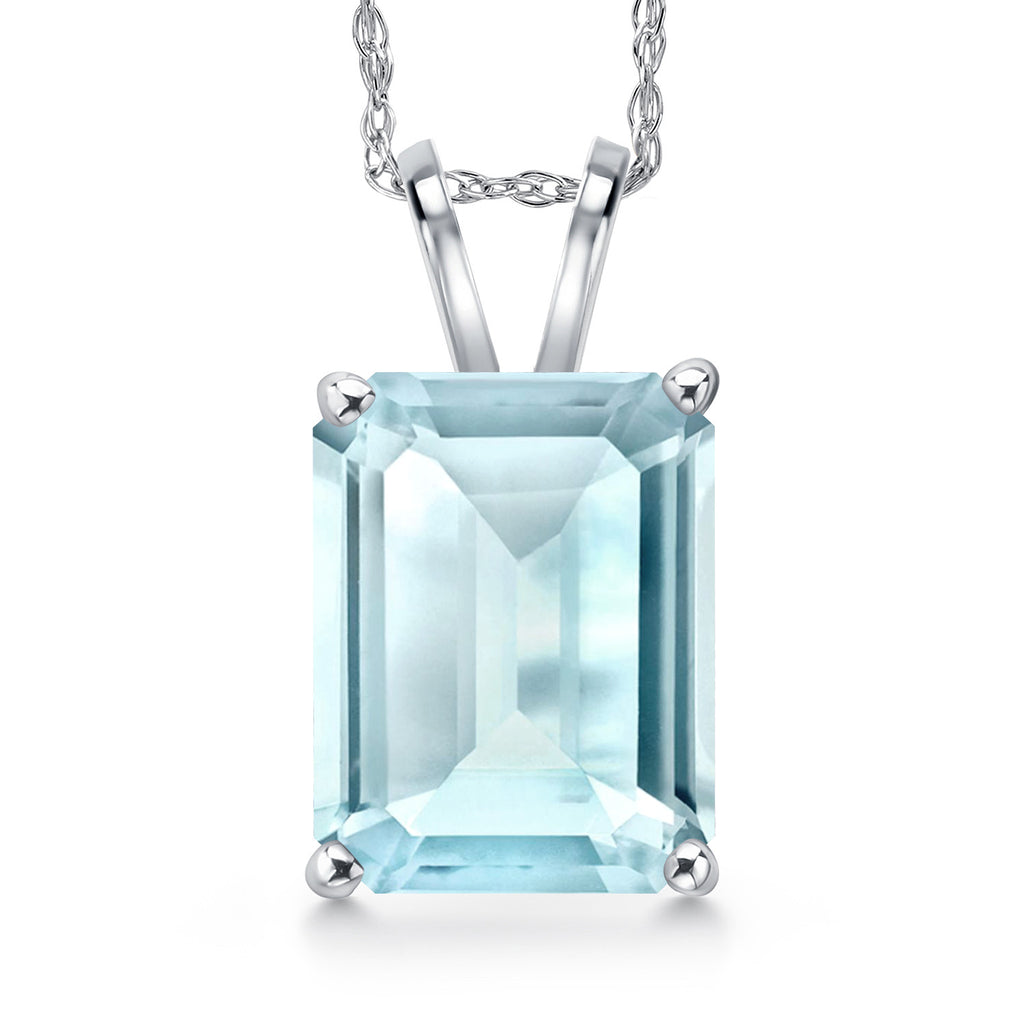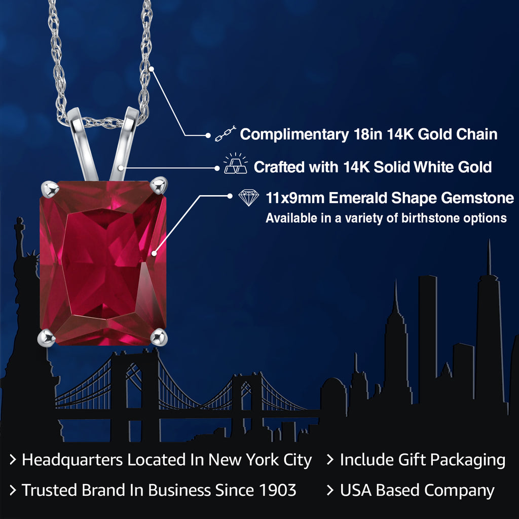 4-6 Cttw 14K White Gold 11X9MM Emerald Cut Gemstone Birthstone Gold Pendant Necklace for Women | With 18 Inch Rope Gold Chain | Fine Jewelry Gifts for Her Mom Wife