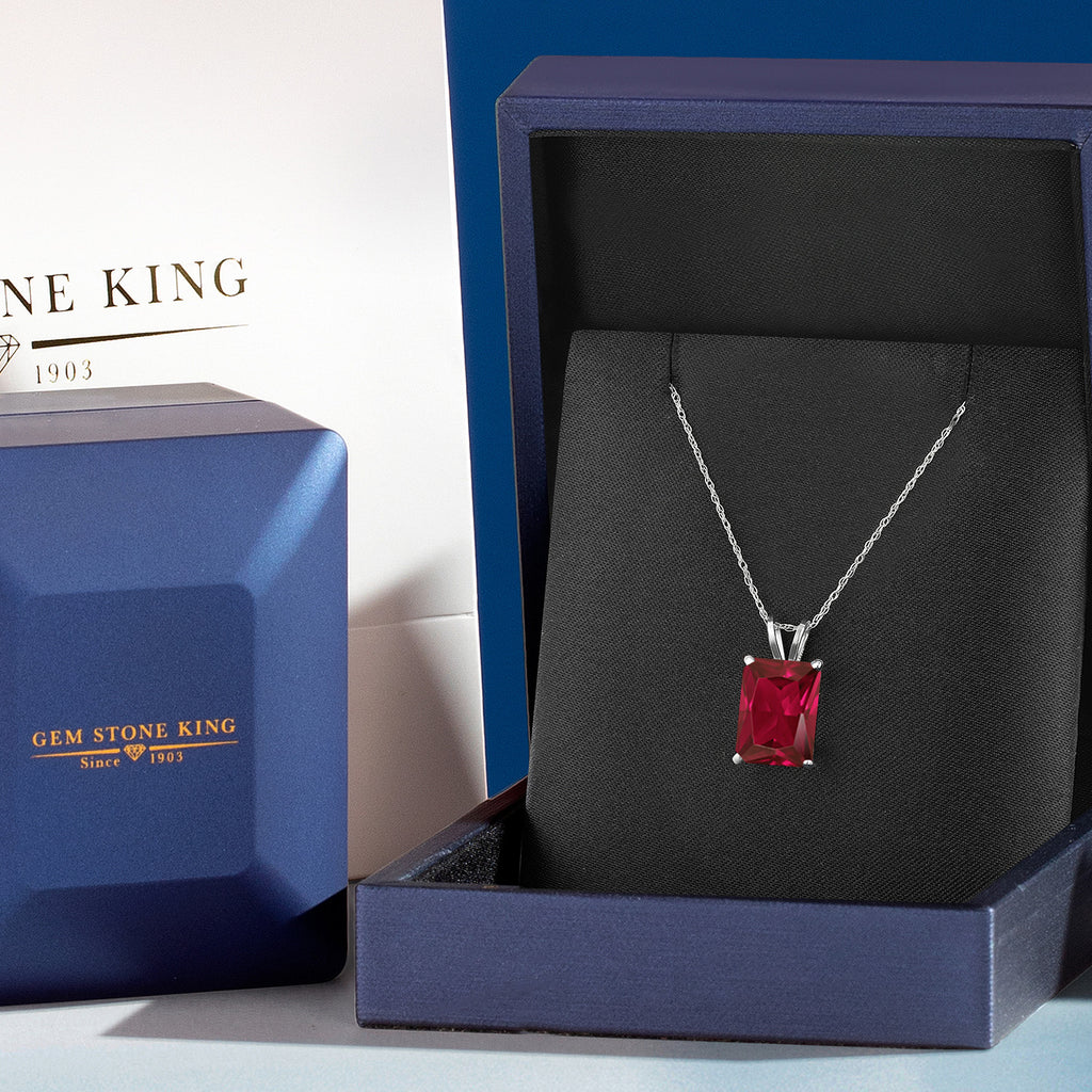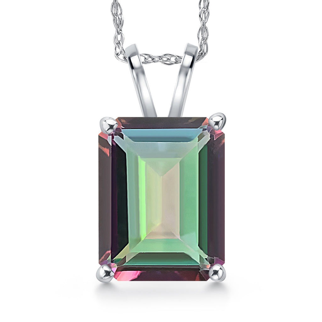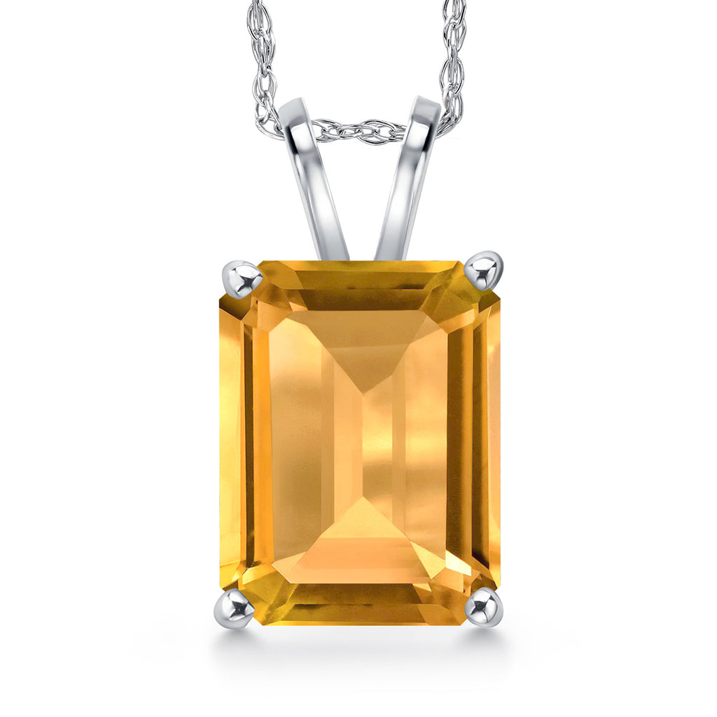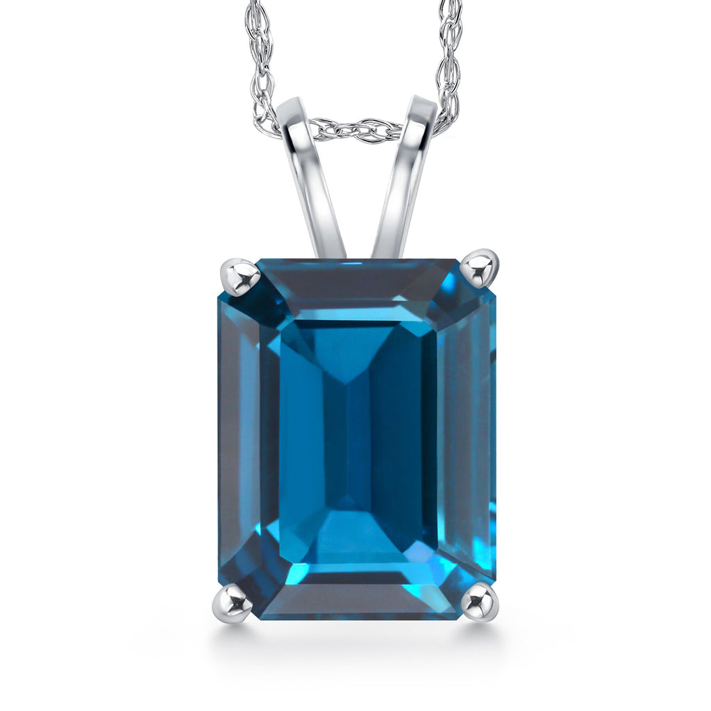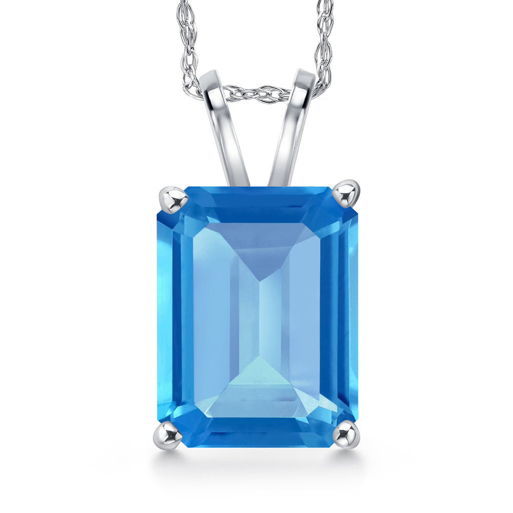 4-6 Cttw 14K White Gold 11X9MM Emerald Cut Gemstone Birthstone Gold Pendant Necklace for Women | With 18 Inch Rope Gold Chain | Fine Jewelry Gifts for Her Mom Wife