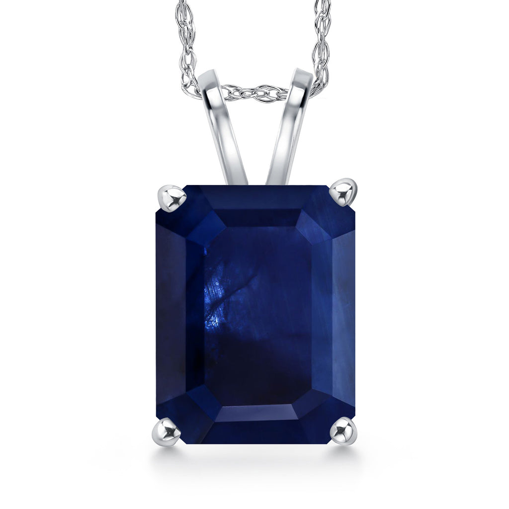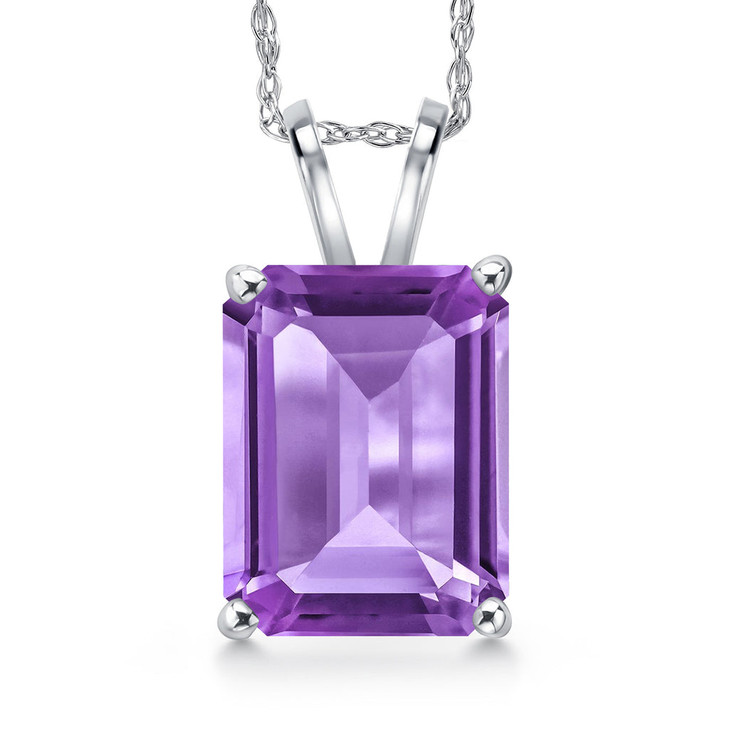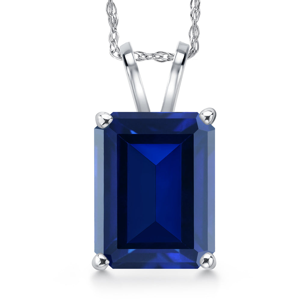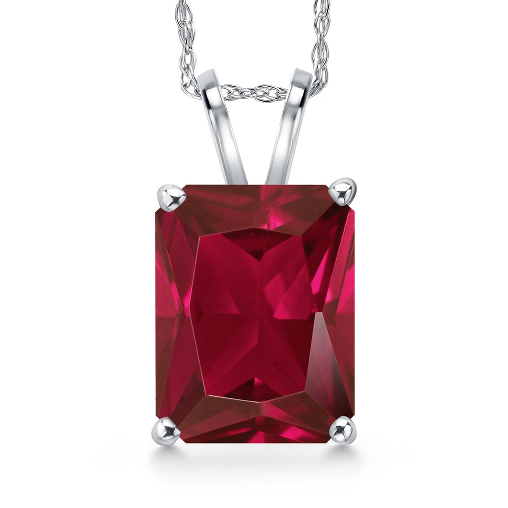 4-6 Cttw 14K White Gold 11X9MM Emerald Cut Gemstone Birthstone Gold Pendant Necklace for Women | With 18 Inch Rope Gold Chain | Fine Jewelry Gifts for Her Mom Wife
