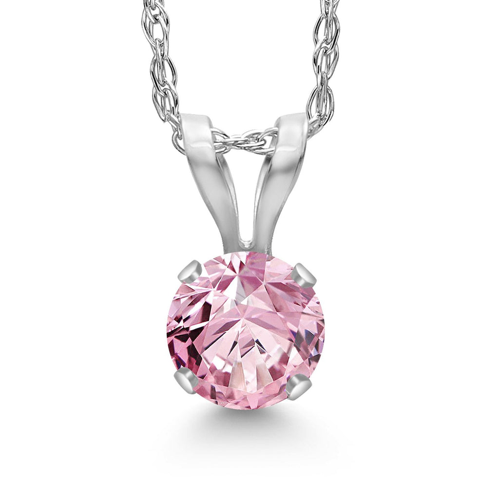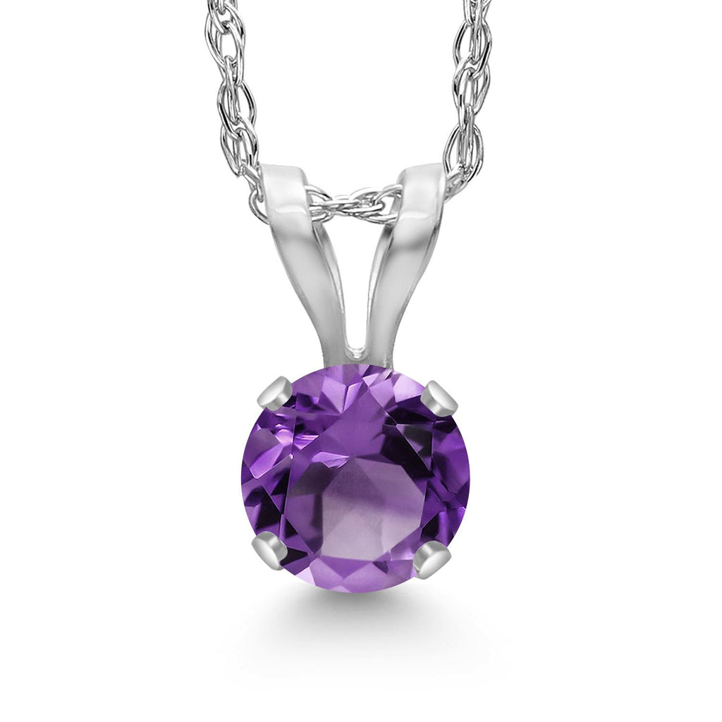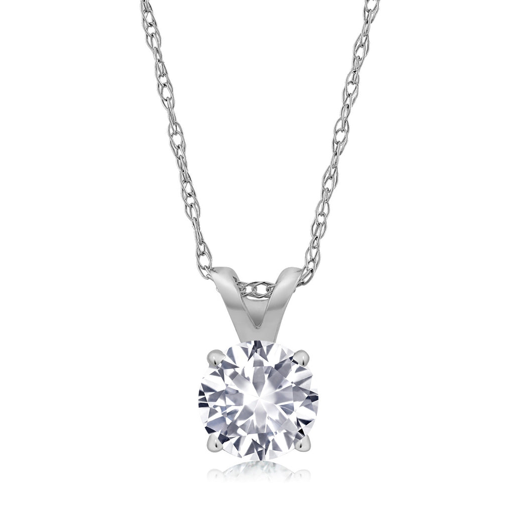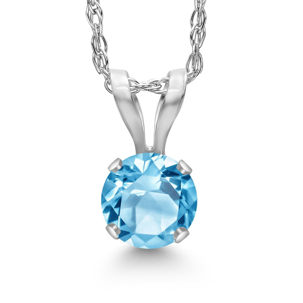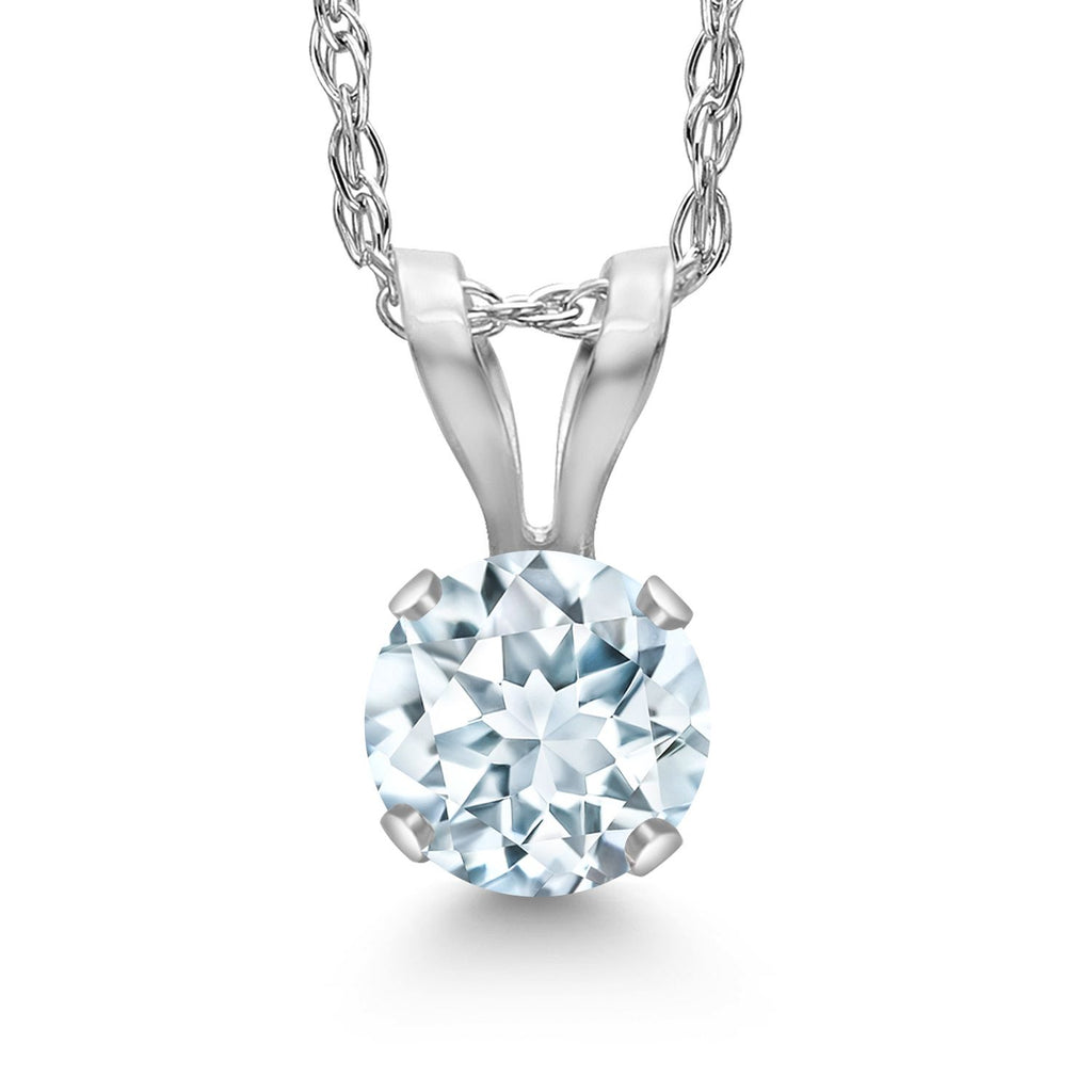 14K White Gold 4MM Round Gemstone Birthstone Solitaire Pendant Necklace | Gold Necklace For Women | With 18 inch Gold Rope Chain | Fine Jewelry Gifts for Her Mom Women Wife