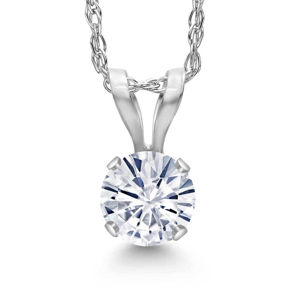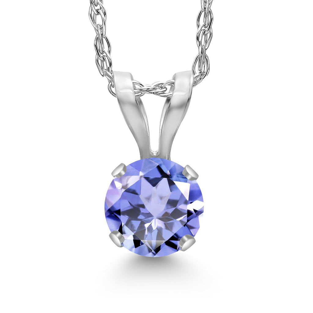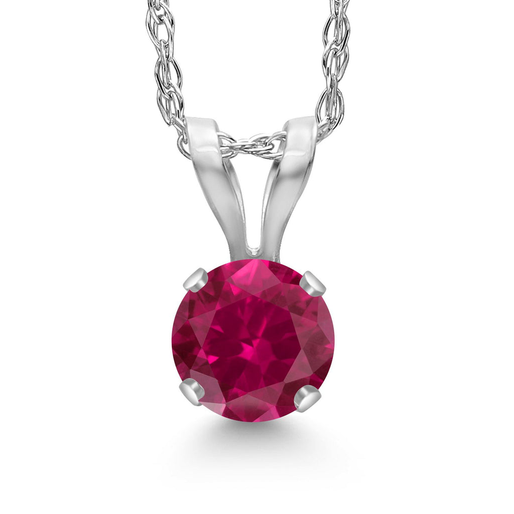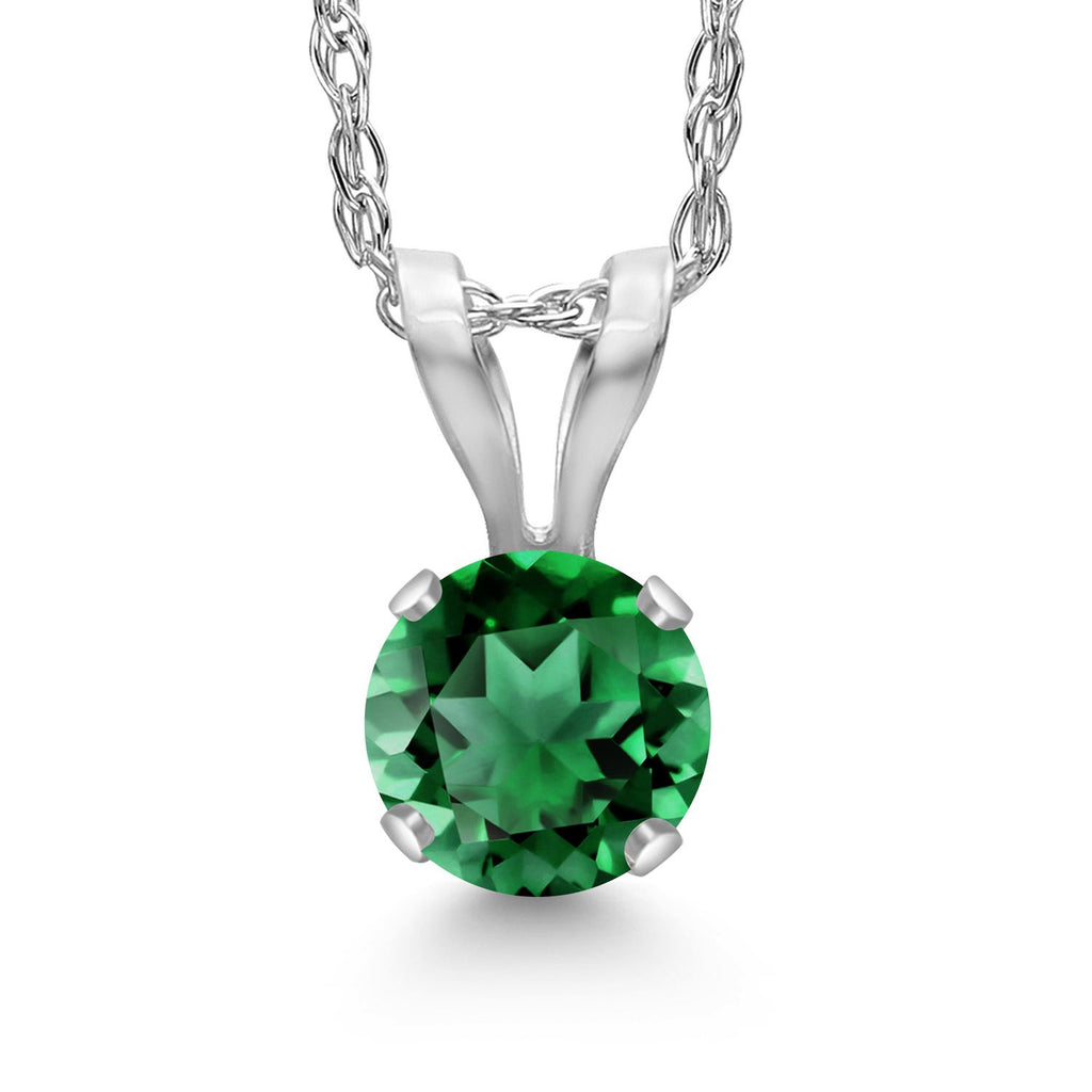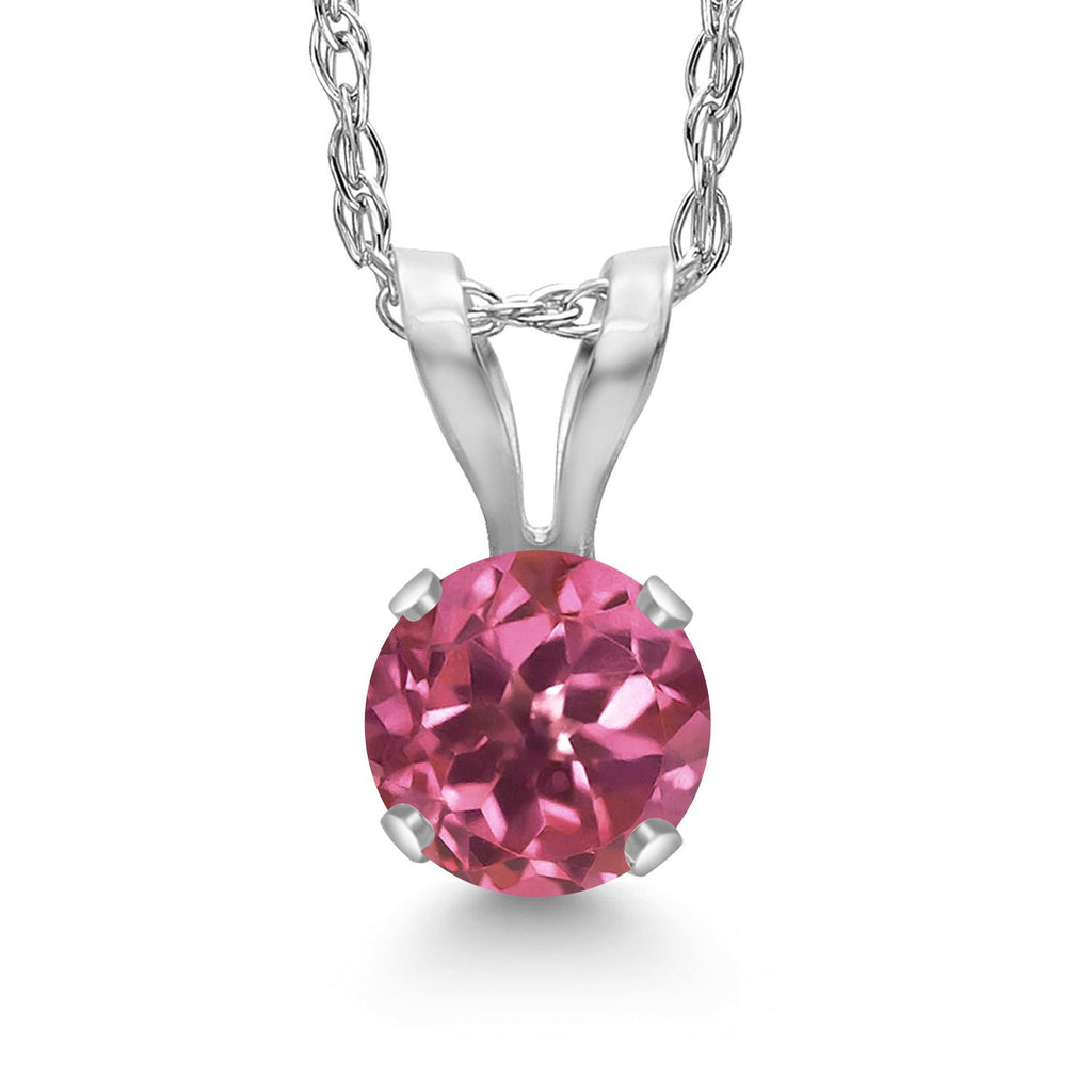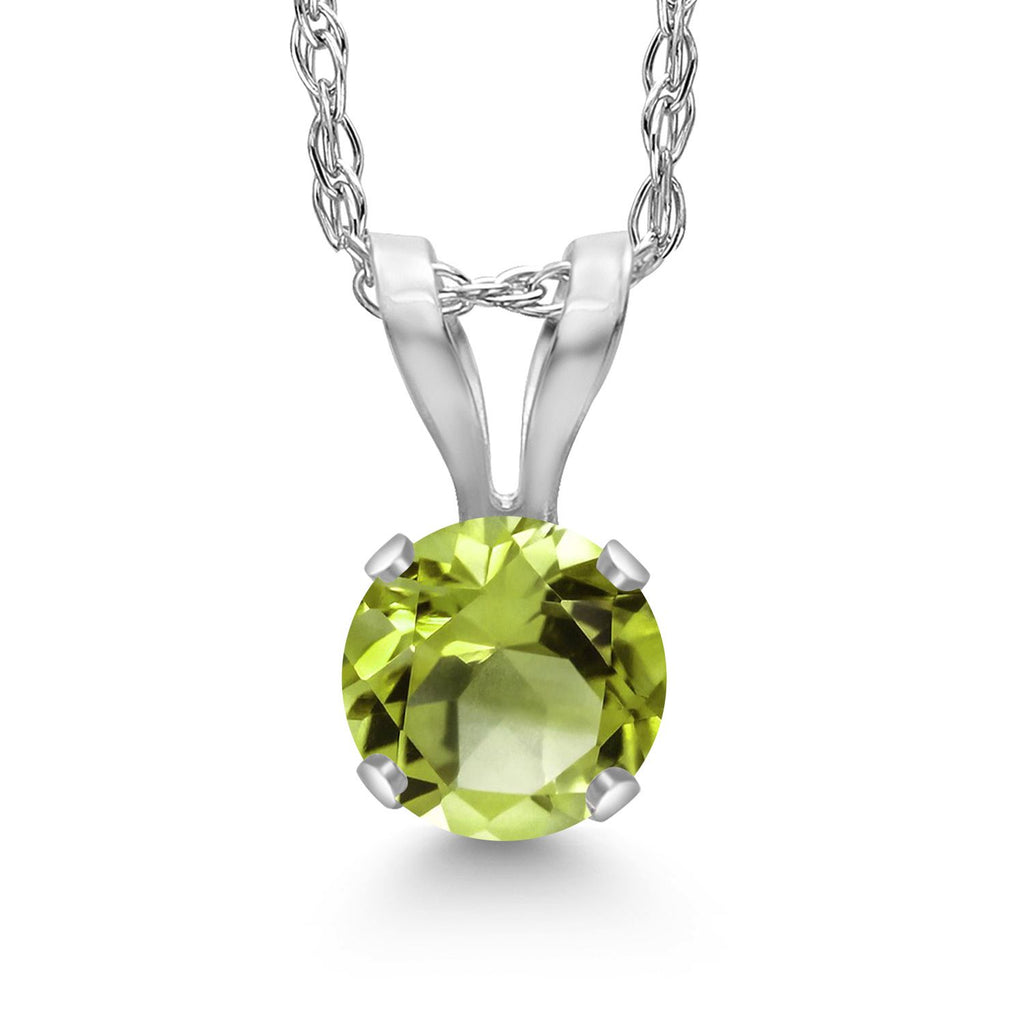 14K White Gold 4MM Round Gemstone Birthstone Solitaire Pendant Necklace | Gold Necklace For Women | With 18 inch Gold Rope Chain | Fine Jewelry Gifts for Her Mom Women Wife