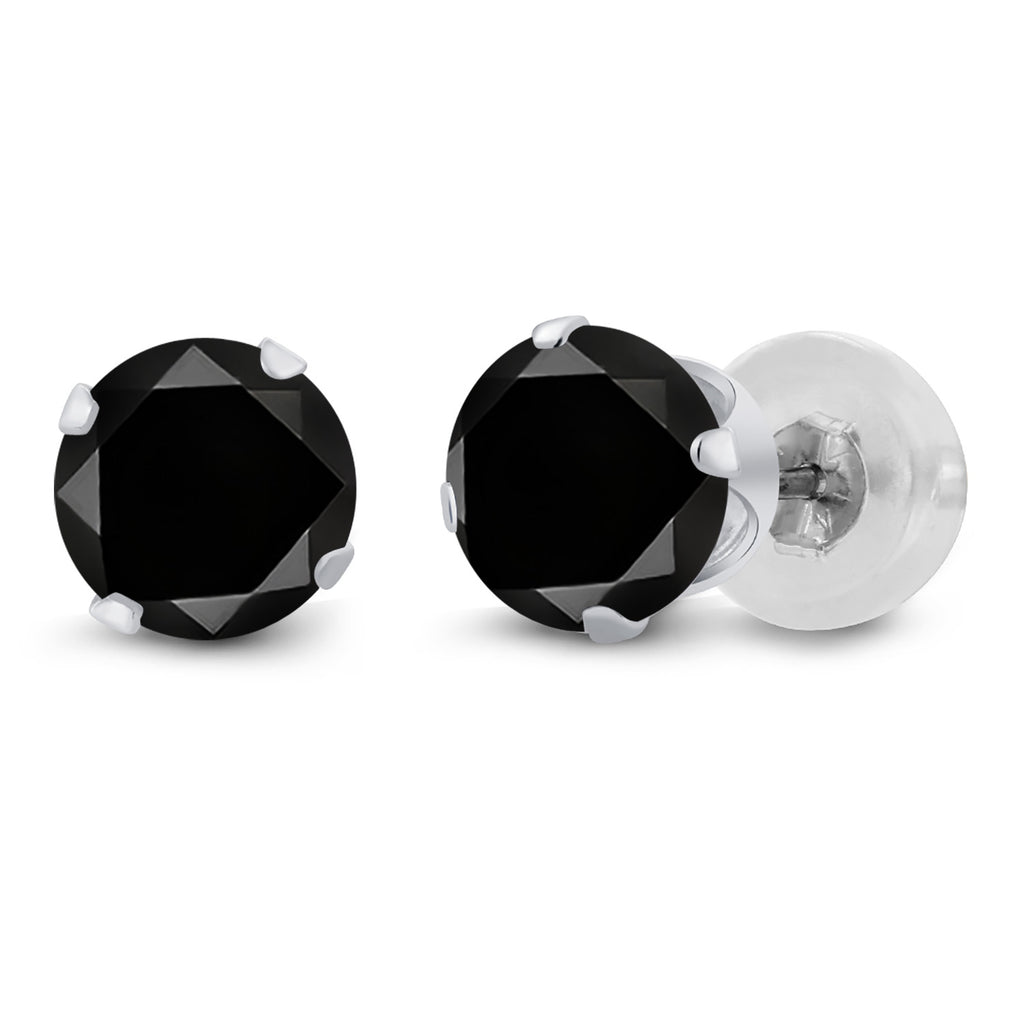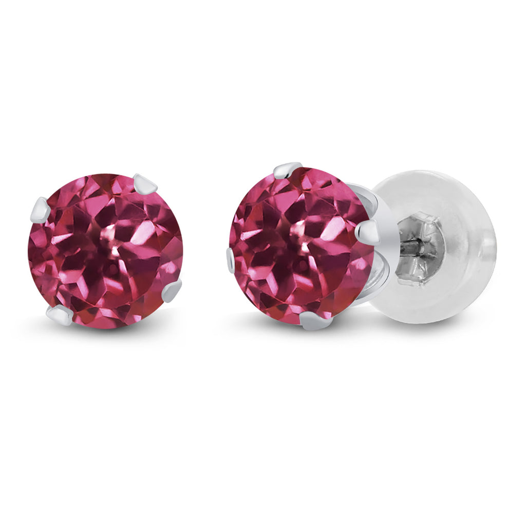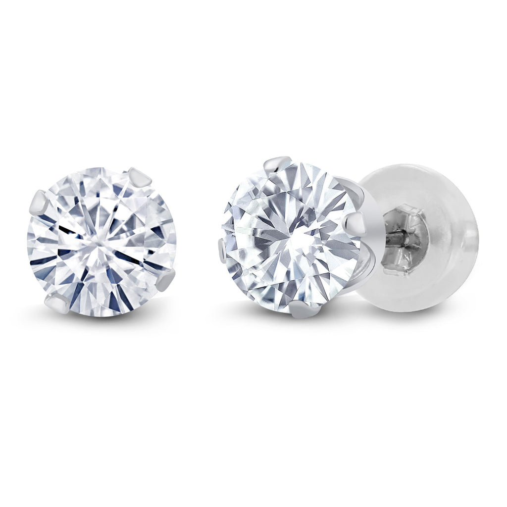14K White Gold 4MM Round Gemstone Birthstone Stud Earrings for Women Men | Solitaire Gold Earrings with Comfort Silicone Backs | Fine Jewelry for Her Him Mom Dad Wife