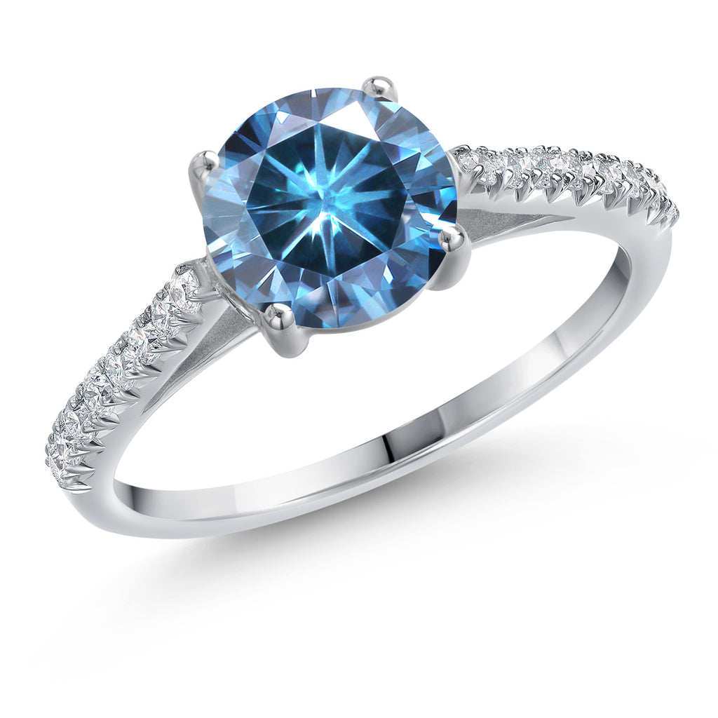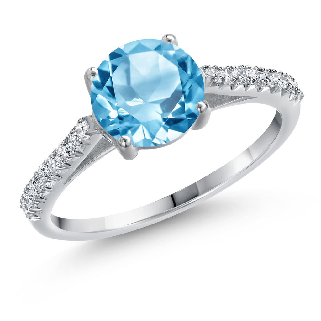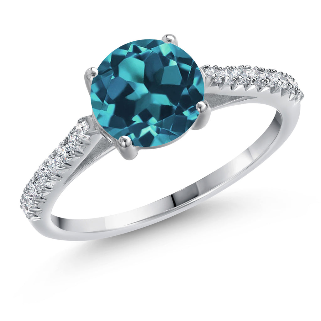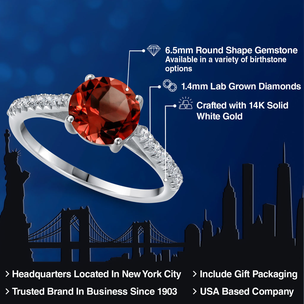 14K White Gold 6.5MM Round Gemstone Birthstone and White Lab Grown Diamond Engagement Ring | Wedding Anniversary Promise Ring For Women | Available In Size 5, 6, 7, 8, 9