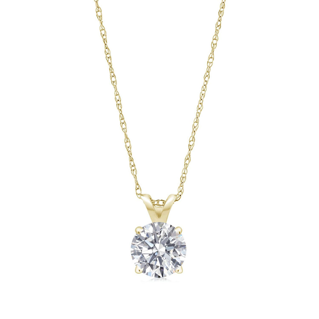 EXCEPTIONAL QUALITY AND CERTIFICATION: This stunning pendant necklace features a 1 Ct round lab grown diamond, certified by IGI with E-F color and VS1-VS2 Clarity. Set in luxurious 14K Yellow Gold, it guarantees exceptional brilliance and quality, making it a standout piece in any jewelry collection.