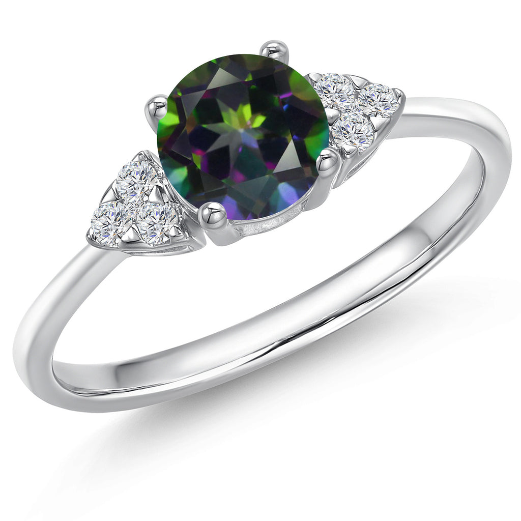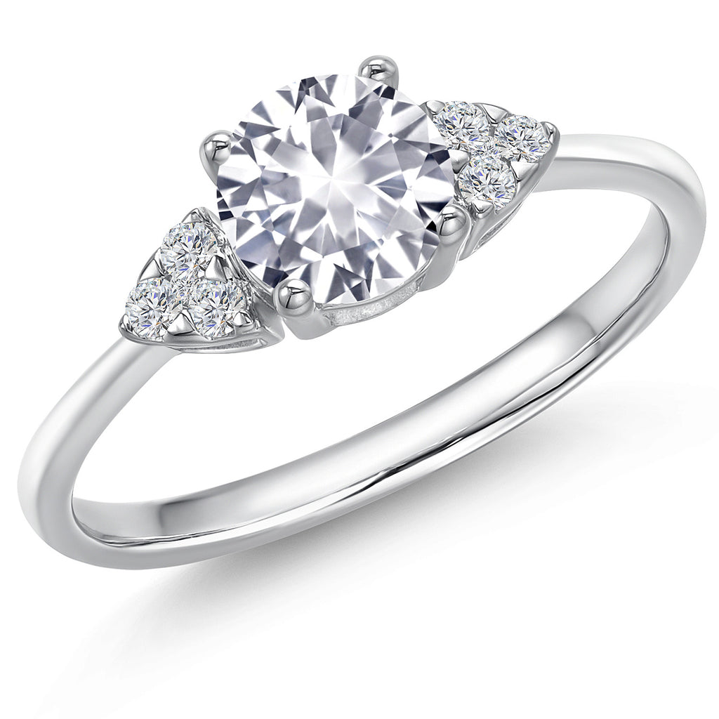 EXQUISITE CRAFTSMANSHIP: This stunning engagement ring is crafted from luxurious 14K white gold, featuring a 6MM round gemstone birthstone at the center and complemented by sparkling white lab-grown diamonds, creating a captivating and elegant design.