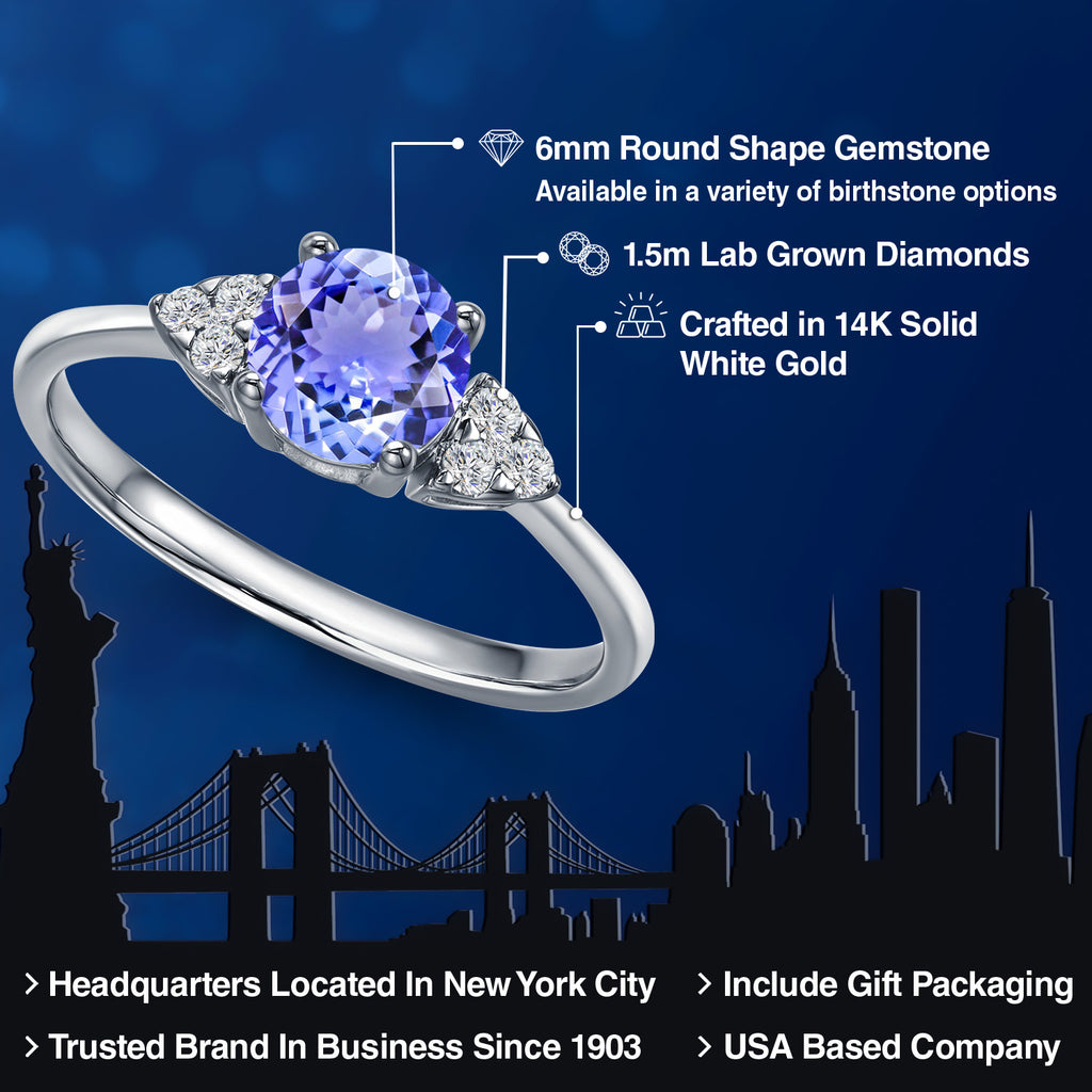 PERSONALIZED BIRTHSTONE: With a 6MM round gemstone birthstone, this ring can be tailored to celebrate your birth month or a special milestone. The addition of white lab-grown diamonds adds an extra layer of brilliance and sophistication.