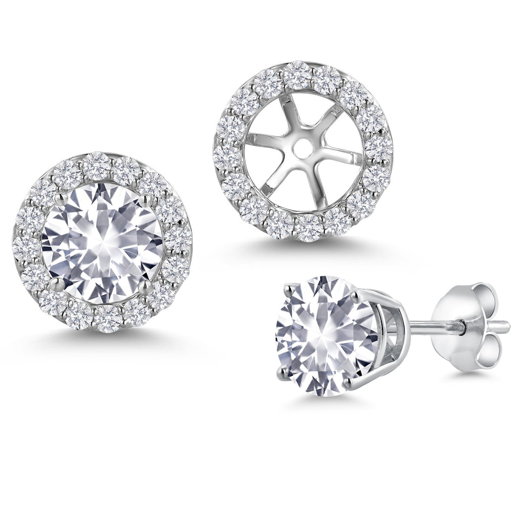 VERSATILE REMOVABLE JACKETS: Transform your look effortlessly with removable jackets featuring 1.5MM lab-grown diamonds that form a shimmering halo around the gemstone. These earrings offer the flexibility to wear them as simple studs or with an elegant halo design for added sparkle and brilliance.