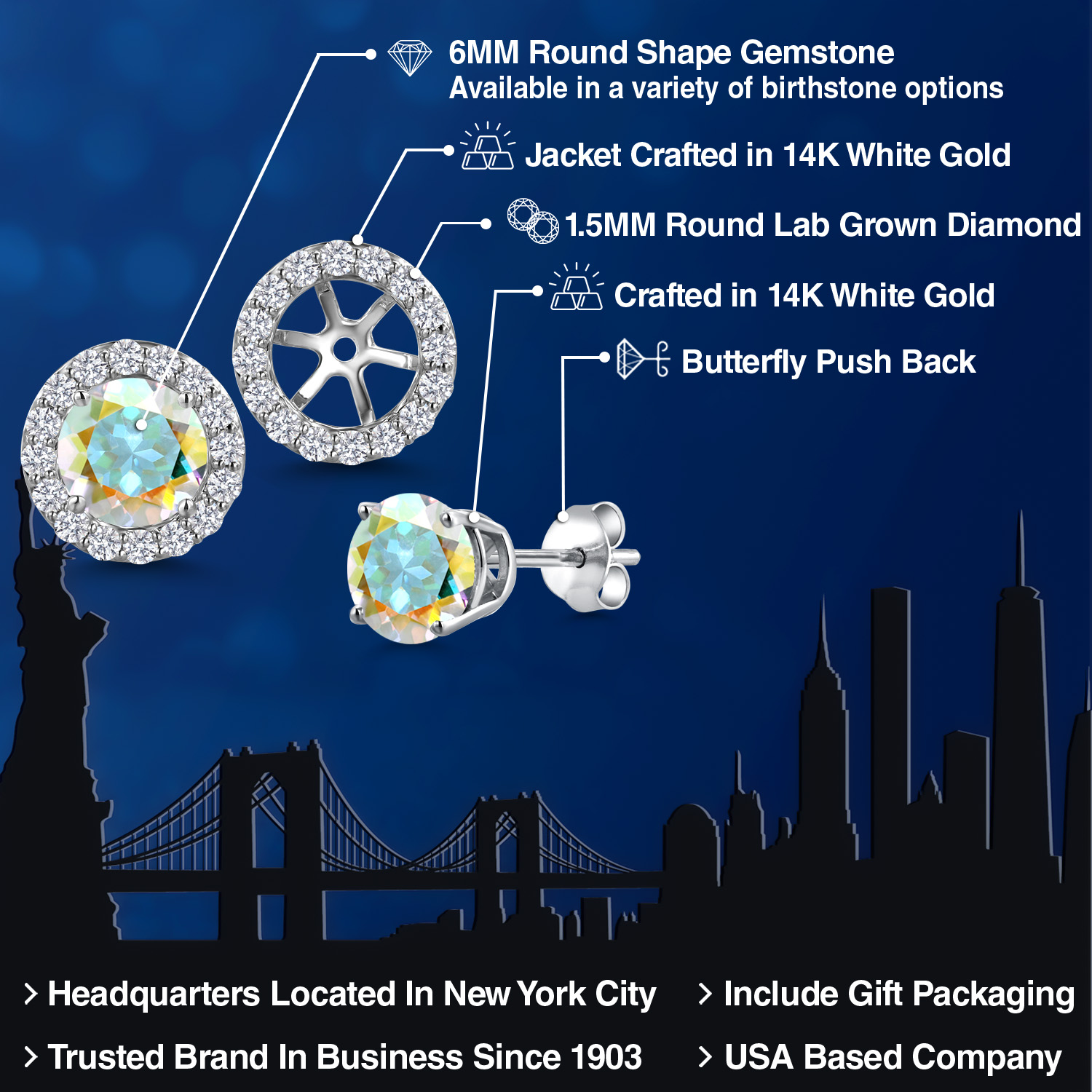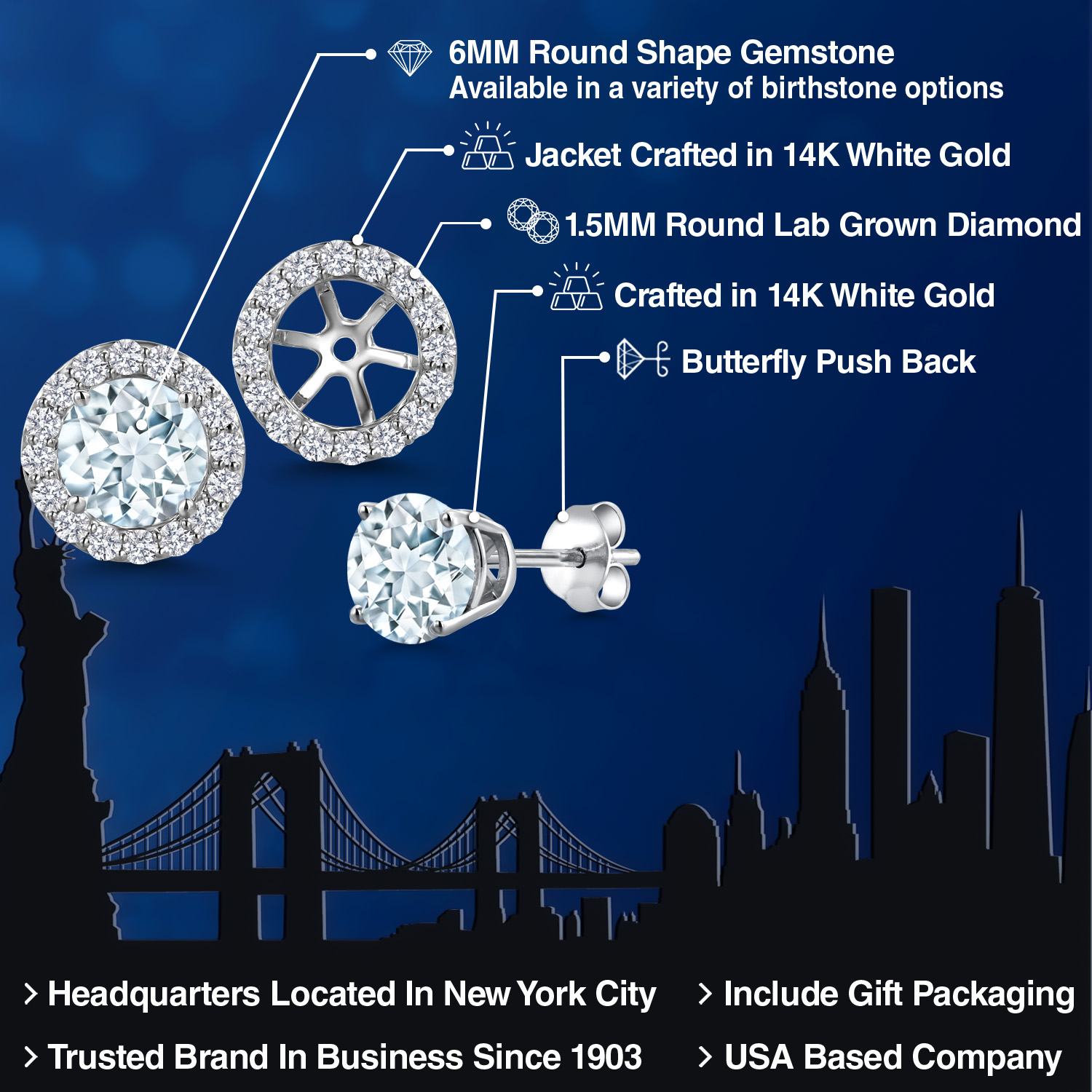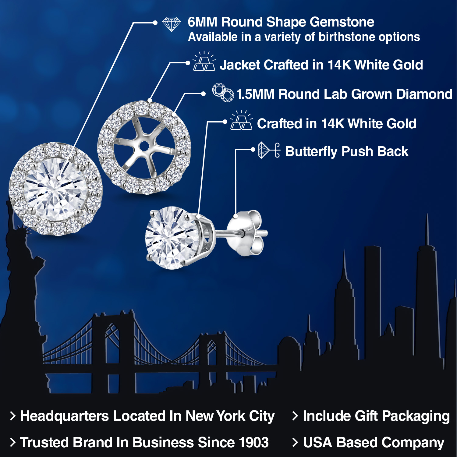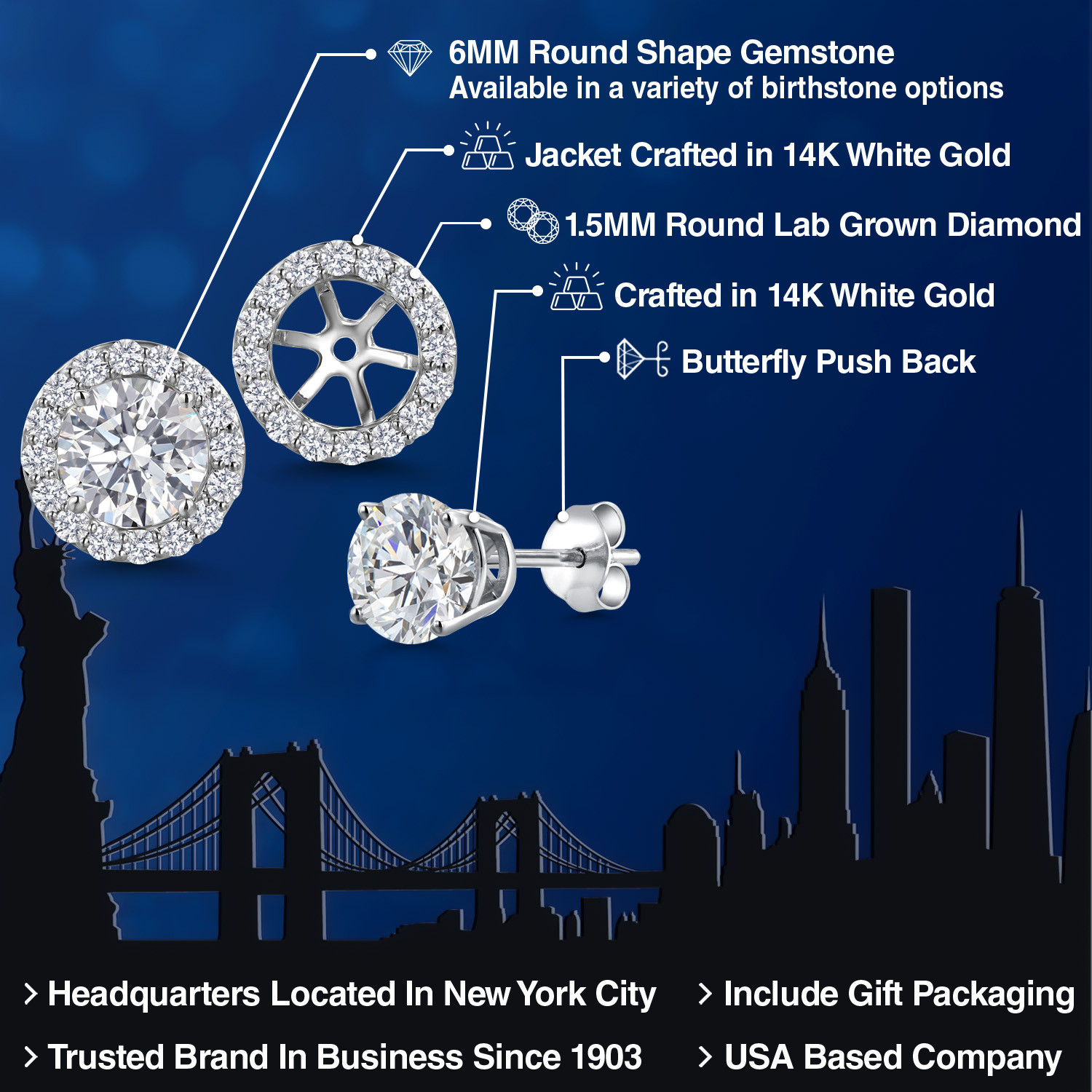 14K White Gold 6MM Round Gemstone Birthstone Stud Earrings with Removable Jackets and Lab Grown Diamond Accents | Gold Earrings For Women | Fine Jewelry Gifts for Her Mom Women Wife