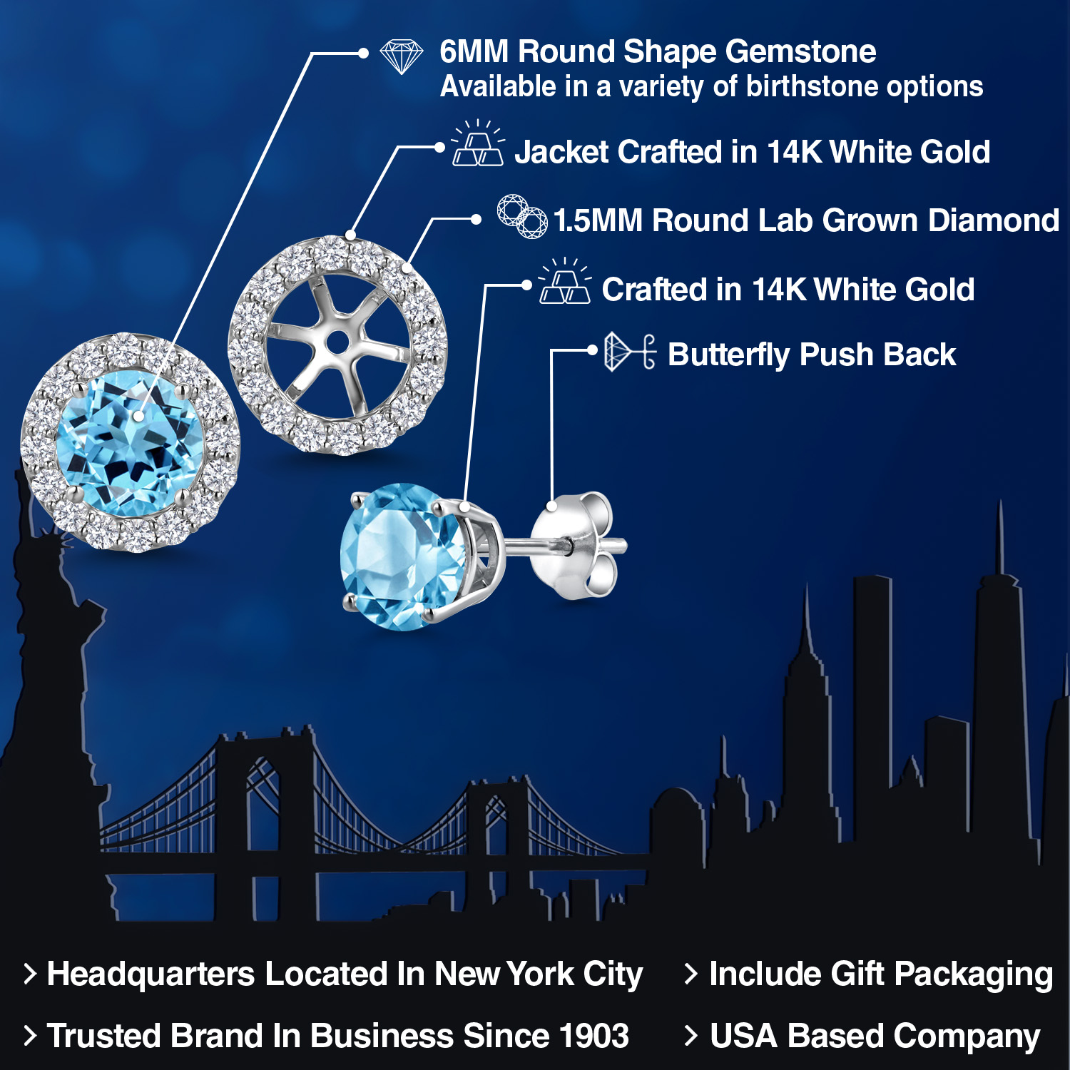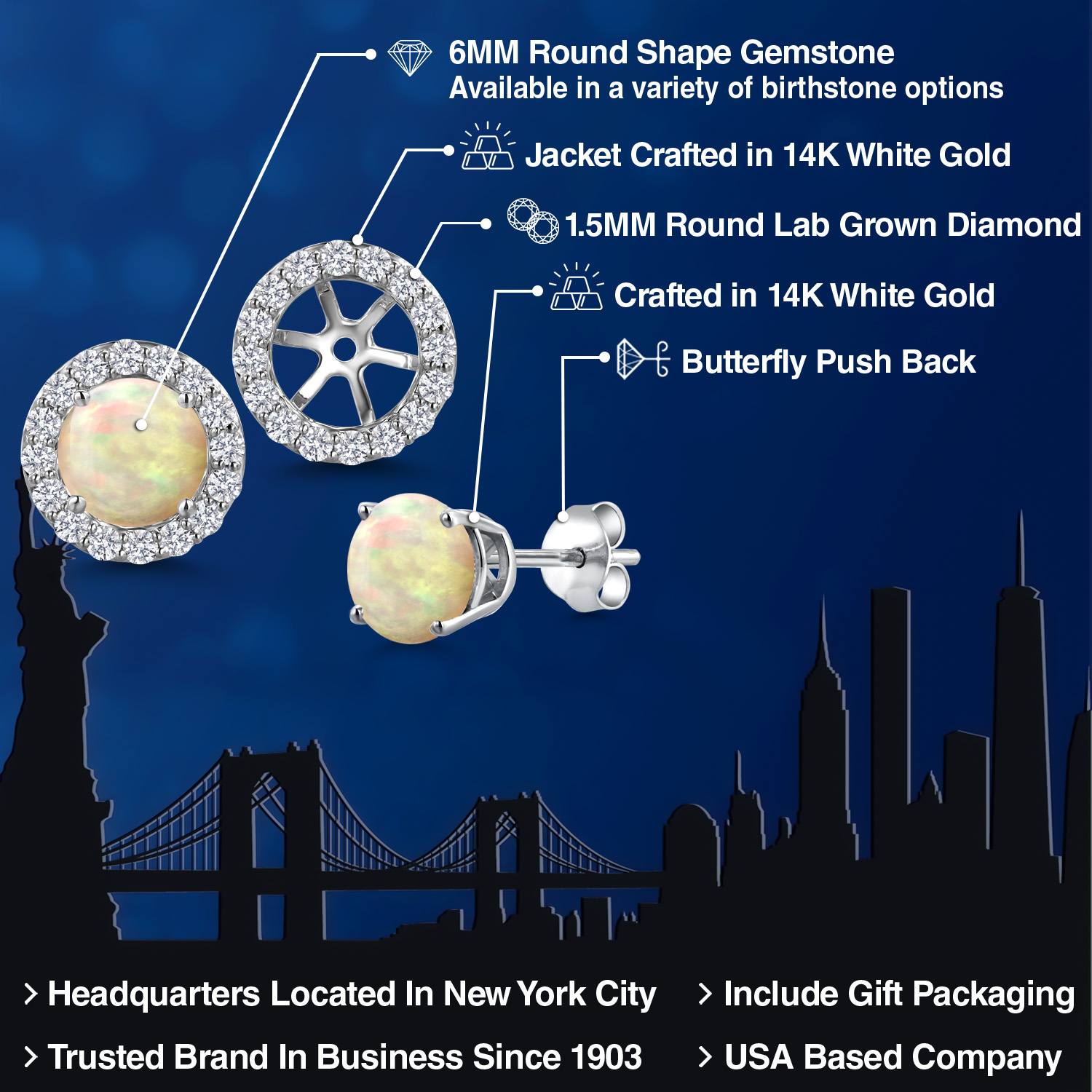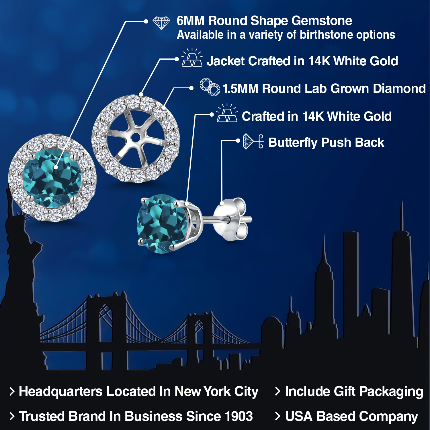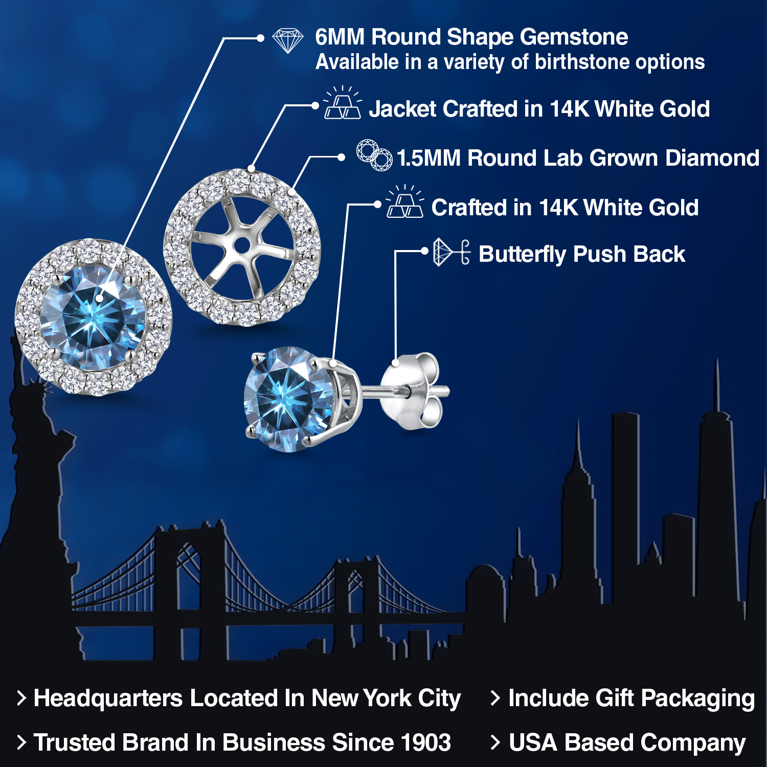 14K White Gold 6MM Round Gemstone Birthstone Stud Earrings with Removable Jackets and Lab Grown Diamond Accents | Gold Earrings For Women | Fine Jewelry Gifts for Her Mom Women Wife