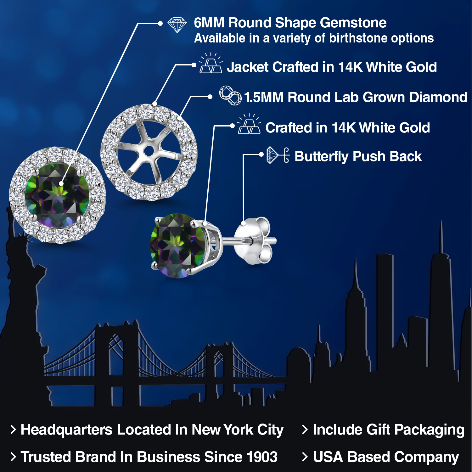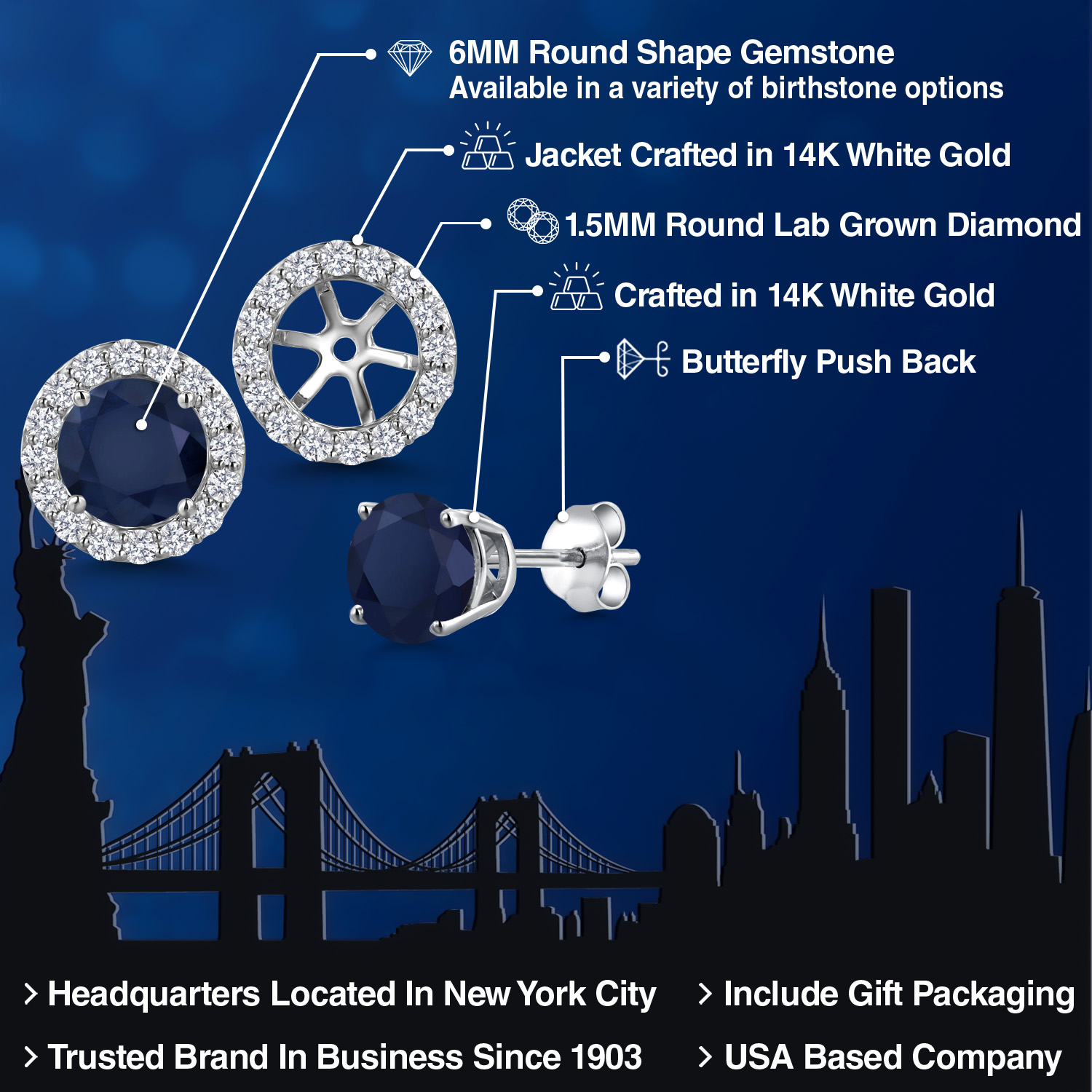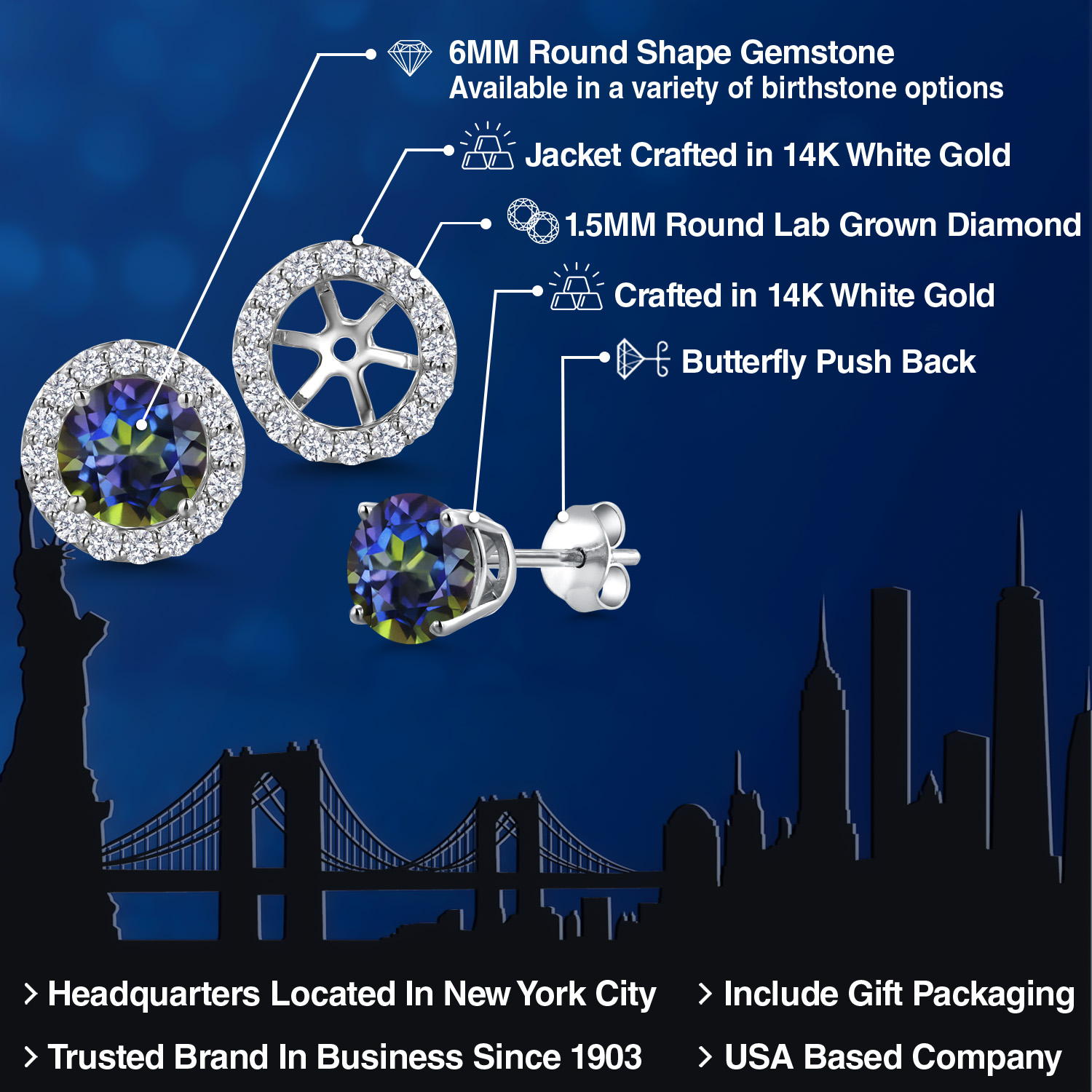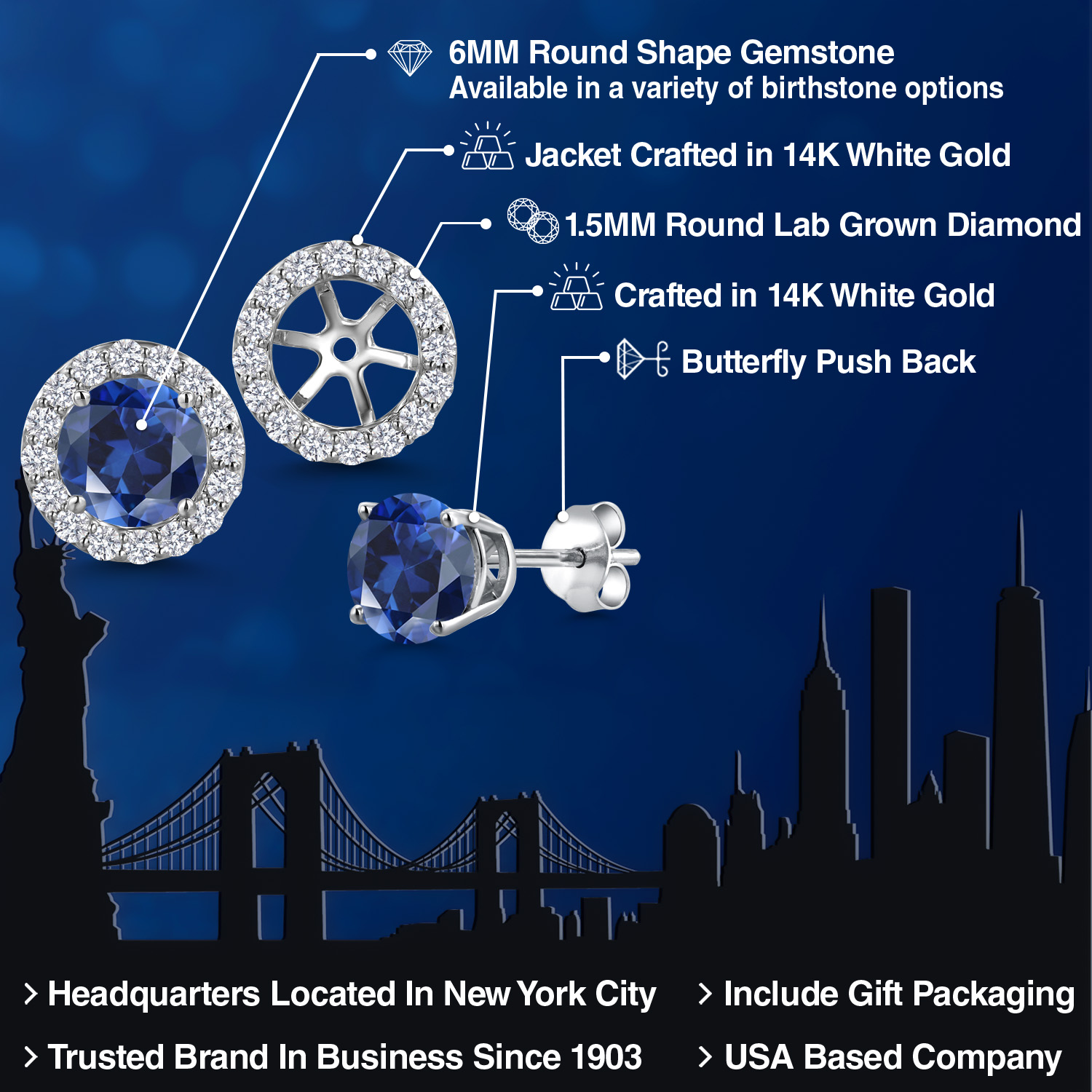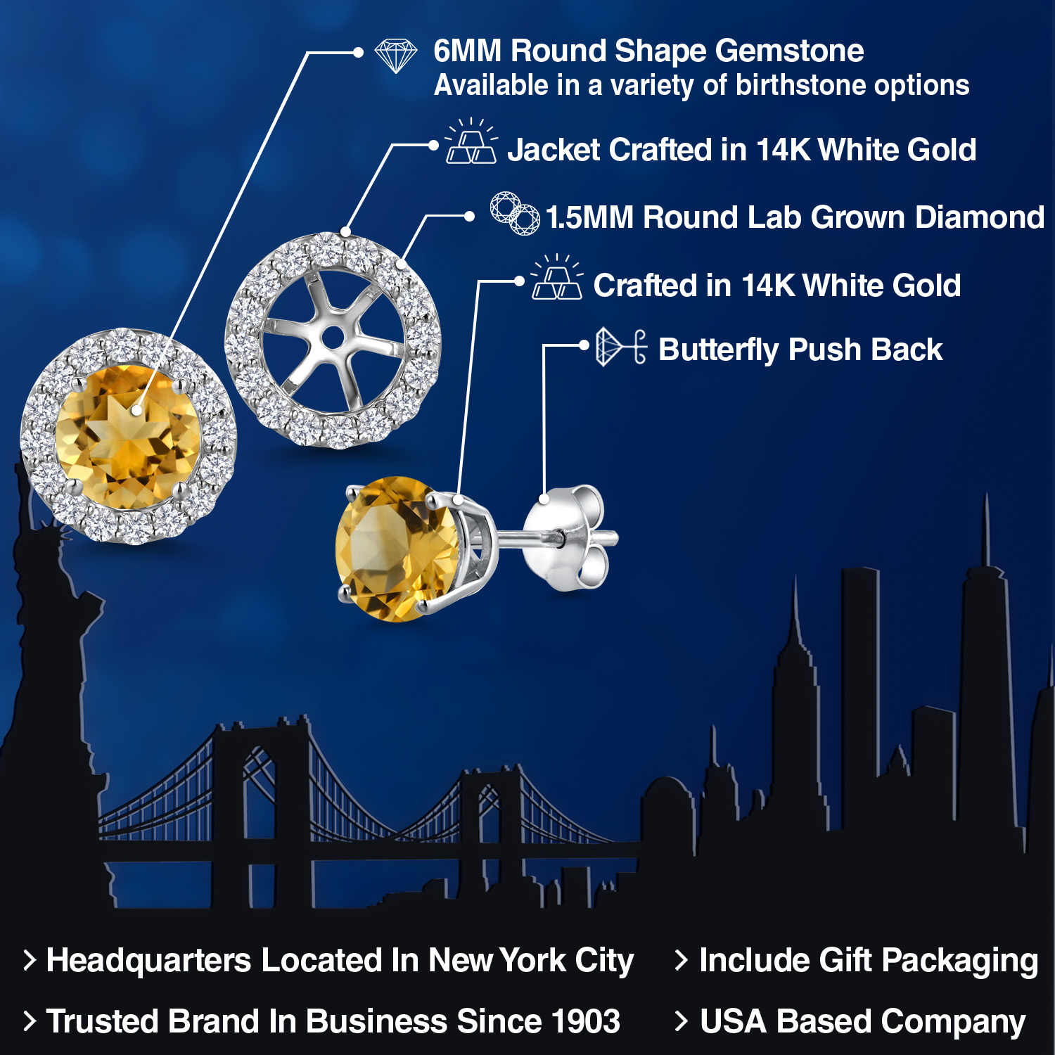14K White Gold 6MM Round Gemstone Birthstone Stud Earrings with Removable Jackets and Lab Grown Diamond Accents | Gold Earrings For Women | Fine Jewelry Gifts for Her Mom Women Wife