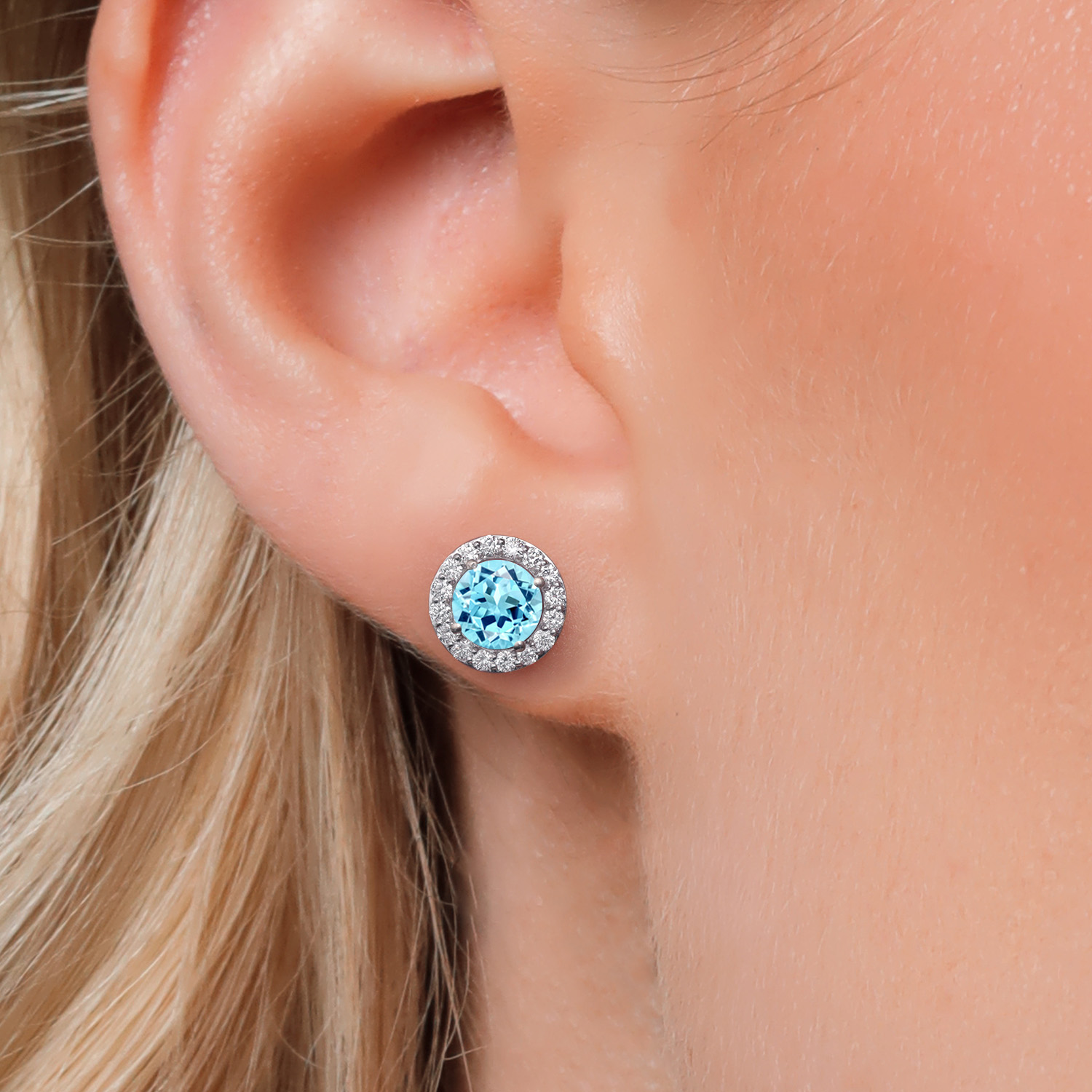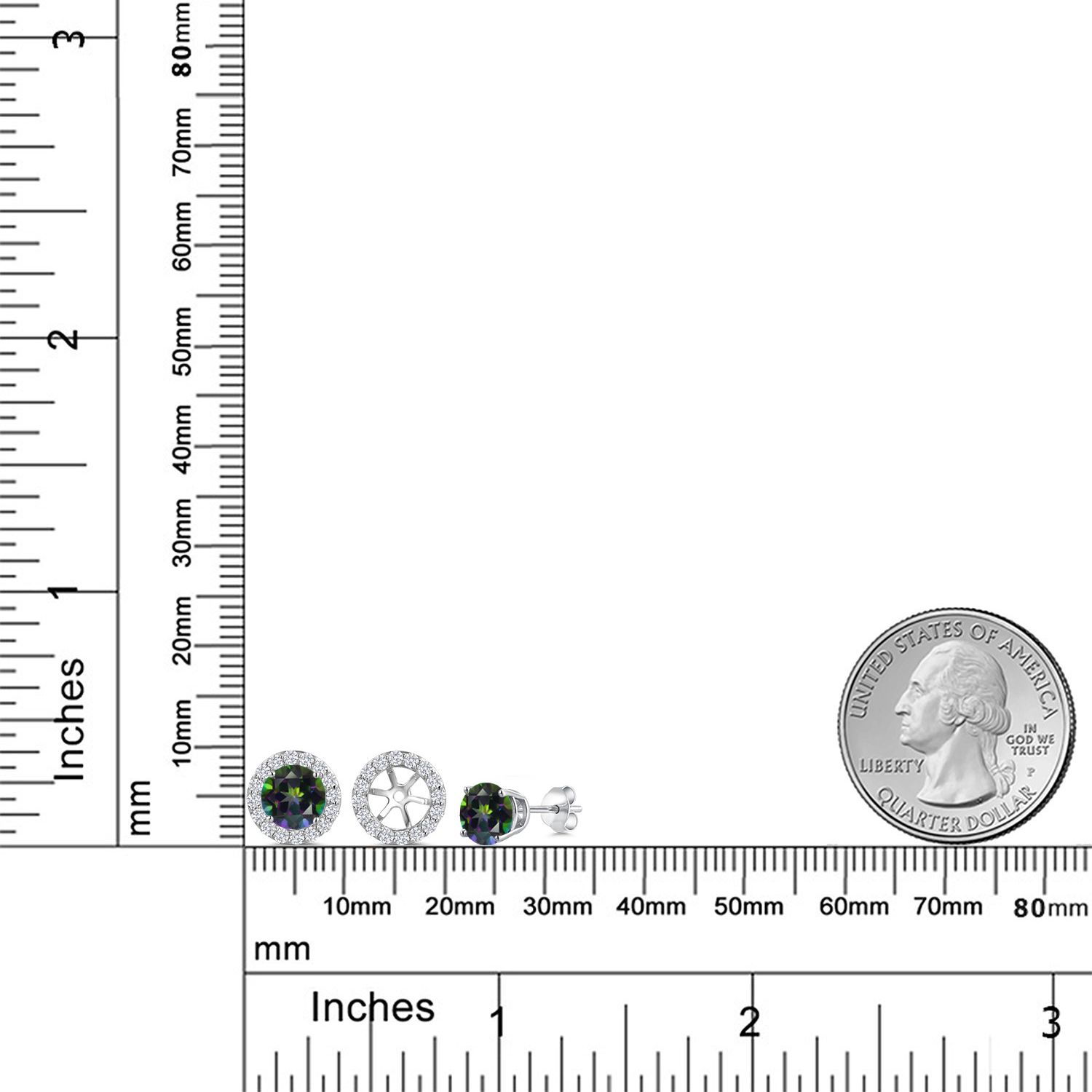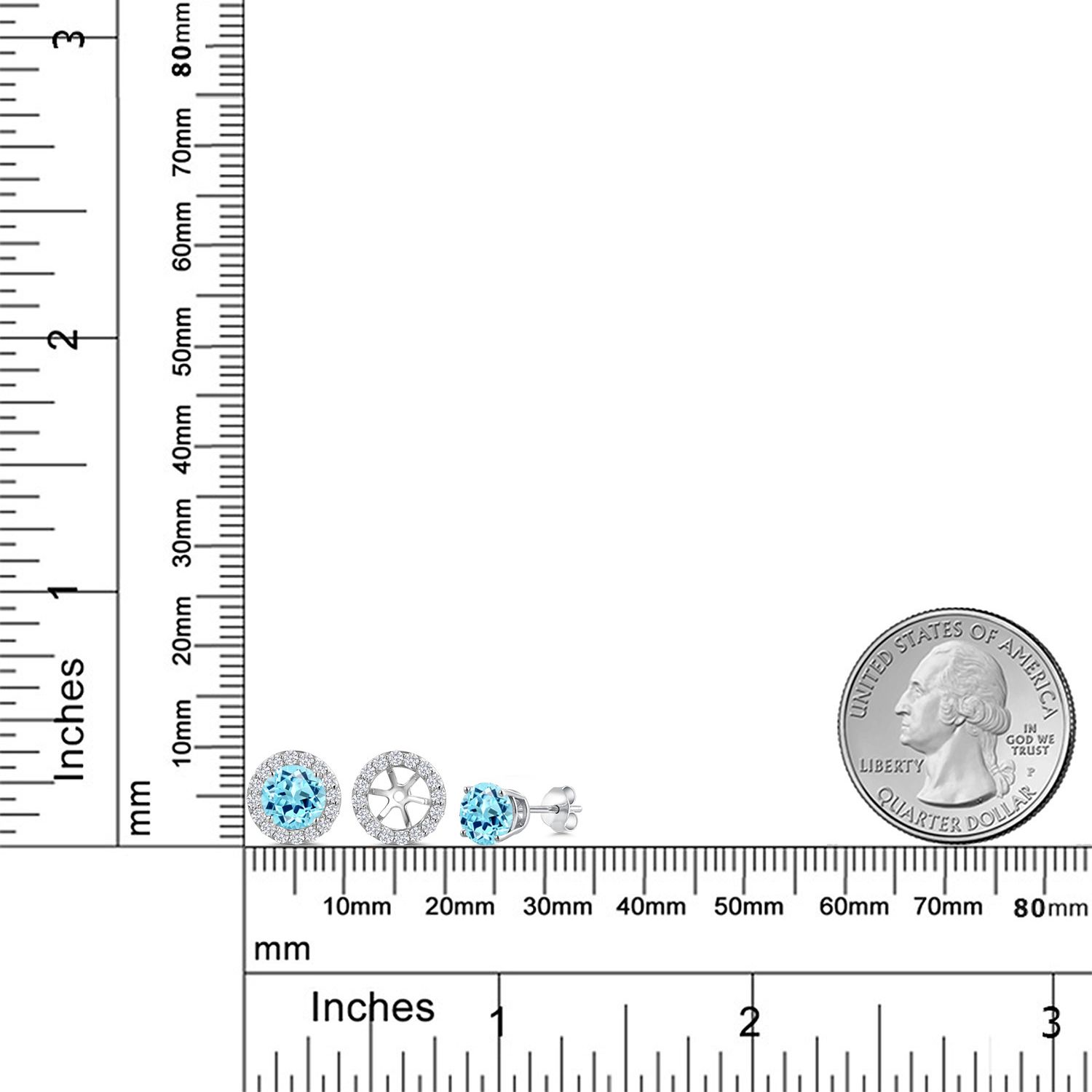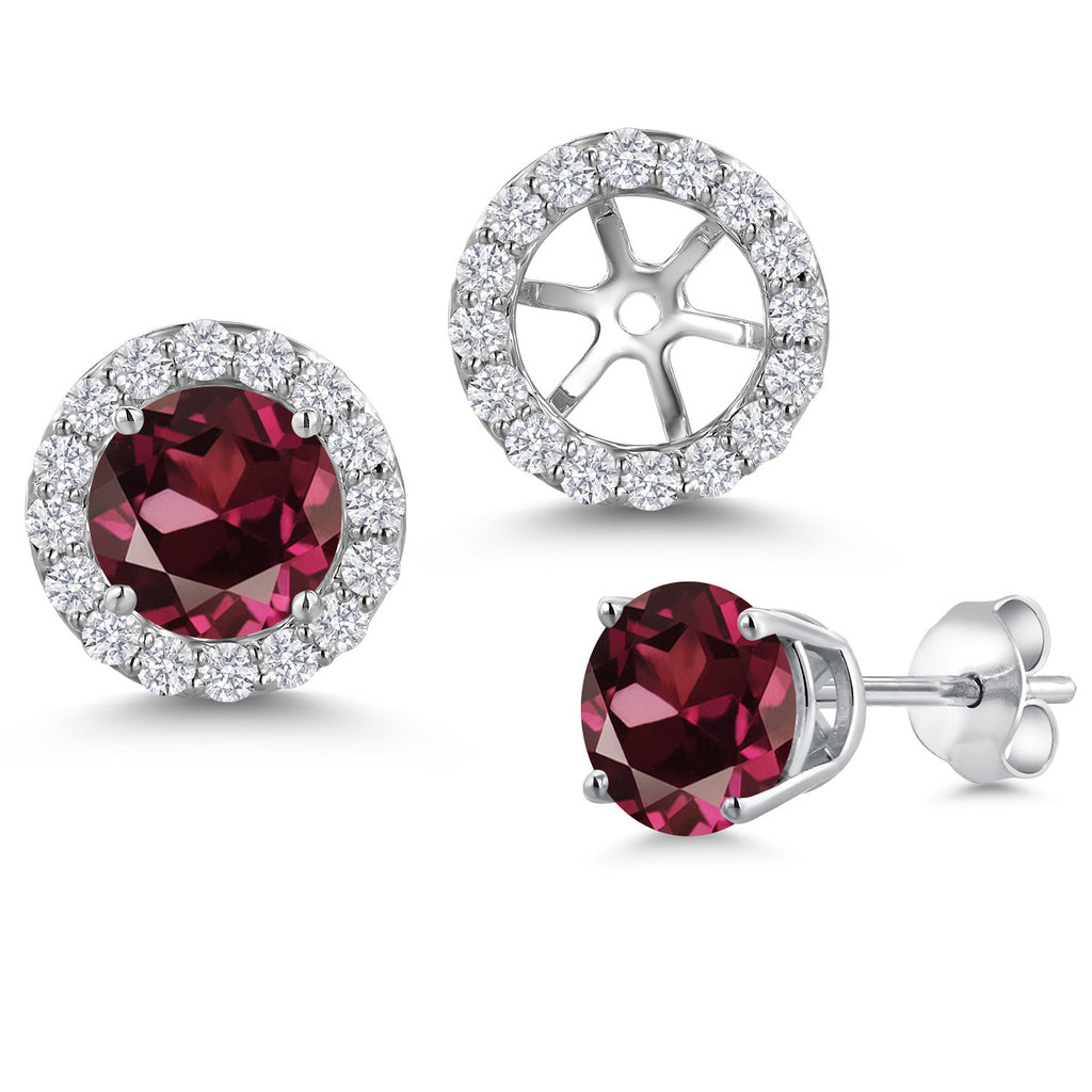 14K White Gold 6MM Round Gemstone Birthstone Stud Earrings with Removable Jackets and Lab Grown Diamond Accents | Gold Earrings For Women | Fine Jewelry Gifts for Her Mom Women Wife
