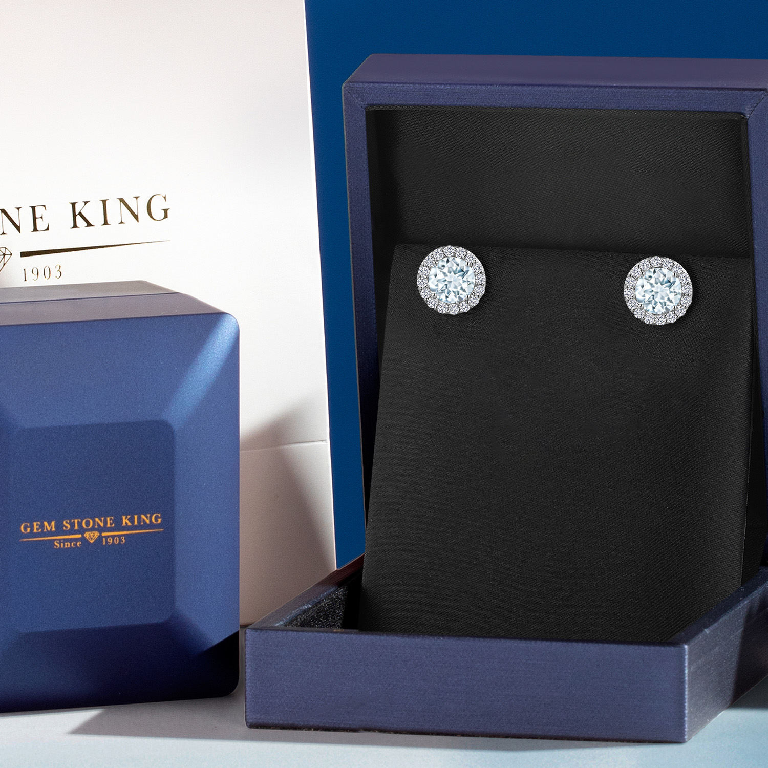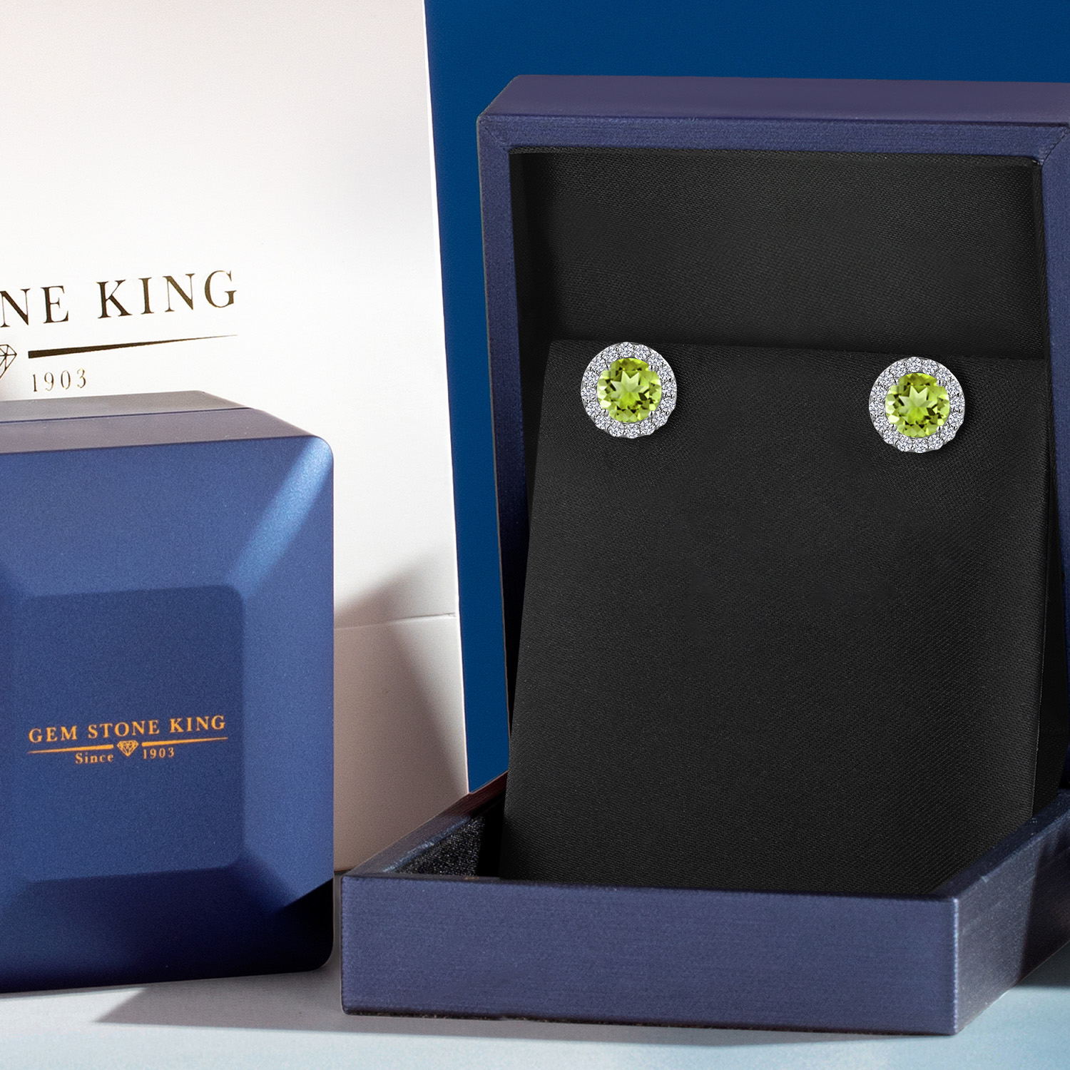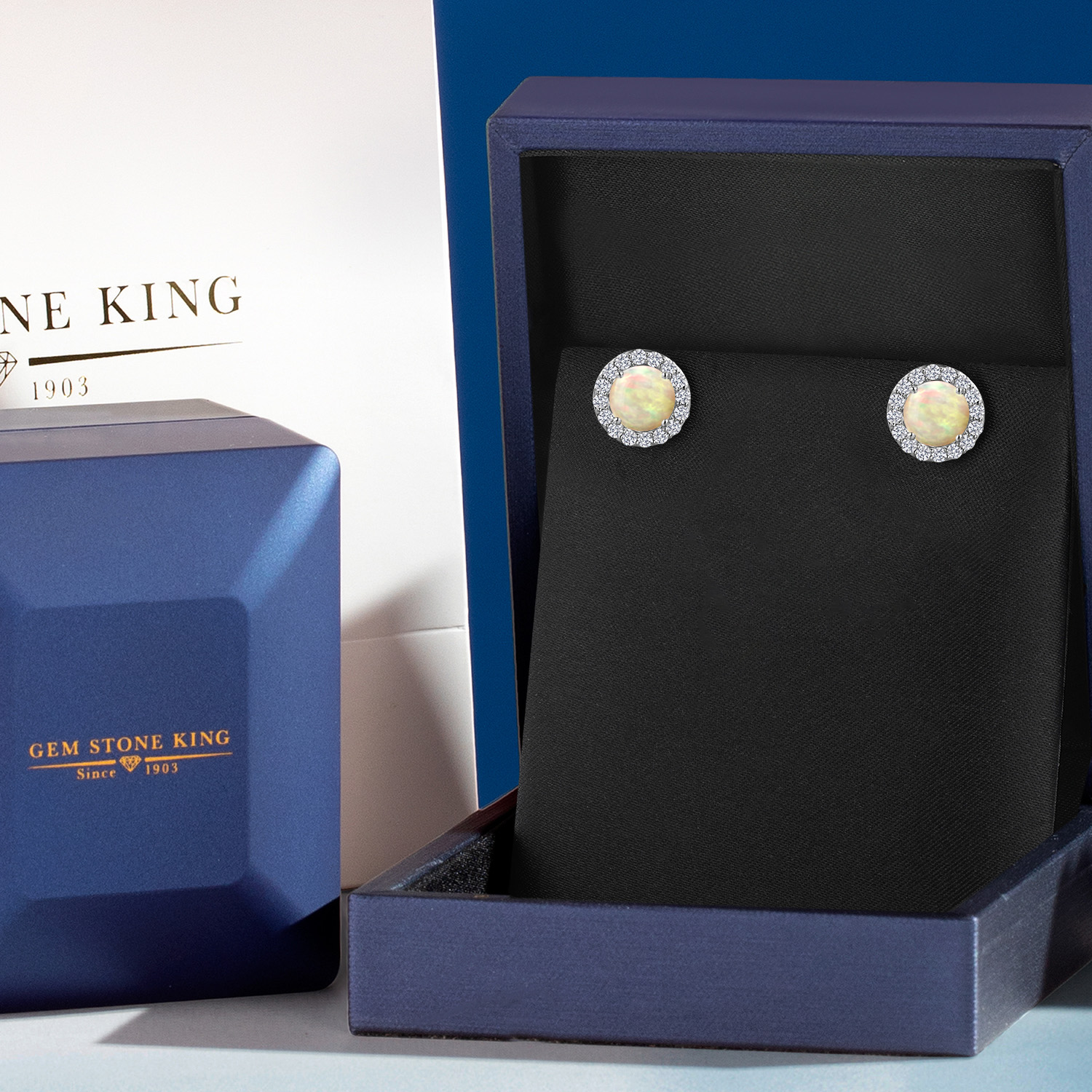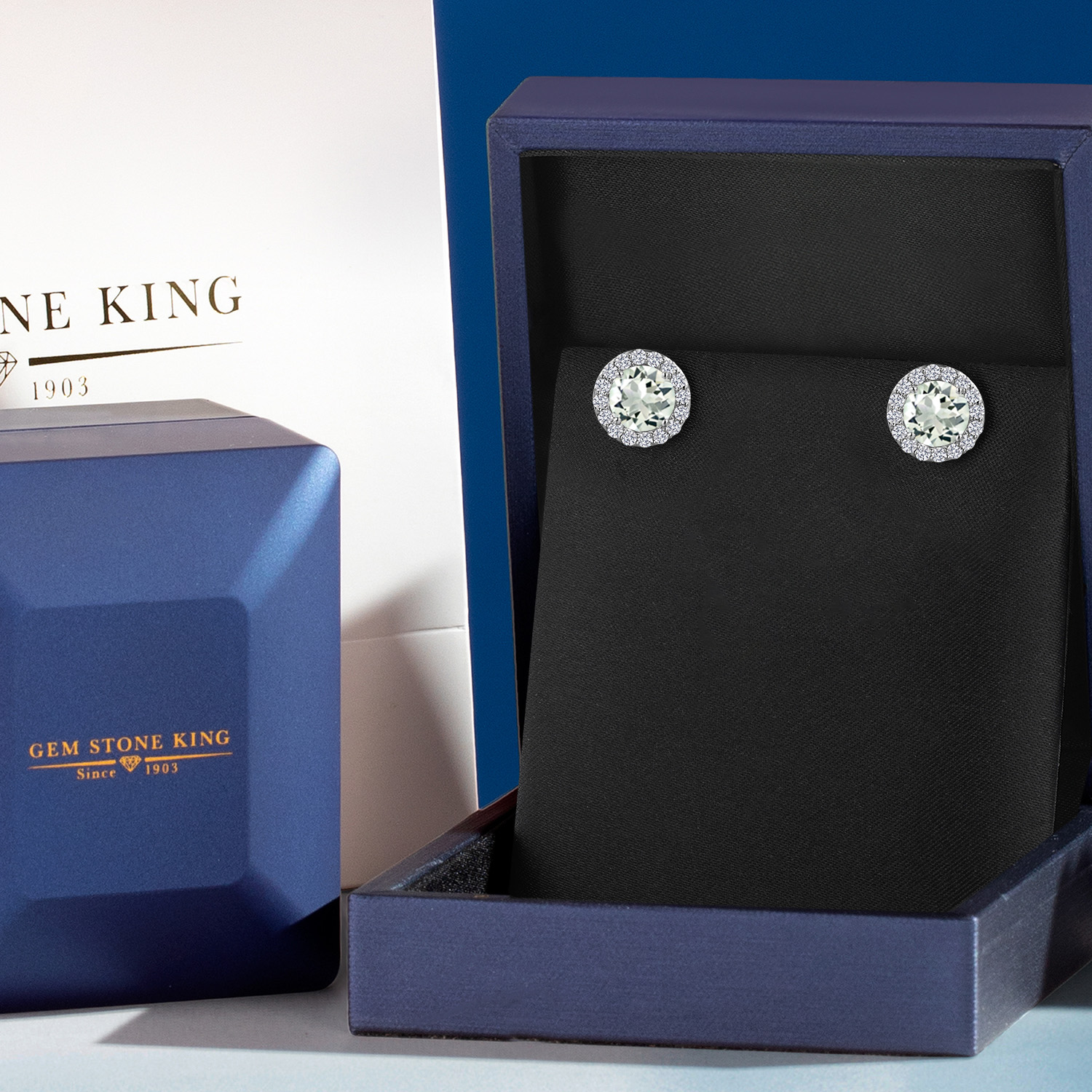 14K White Gold 6MM Round Gemstone Birthstone Stud Earrings with Removable Jackets and Lab Grown Diamond Accents | Gold Earrings For Women | Fine Jewelry Gifts for Her Mom Women Wife