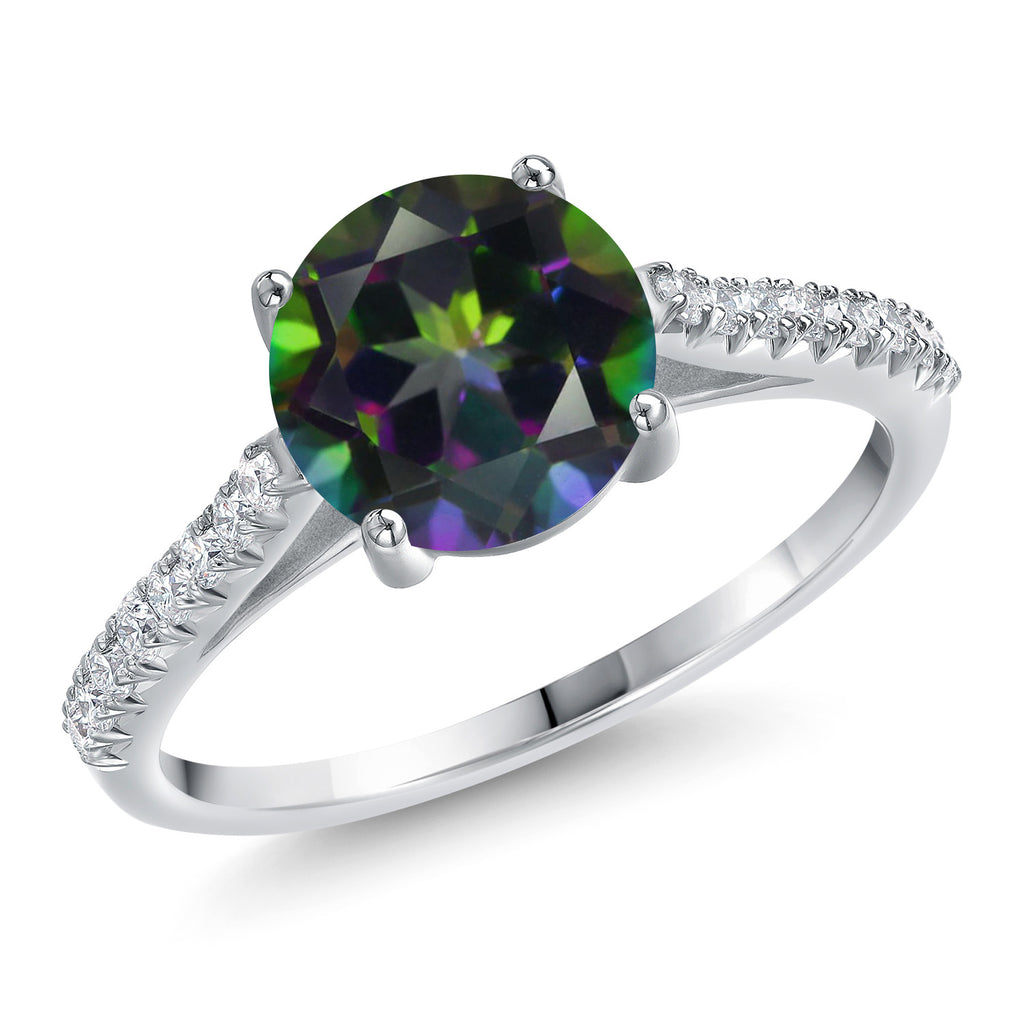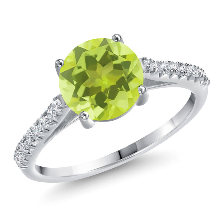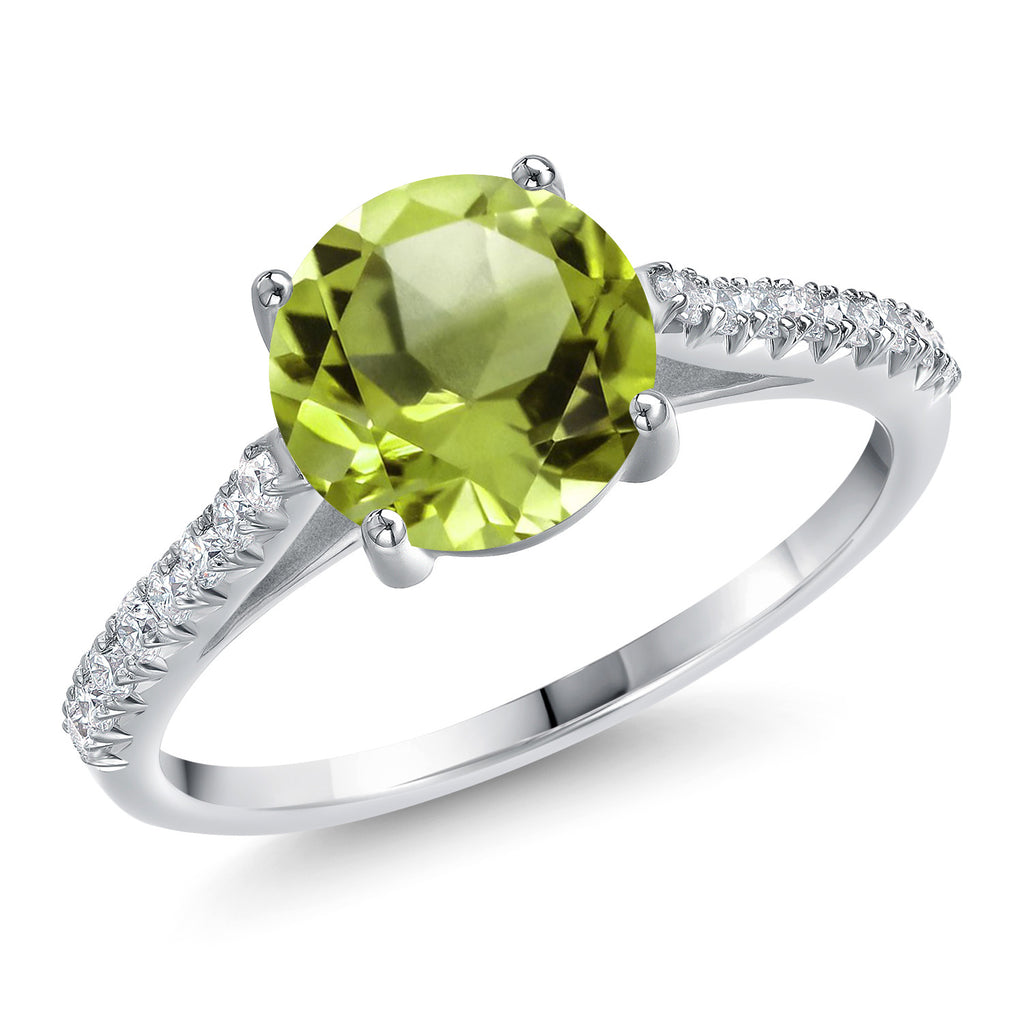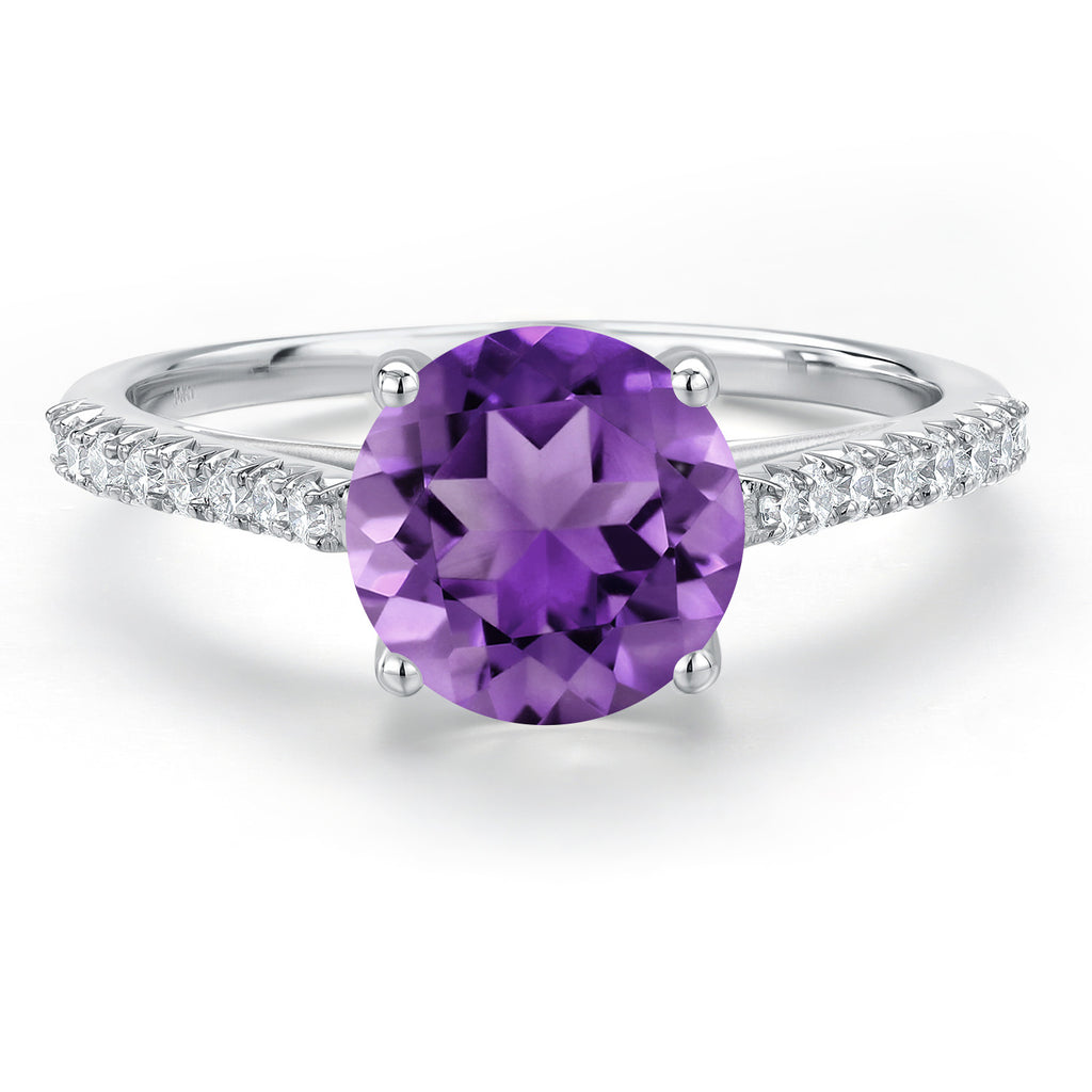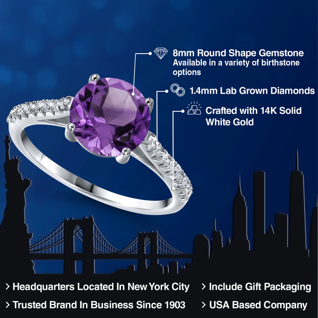14K White Gold 8MM Round Gemstone Birthstone and White Lab Grown Diamond Engagement Ring | Wedding Anniversary Promise Gold Ring For Women | Available In Size 5, 6, 7, 8, 9