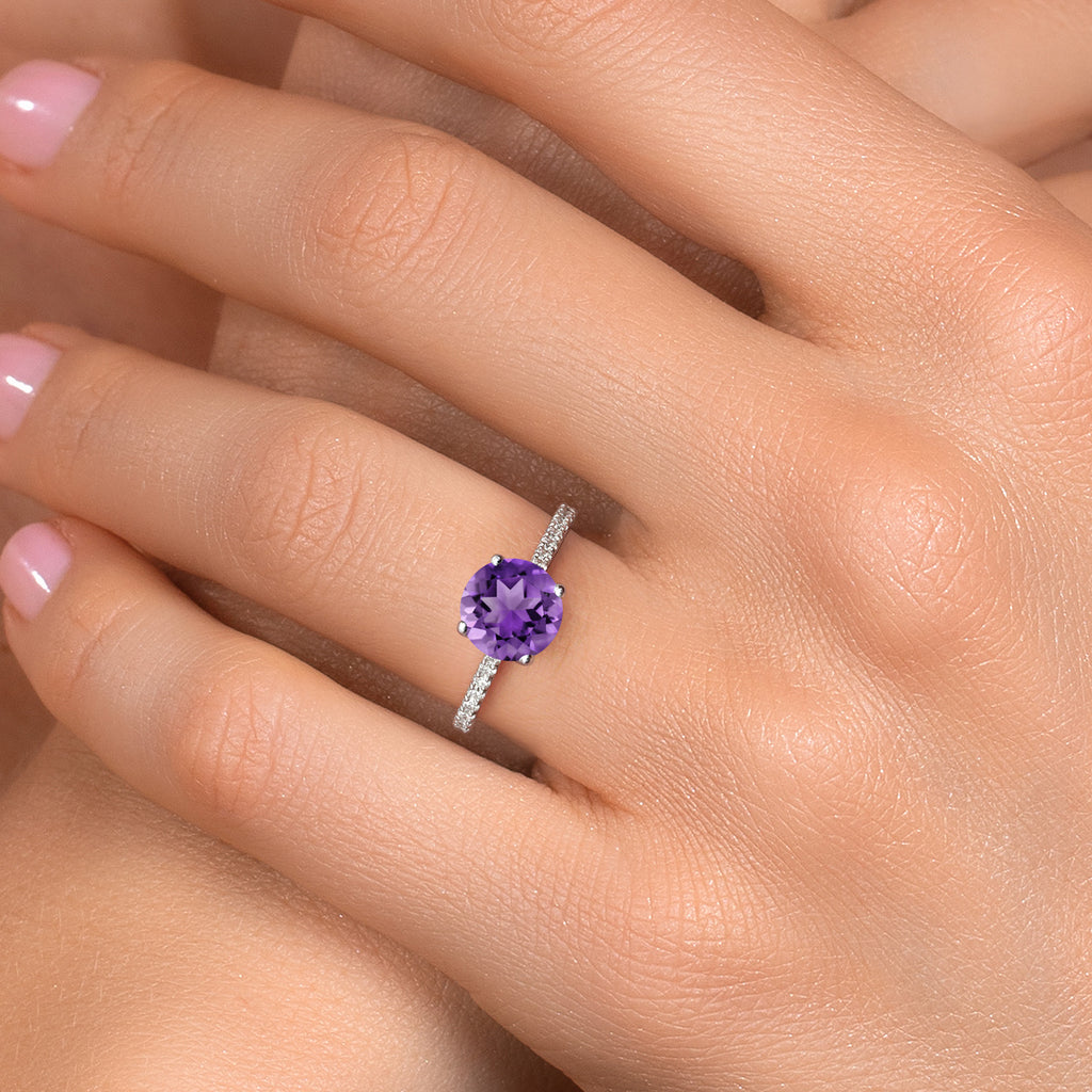 STUNNING ROUND GEMSTONE AND DIAMOND COMBINATION: This exquisite engagement ring features an 8mm round gemstone birthstone, complemented by sparkling white lab-grown diamonds. The vibrant birthstone and the brilliance of the diamonds create a sophisticated and eye-catching design, perfect for marking a special occasion.