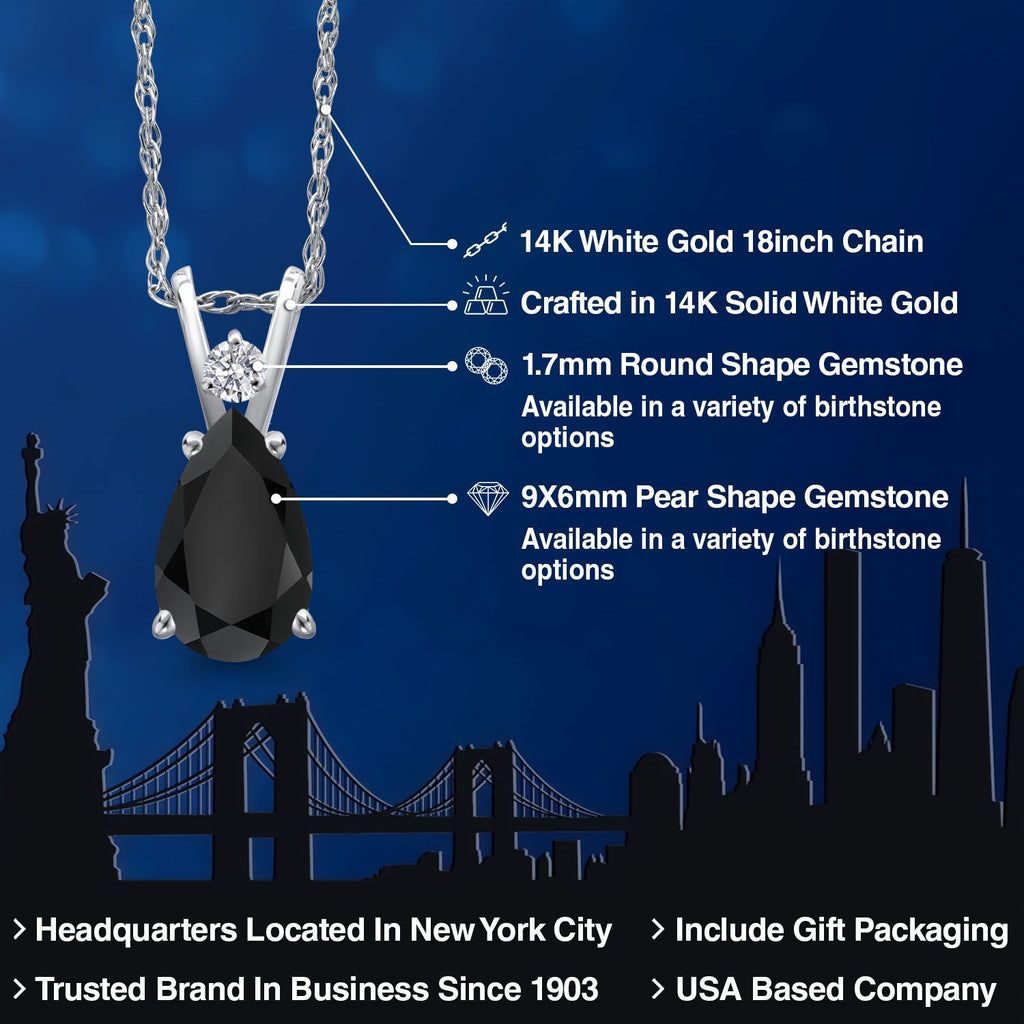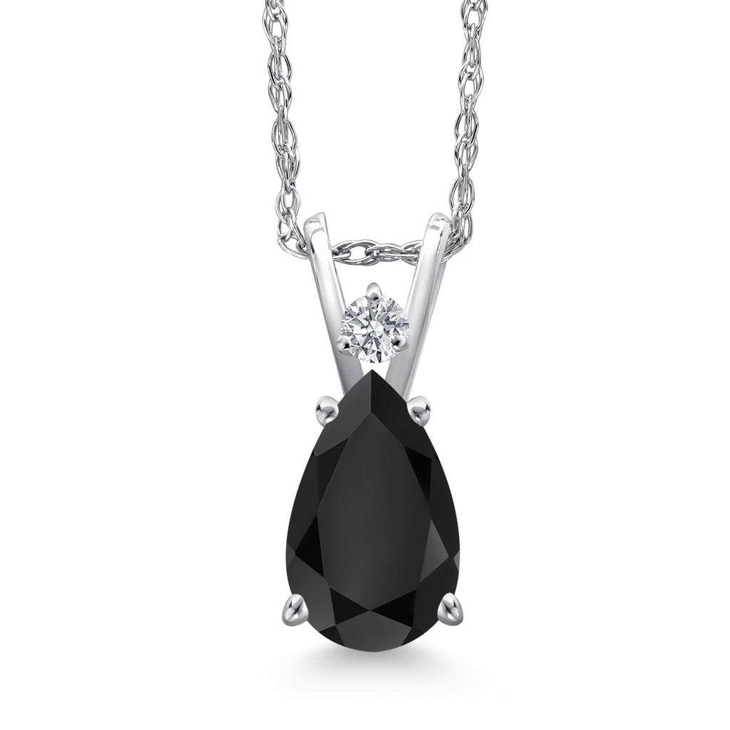 14K White Gold Black Onyx and Lab Grown Diamond Pendant Necklace for Women | 1.32 Cttw | Gemstone December Birthstone | Pear Shape 9X6MM | With 18 Inch Chain