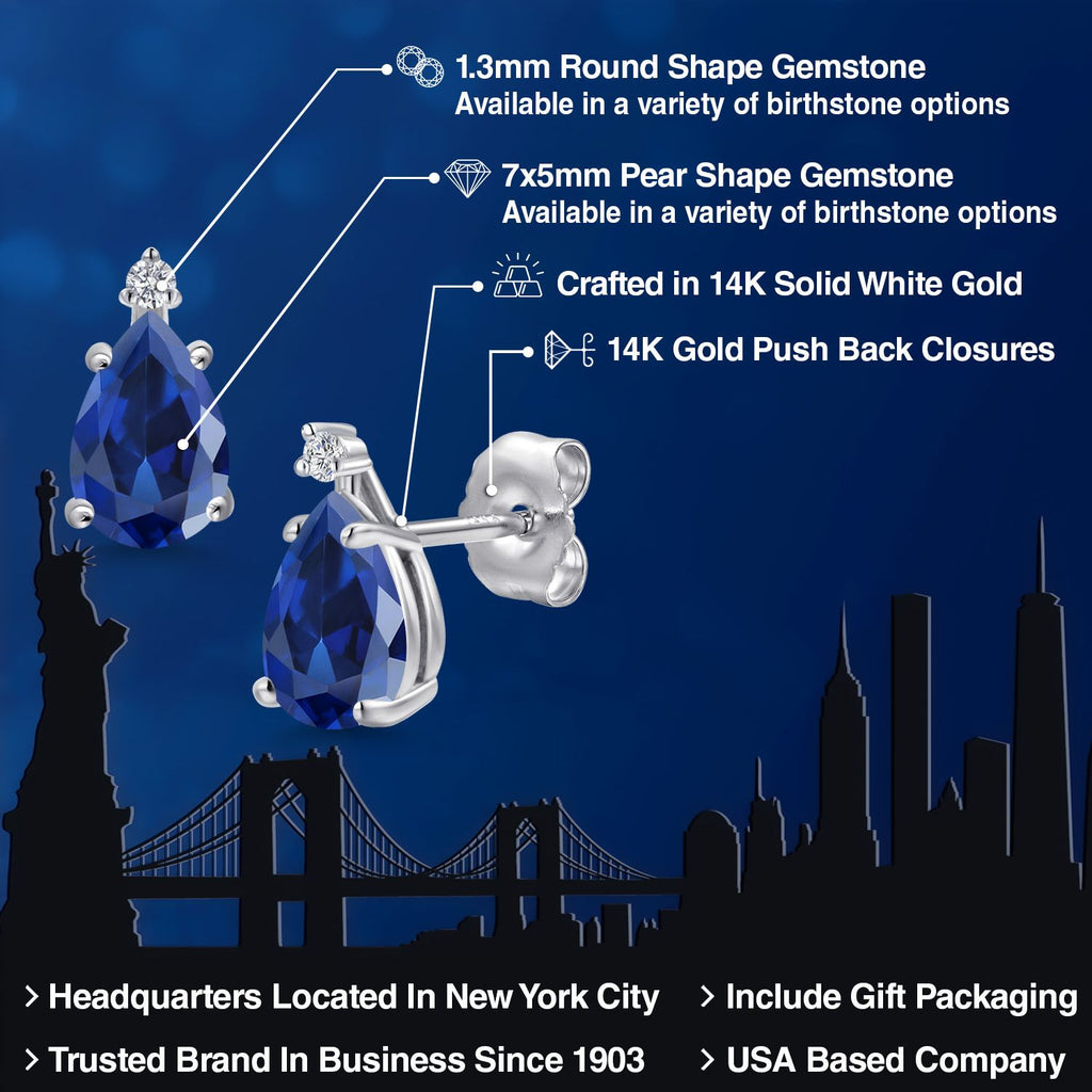 14K White Gold Blue Created Sapphire and Lab Grown Diamond Teardrop Stud Earrings for Women | 2.02 Cttw | Gemstone September Birthstone | Pear Shape 7X5MM