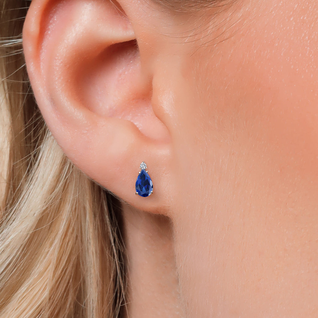 PEAR SHAPE BLUE SAPPHIRE: Each earring features a 7X5MM pear-cut blue created sapphire. As September’s birthstone, sapphire is treasured for its deep royal hue symbolizing wisdom, truth, and loyalty.