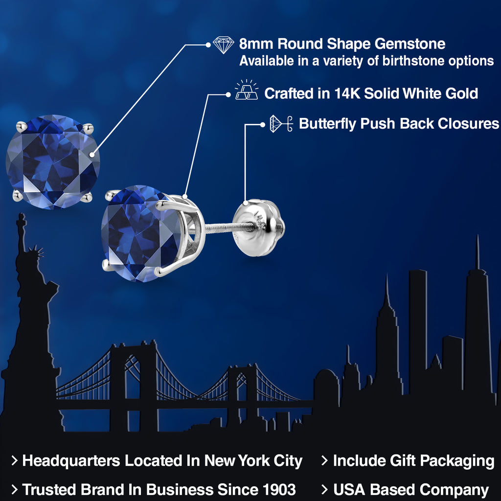 ELEGANT BLUE CREATED SAPPHIRE DESIGN: These stunning stud earrings feature 8MM round Blue Created Sapphire gemstones totaling 5.00 carats. The September birthstone’s deep blue hue symbolizes loyalty, wisdom, and timeless elegance for everyday or special wear.
