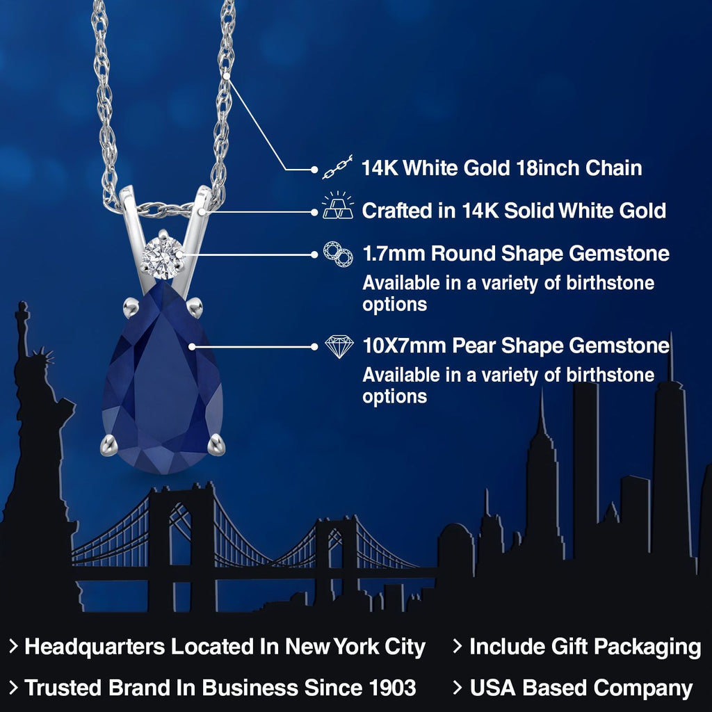 14K White Gold Blue Sapphire and Lab Grown Diamond Pendant Necklace for Women | 2.20 Cttw | Gemstone September Birthstone | Pear Shape 10X7MM | With 18 Inch Chain